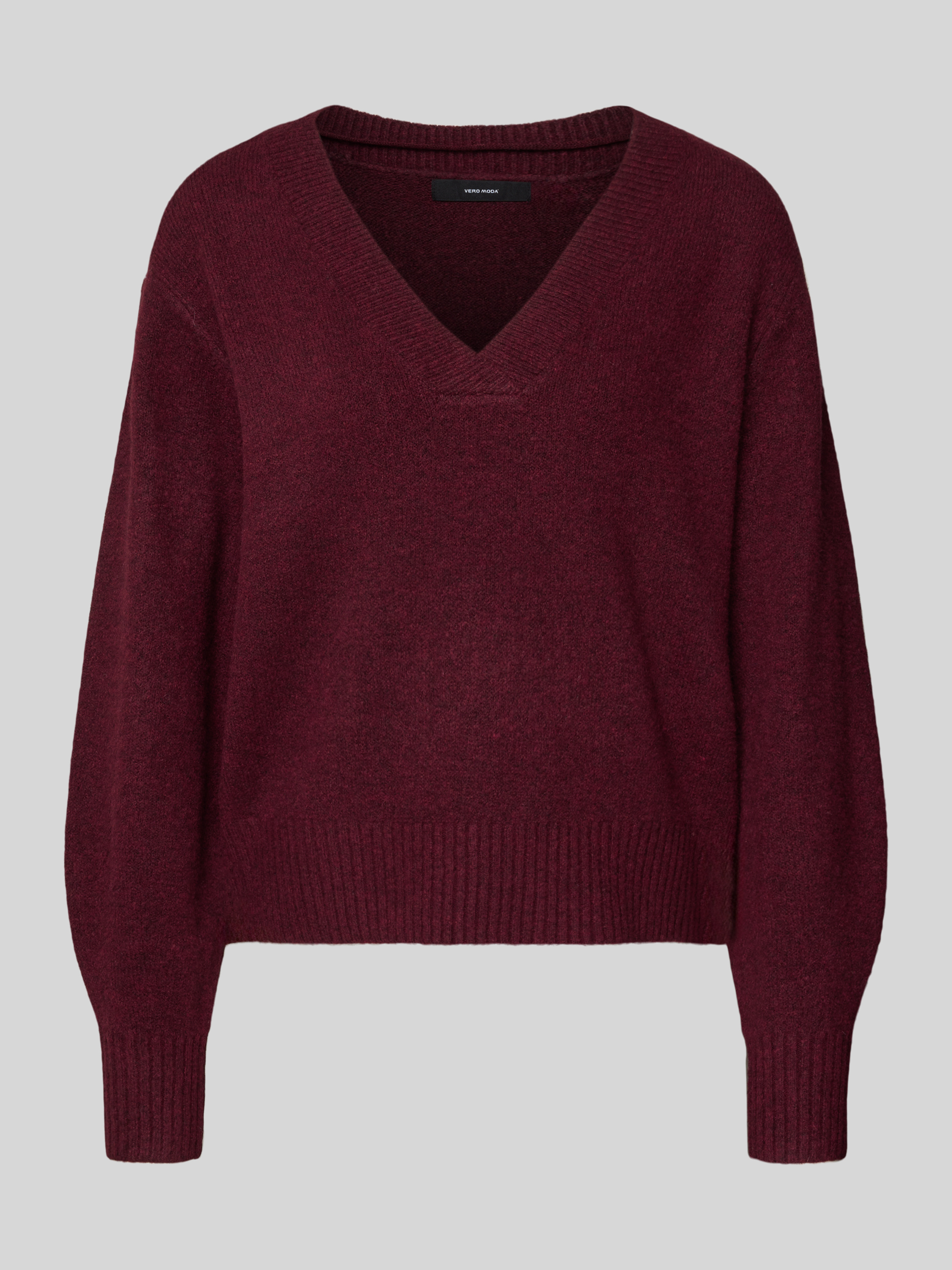 Regular fit gebreide pullover met wol, modell 'BOOM' in donkerrood gemêleerd