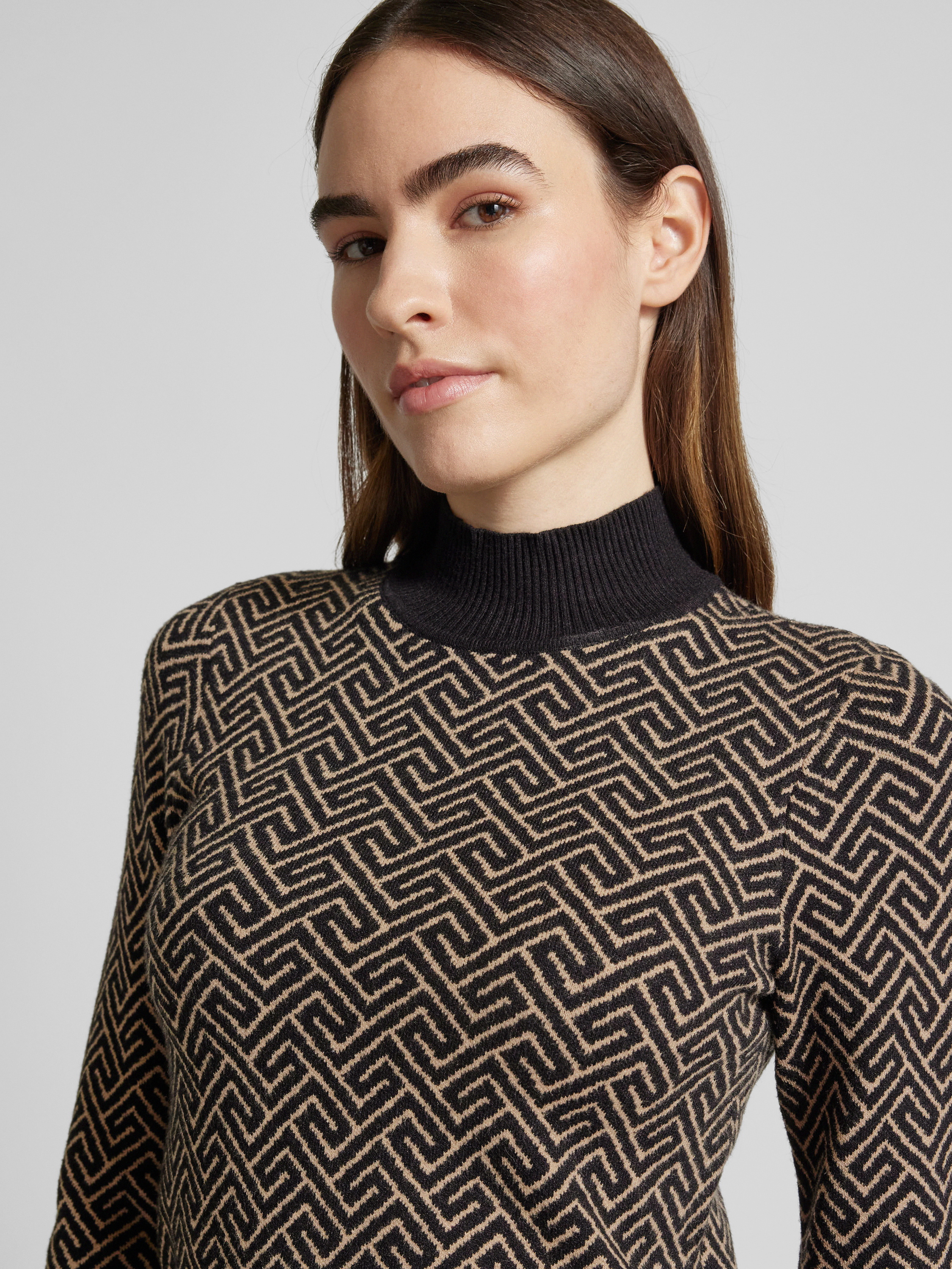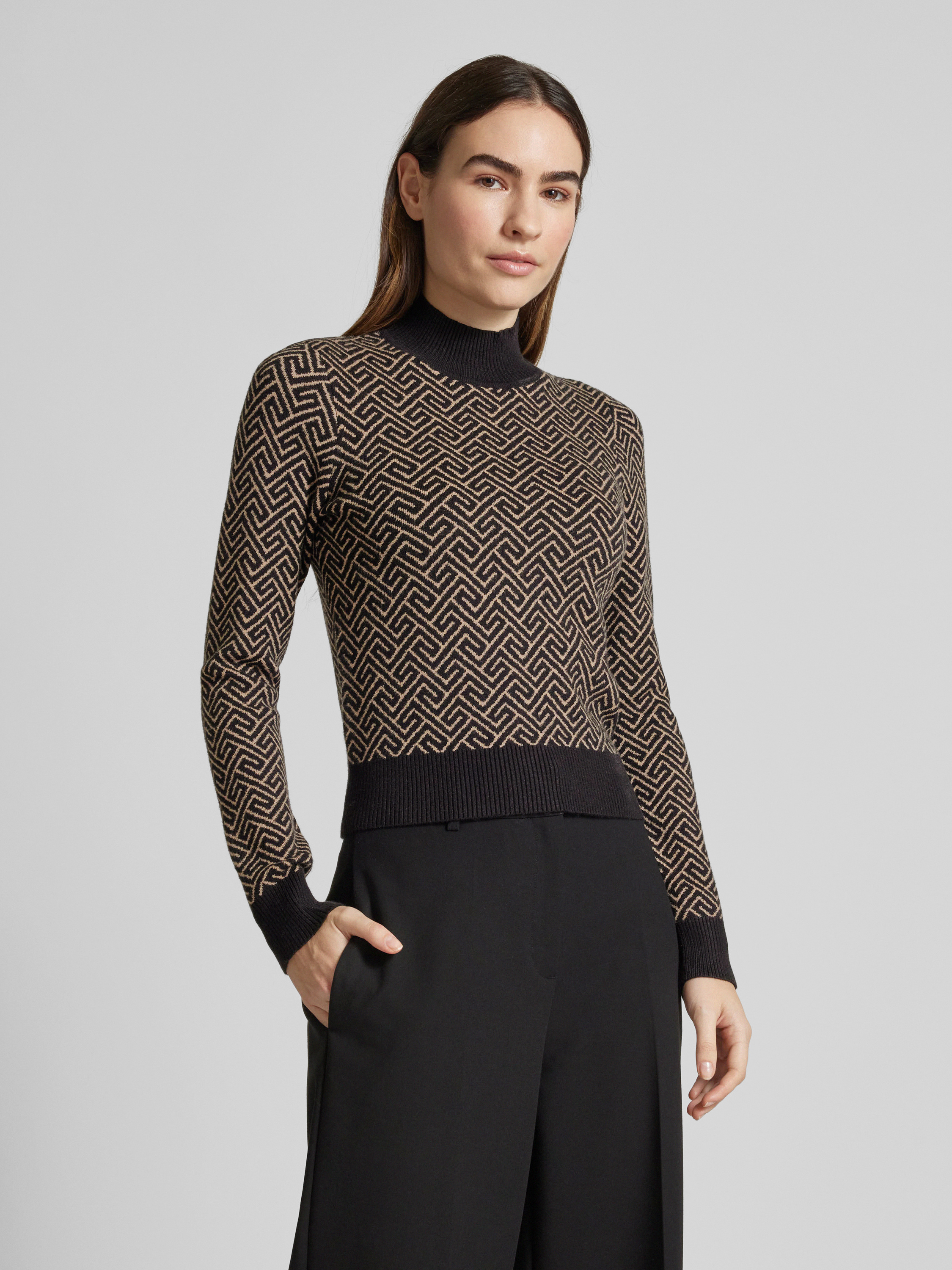 Vero ModaRegular fit gebreide pullover van viscosemix met geometrisch motief, model 'ARIA' in taupe