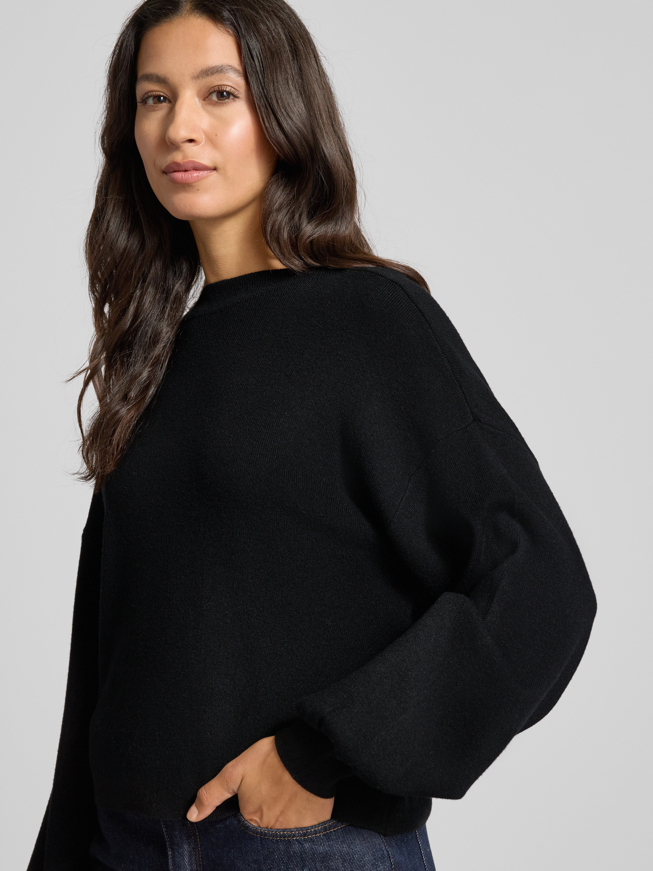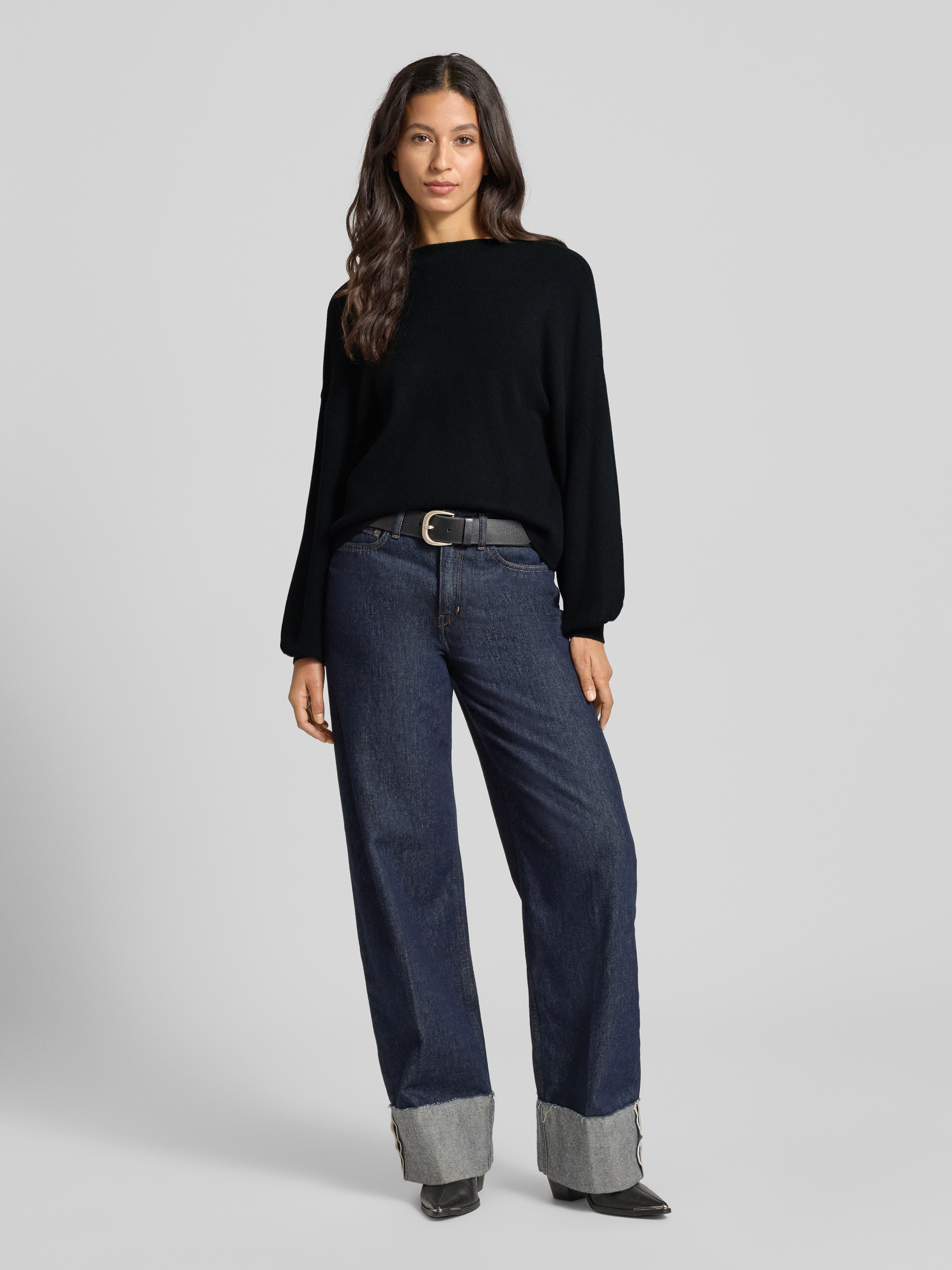 Regular fit gebreide pullover van viscosemix, model 'NANCY' in zwart