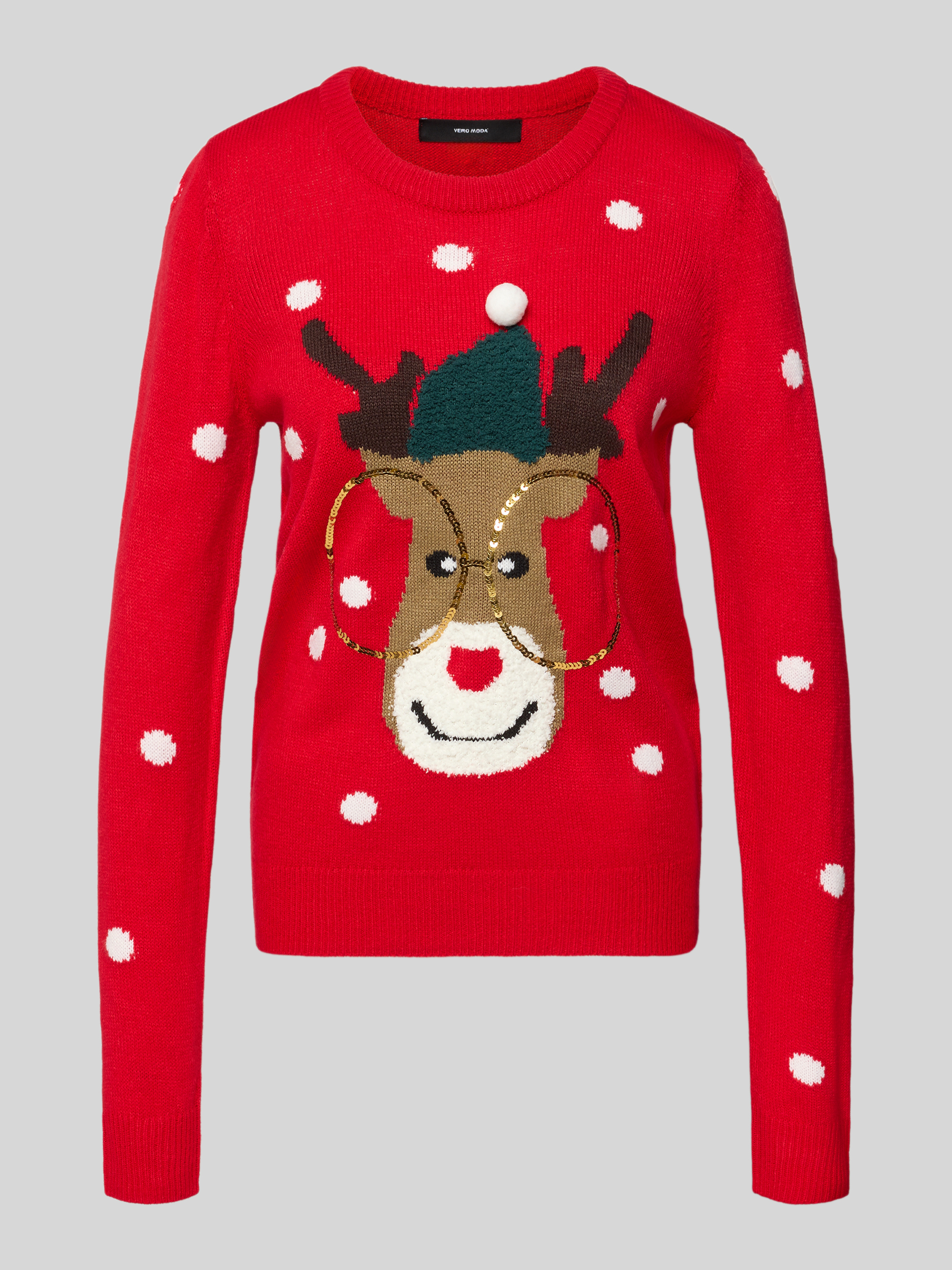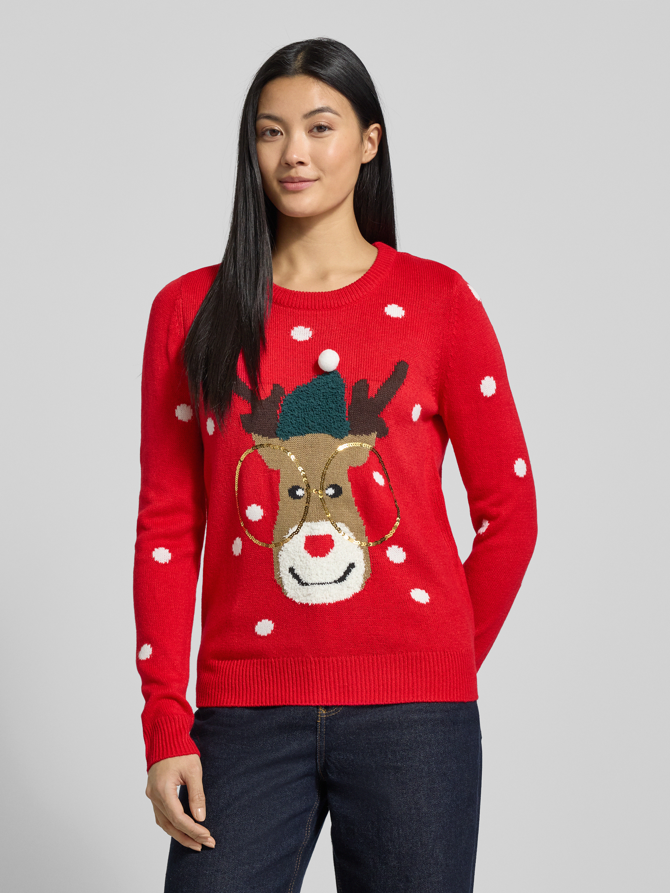 Regular fit kersttrui met paillettenmotief, model 'TINSEL' in rood