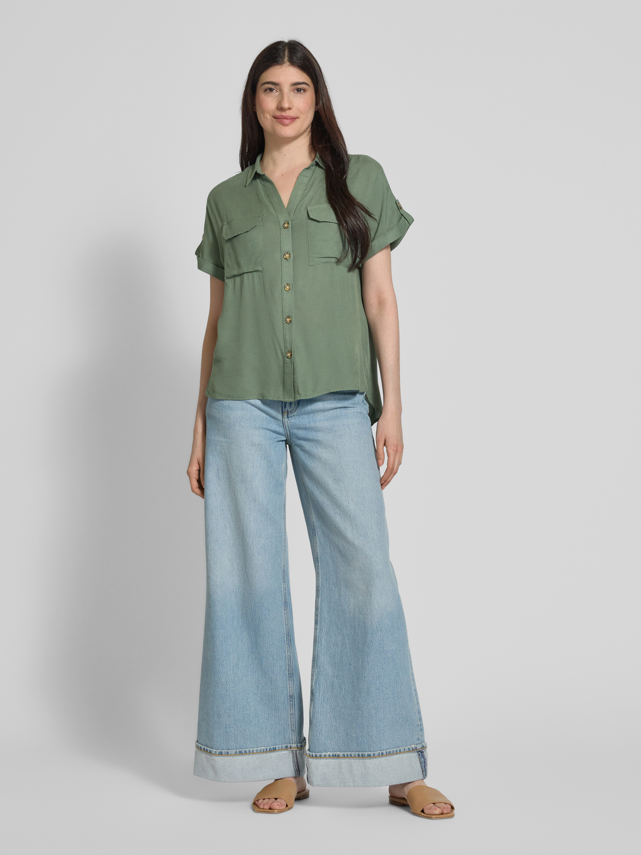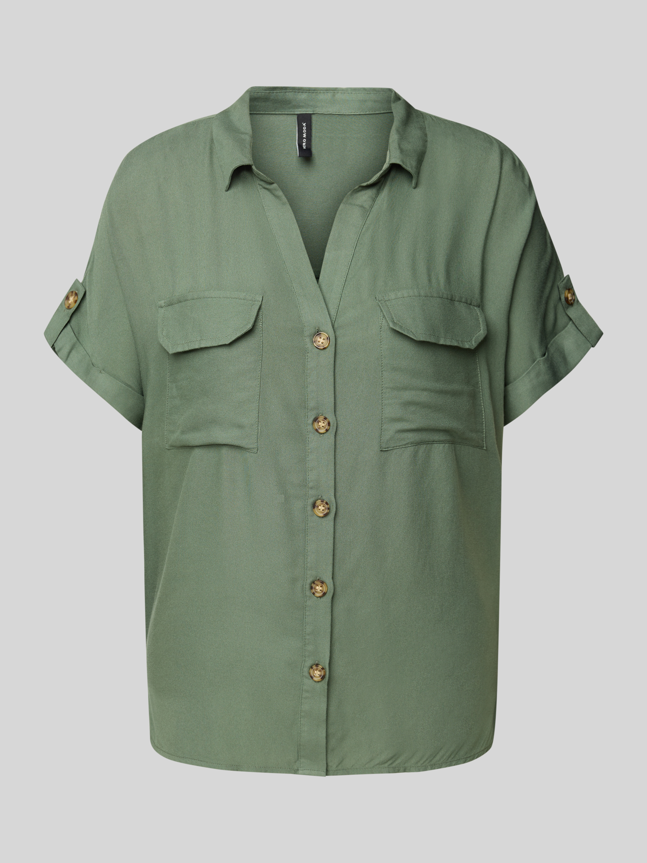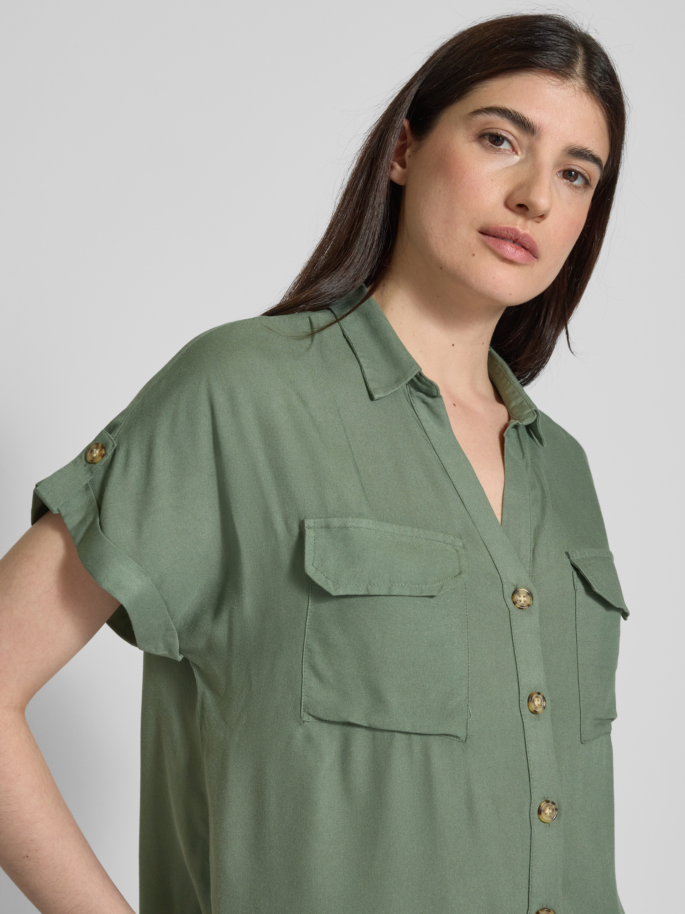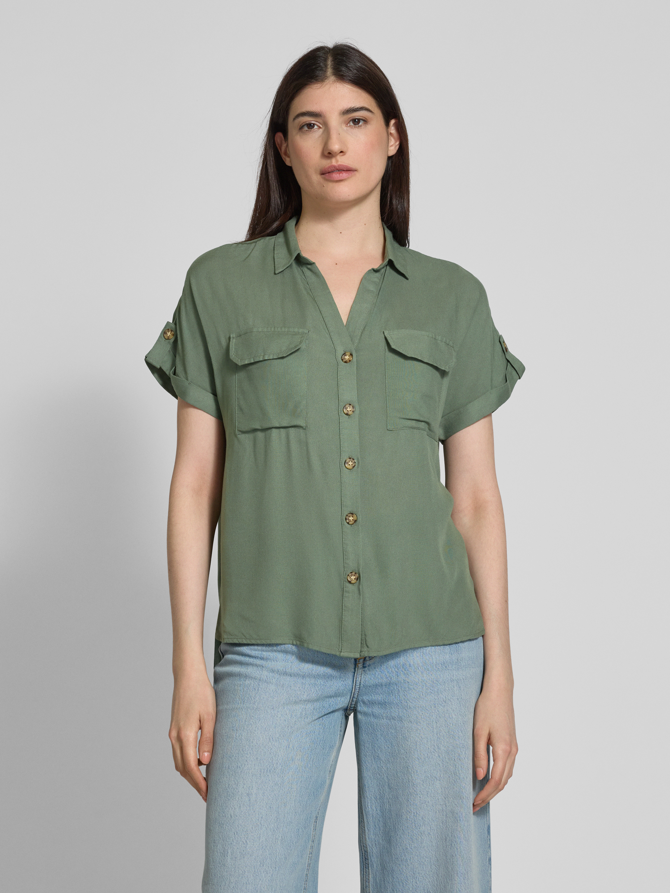 Regular fit overhemdblouse met borstzakken, model 'BUMPY' in olijfgroen