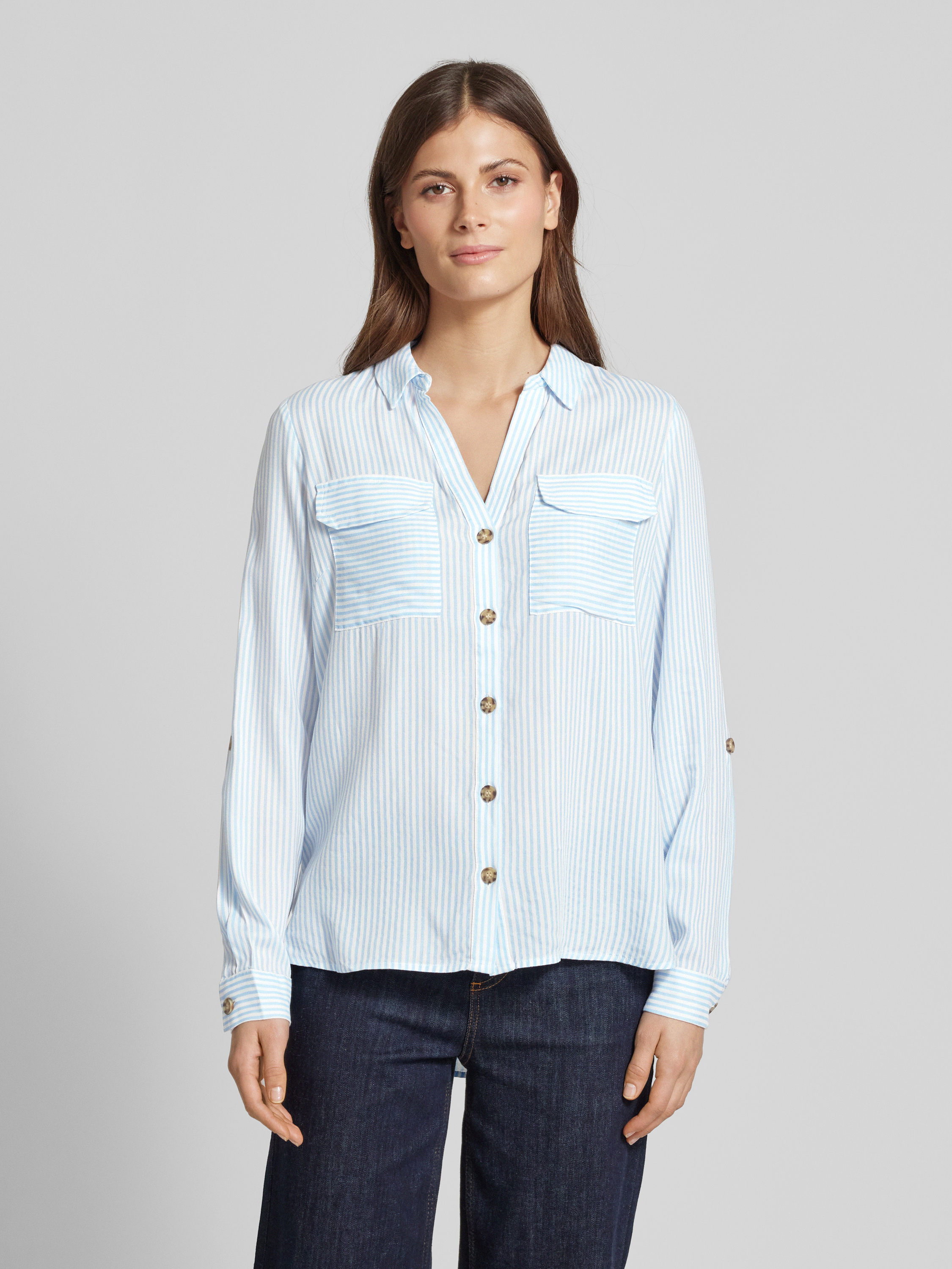 Regular fit overhemdblouse van pure viscose, model 'BUMPY' in lichtblauw