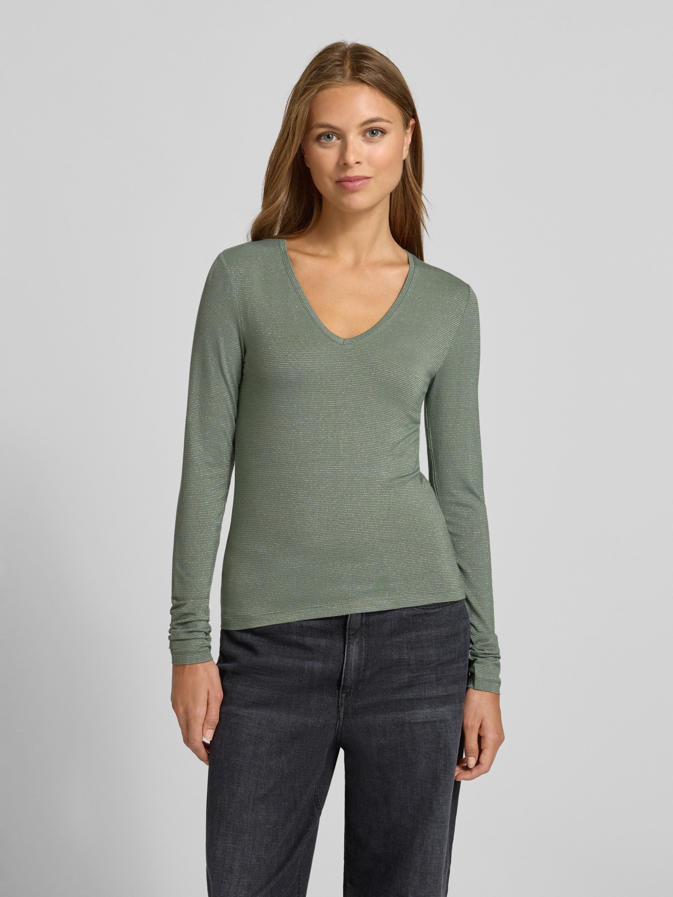 Regular fit shirt met lange mouwen van viscosemix, model 'LAVA' in rietgroen