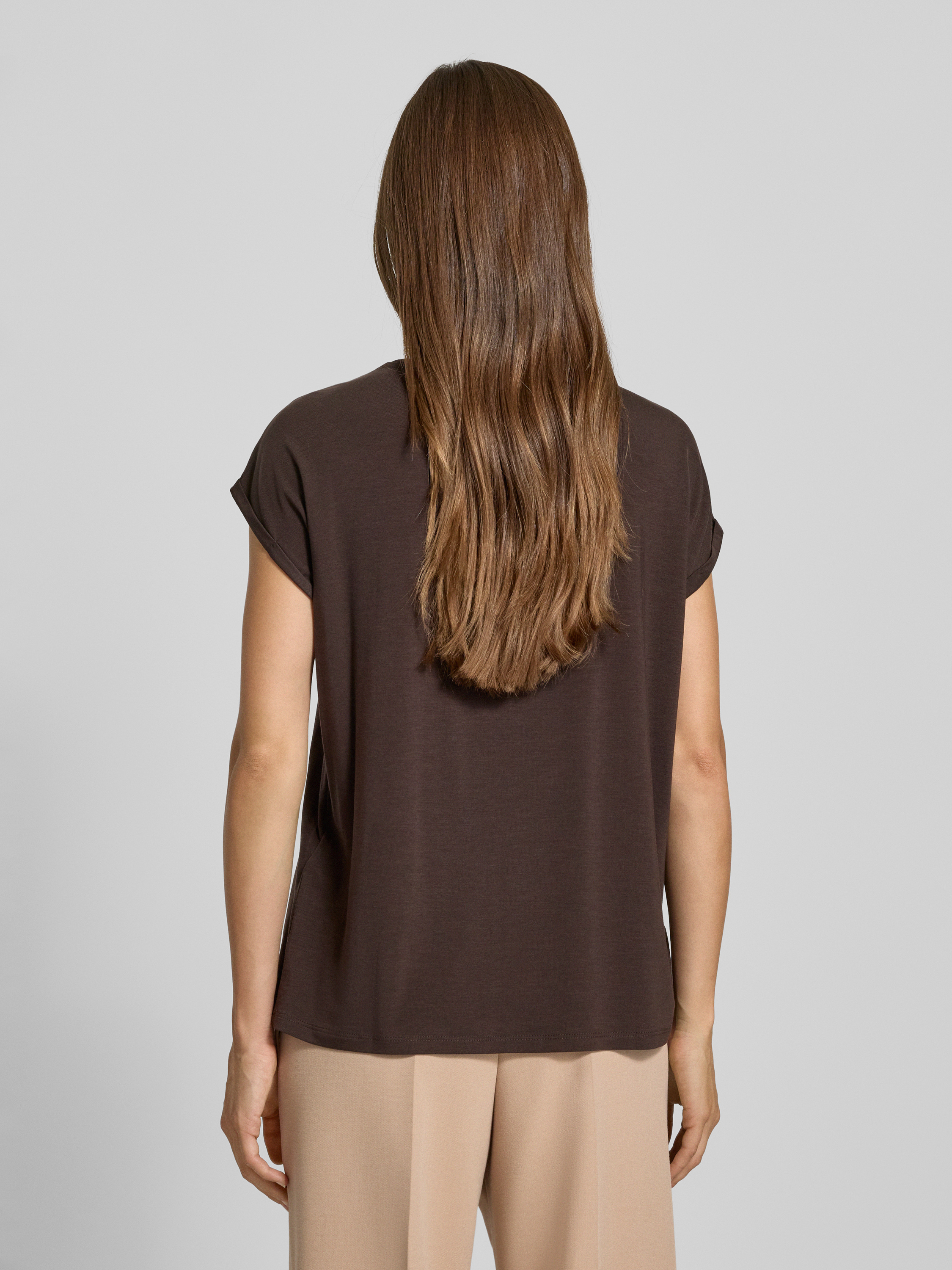 Regular fit T-shirt van lyocell-mix, model 'AVA' in chocoladebruin