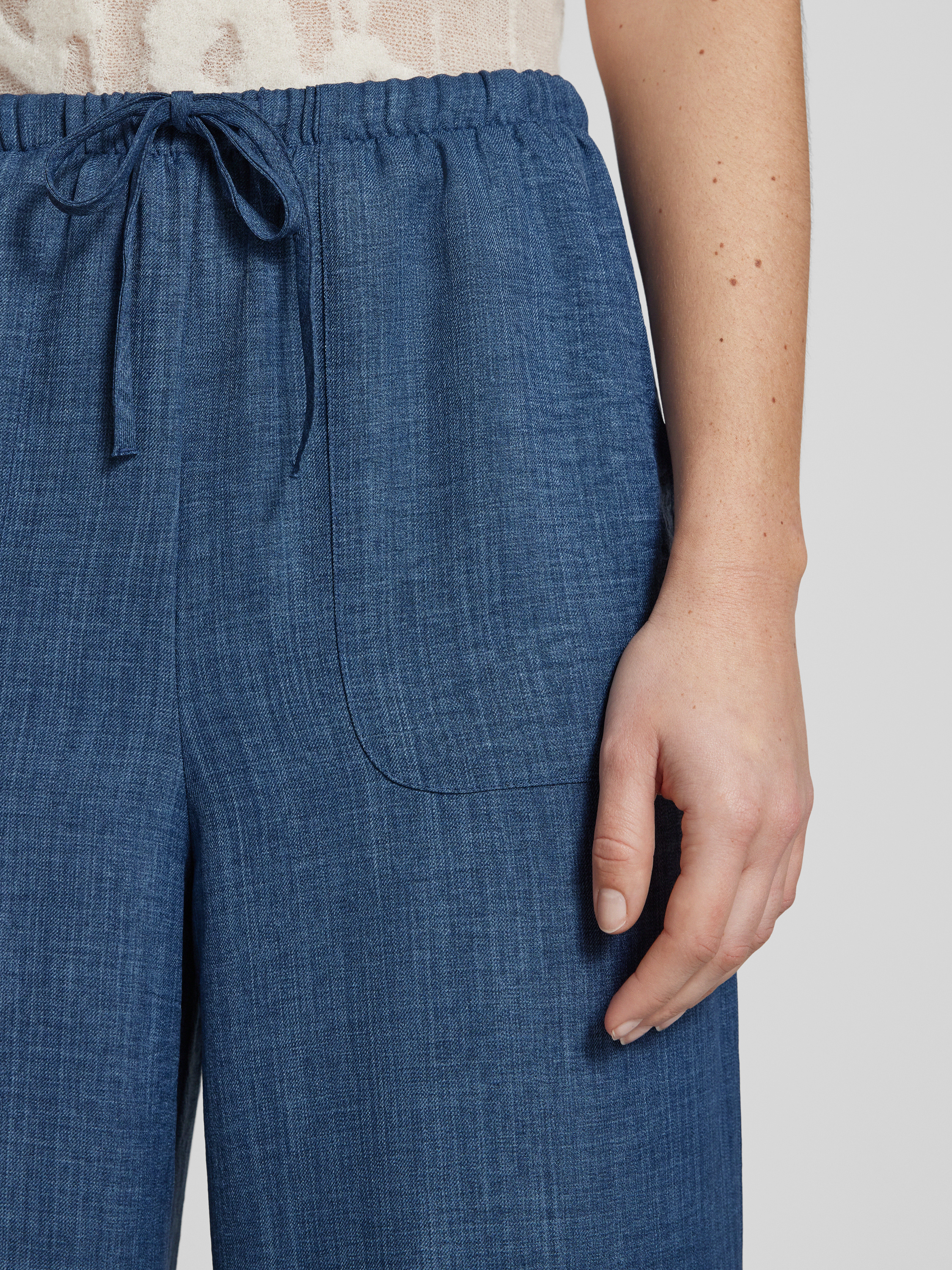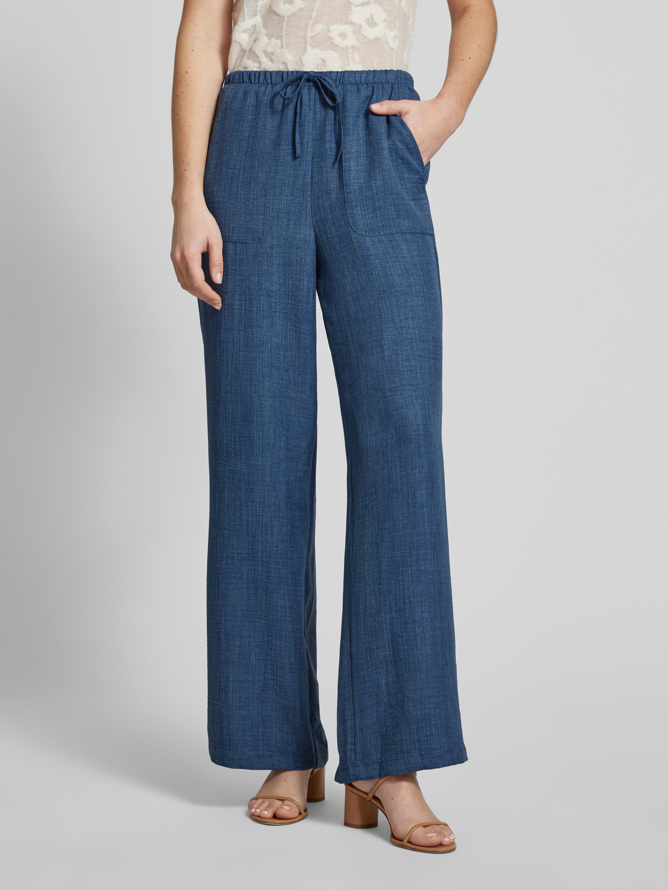 Regular fit wijde broek met elastische band, model 'MELANEY' in blauw