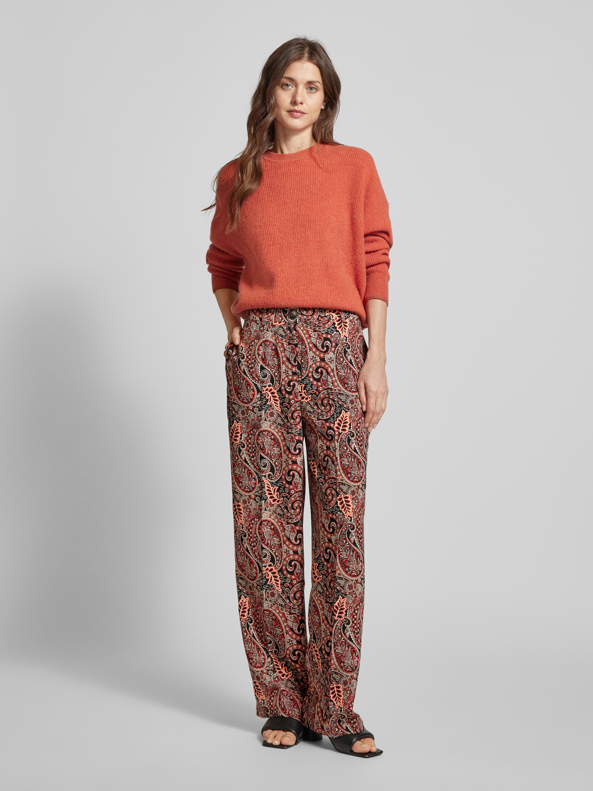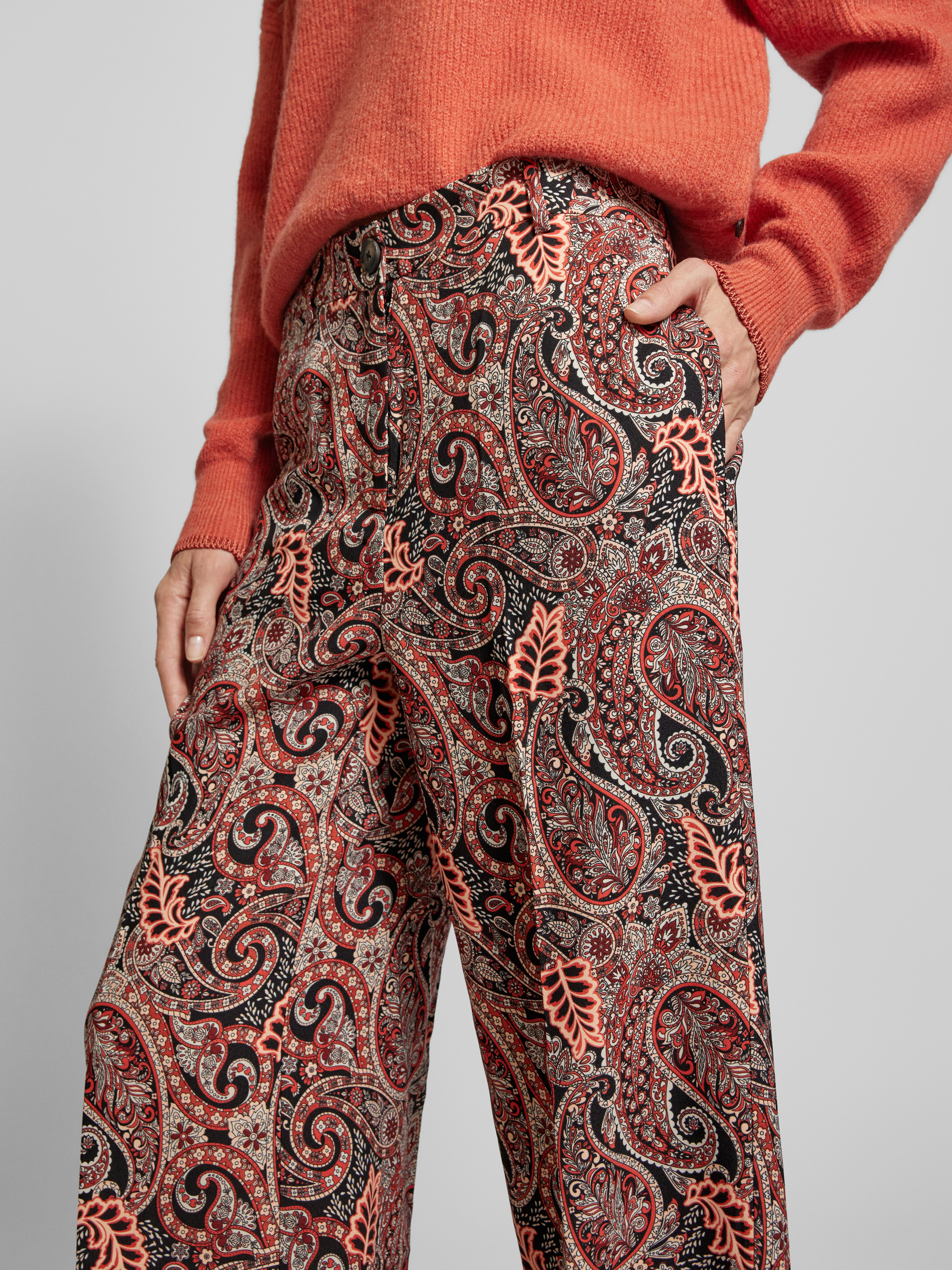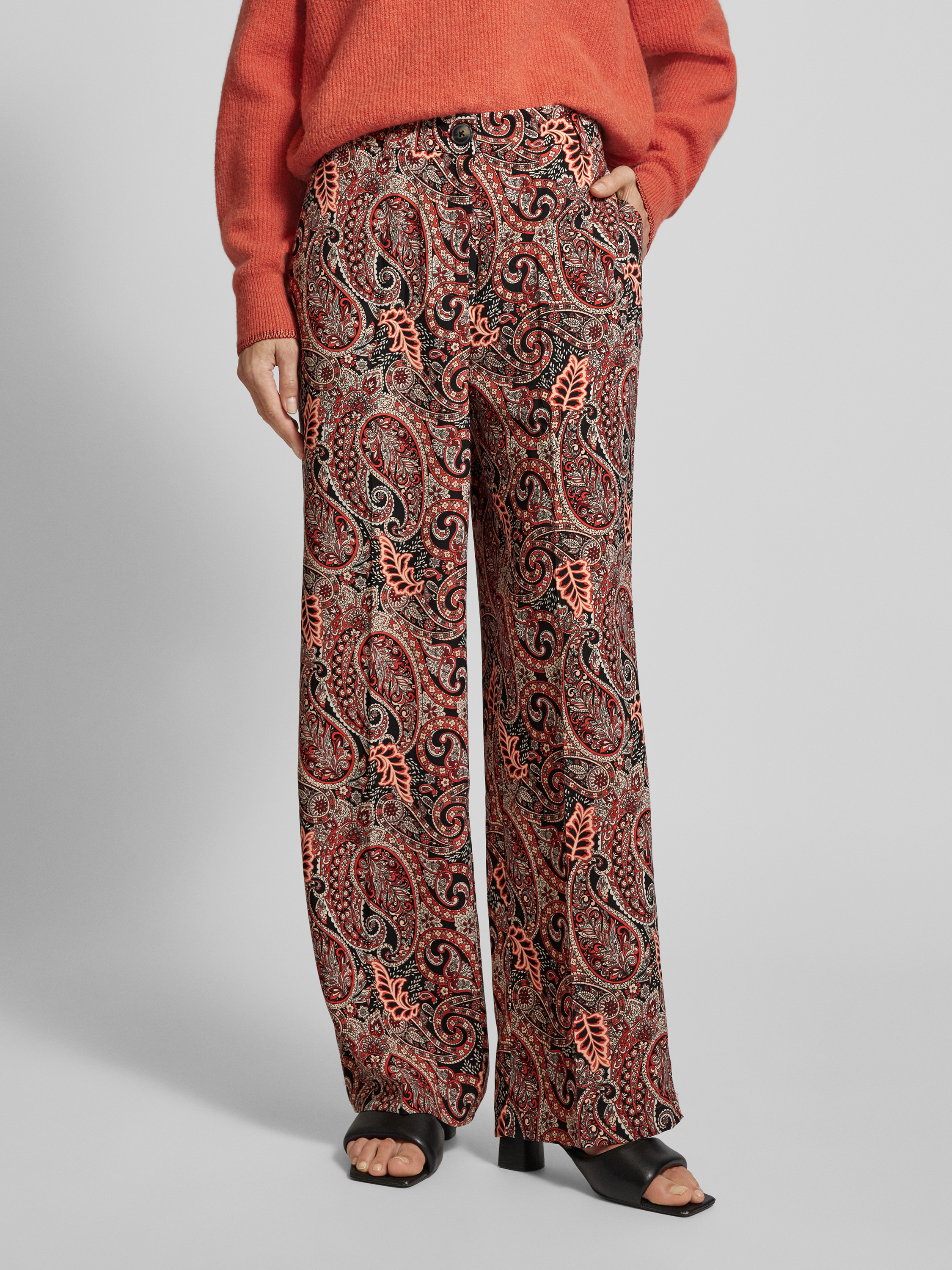 Regular fit wijde broek met knoop in hoornlook, model 'MABLE MAVITA' in rood