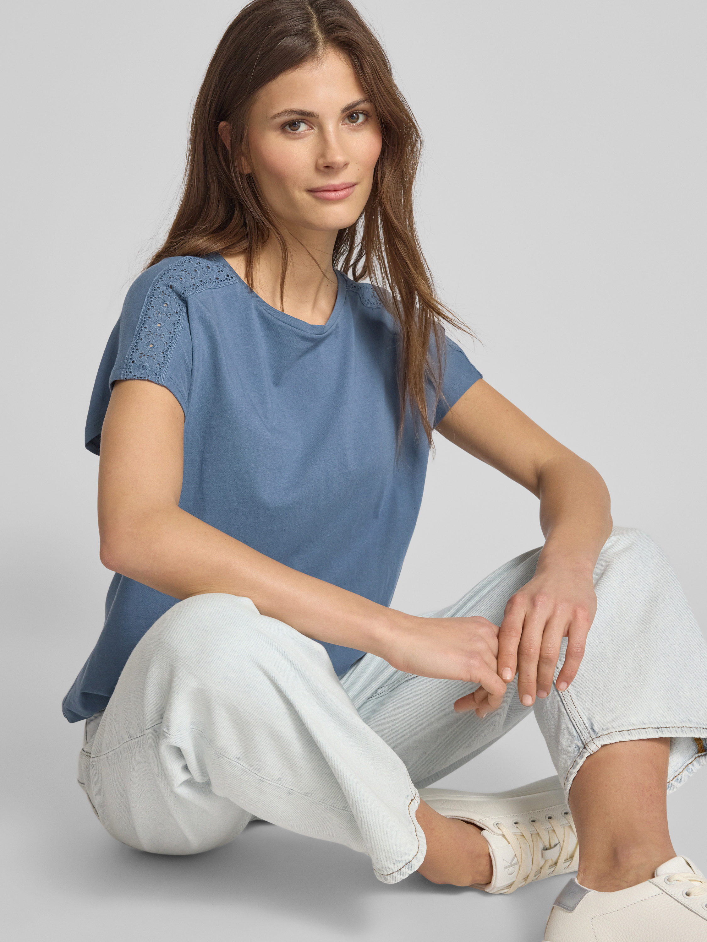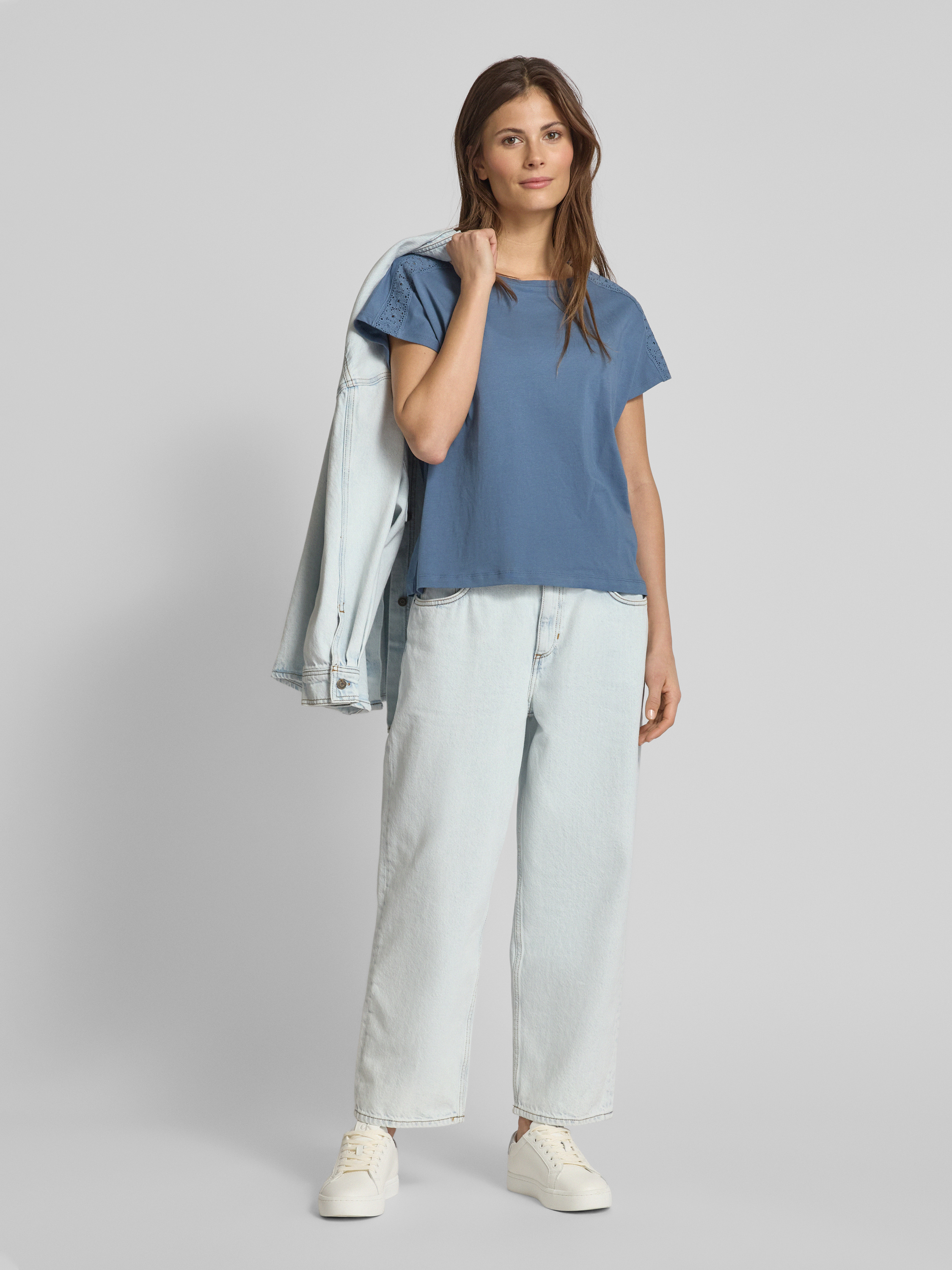 Relaxed fit T-shirt van puur katoen, model 'EMMY' in blauw