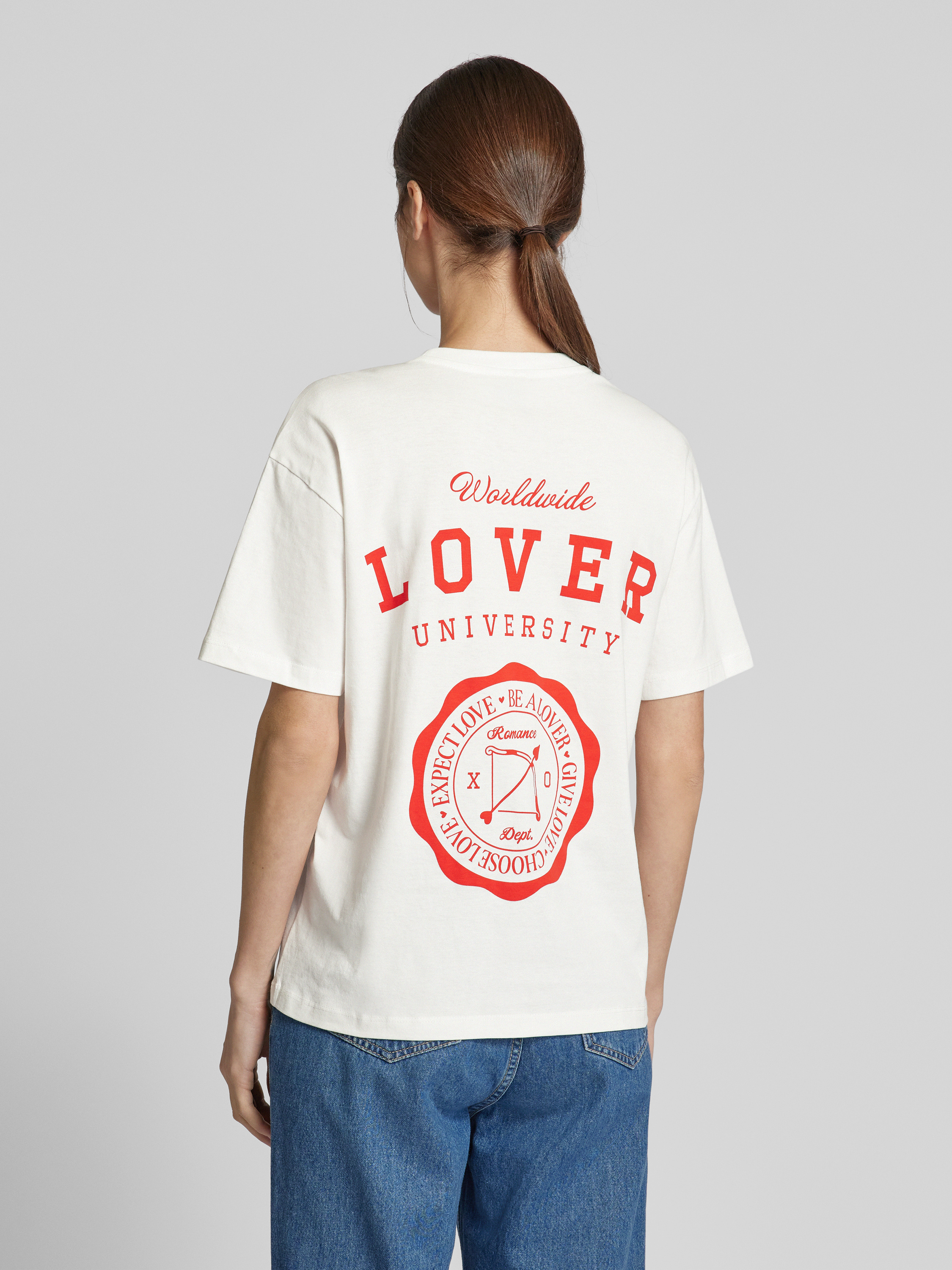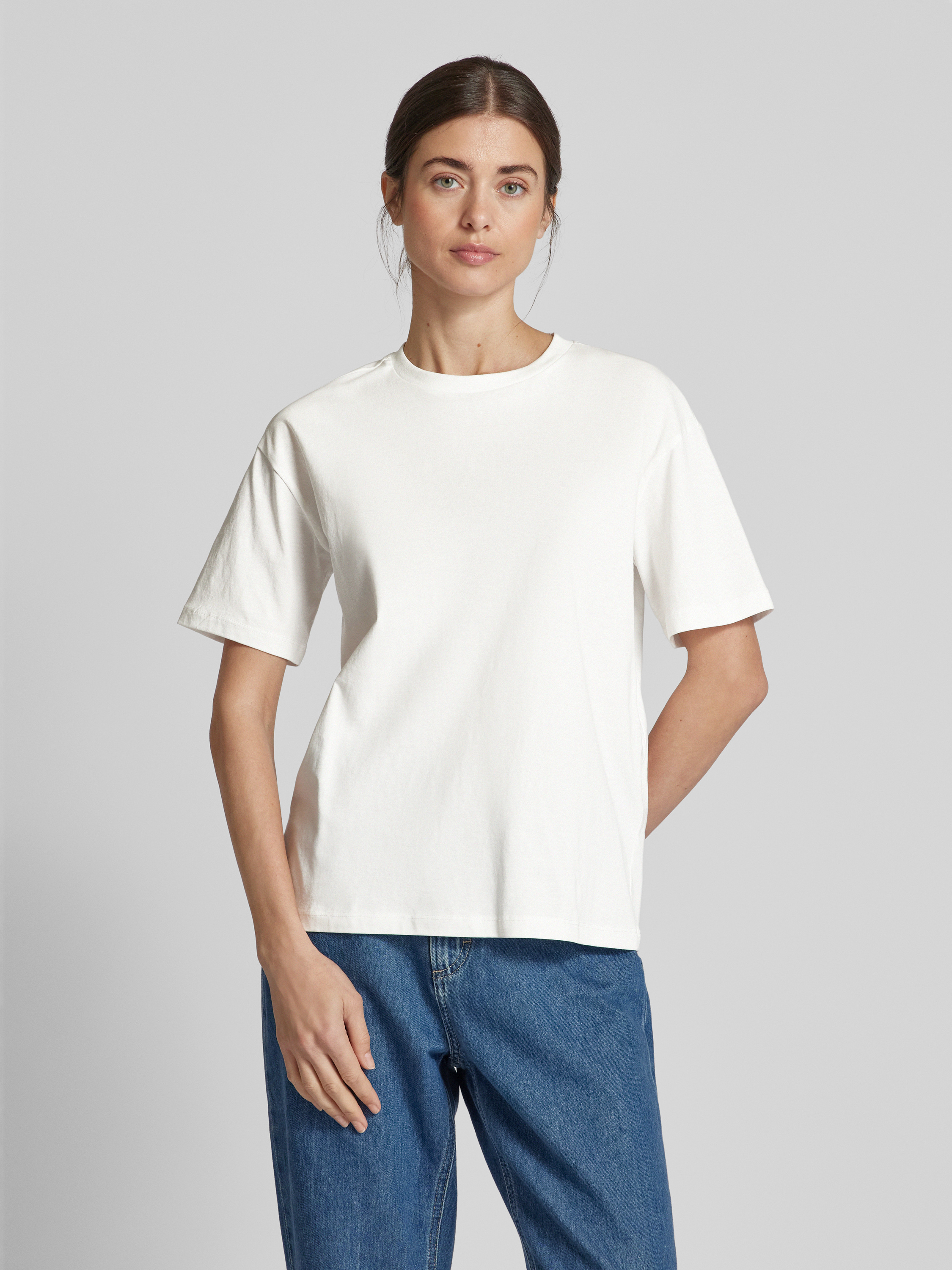 Relaxed fit T-shirt van puur katoen, model 'SOPHIE MIA' in wit
