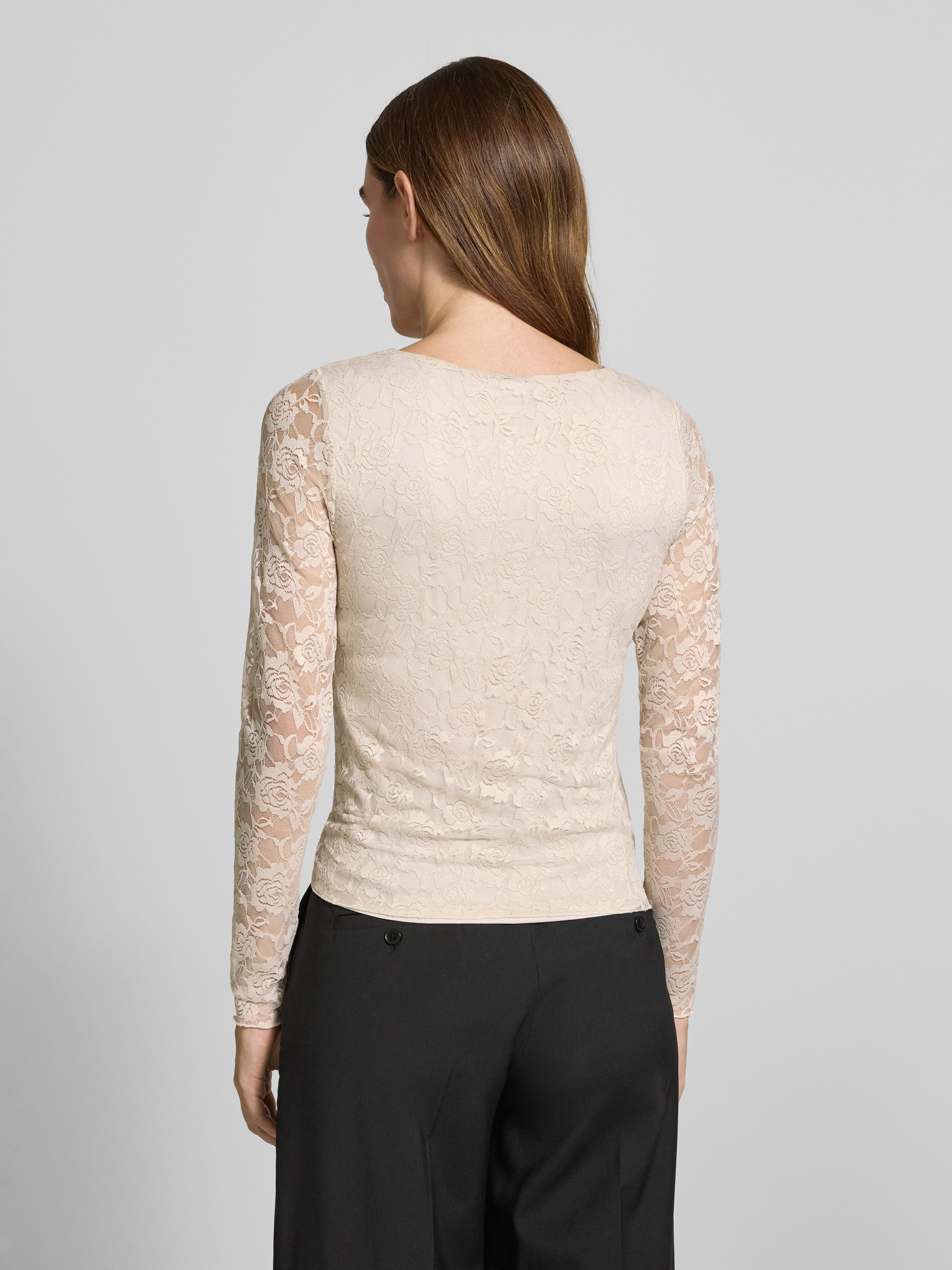 Slim fit shirt met lange mouwen in kantlook, model 'IBEN' in ecru