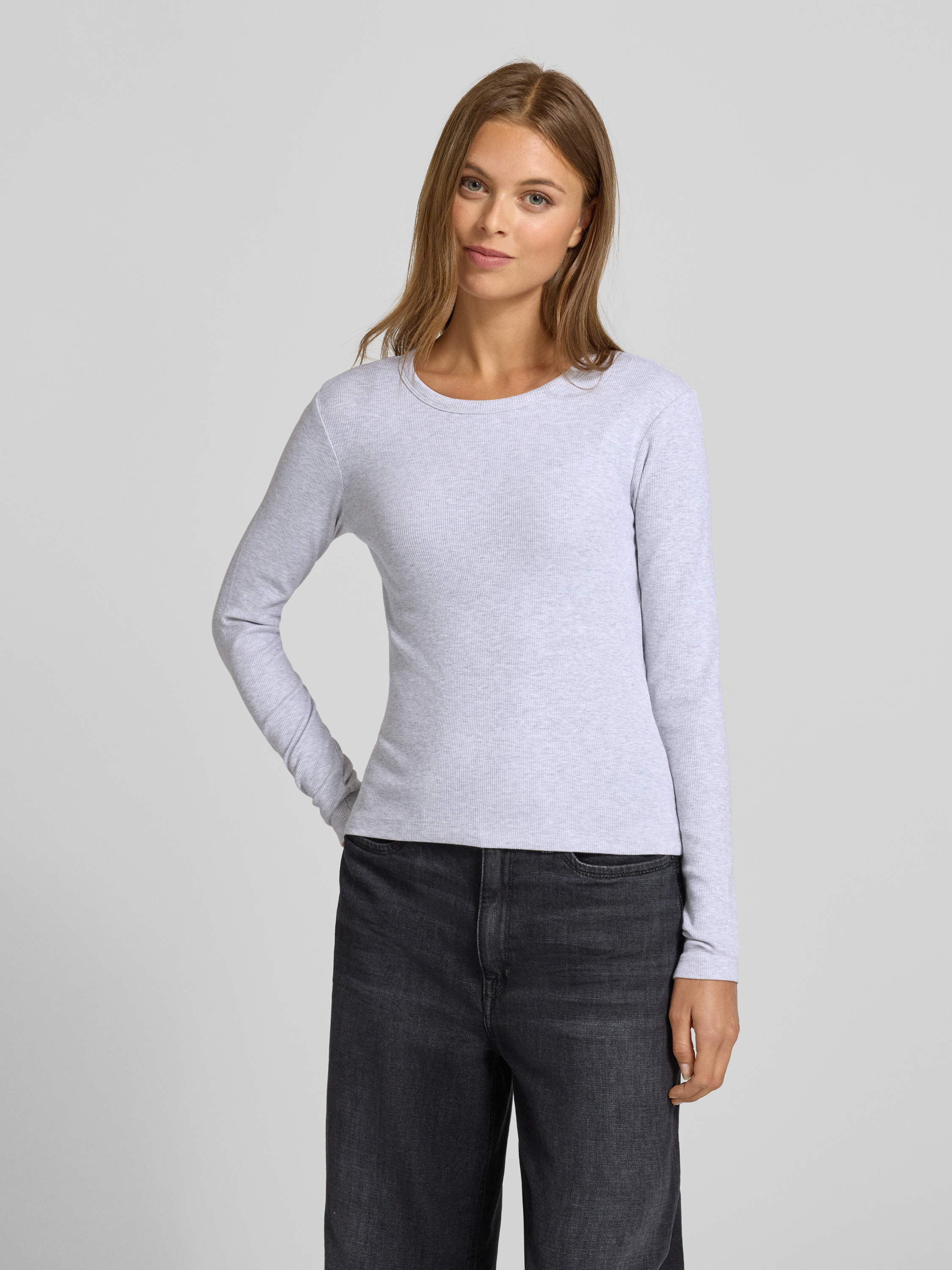 Slim fit shirt met lange mouwen van katoenmix, model 'CHLOE' in lichtgrijs gemêleerd