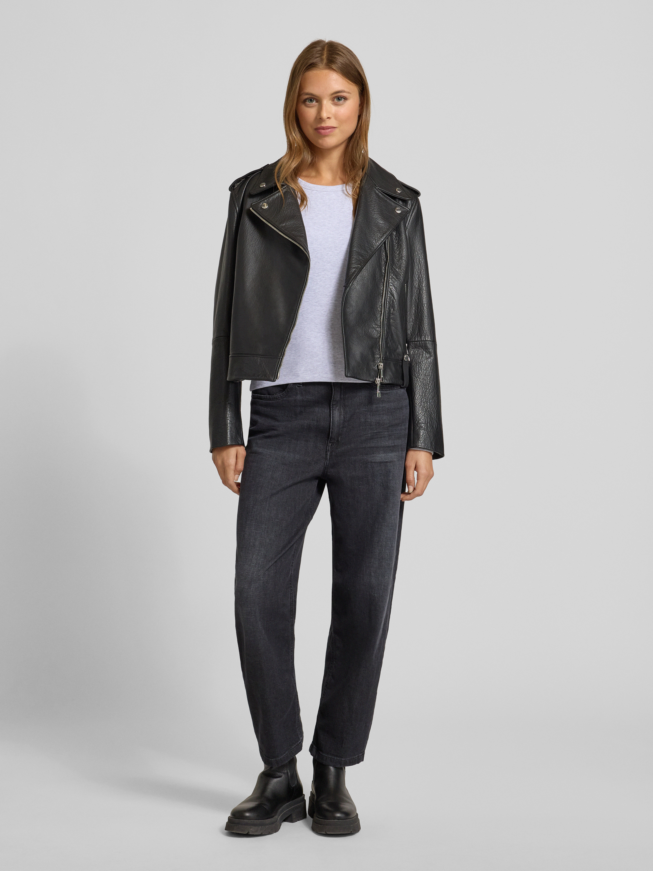 Regular fit leren jack van generfd runderleer