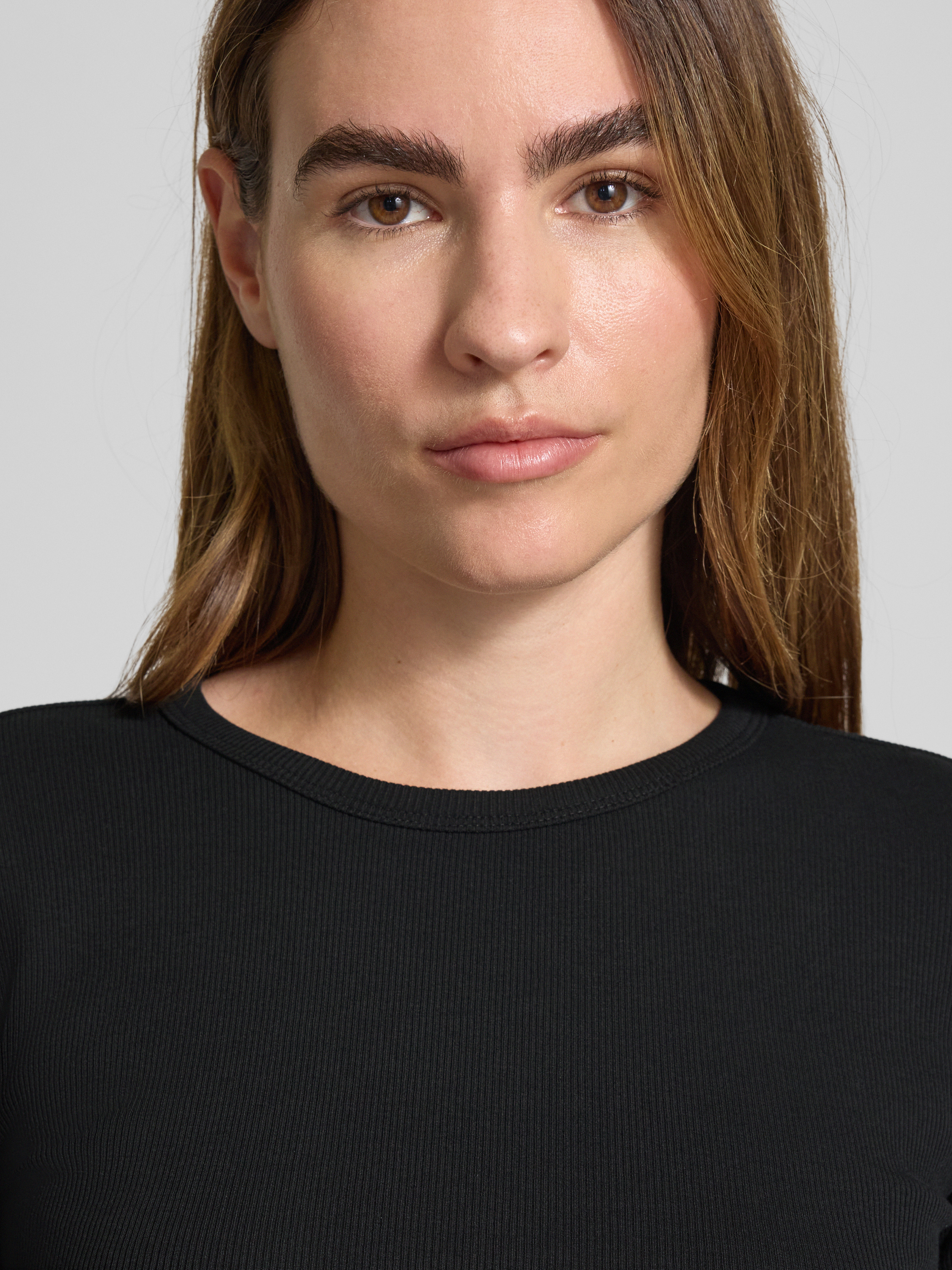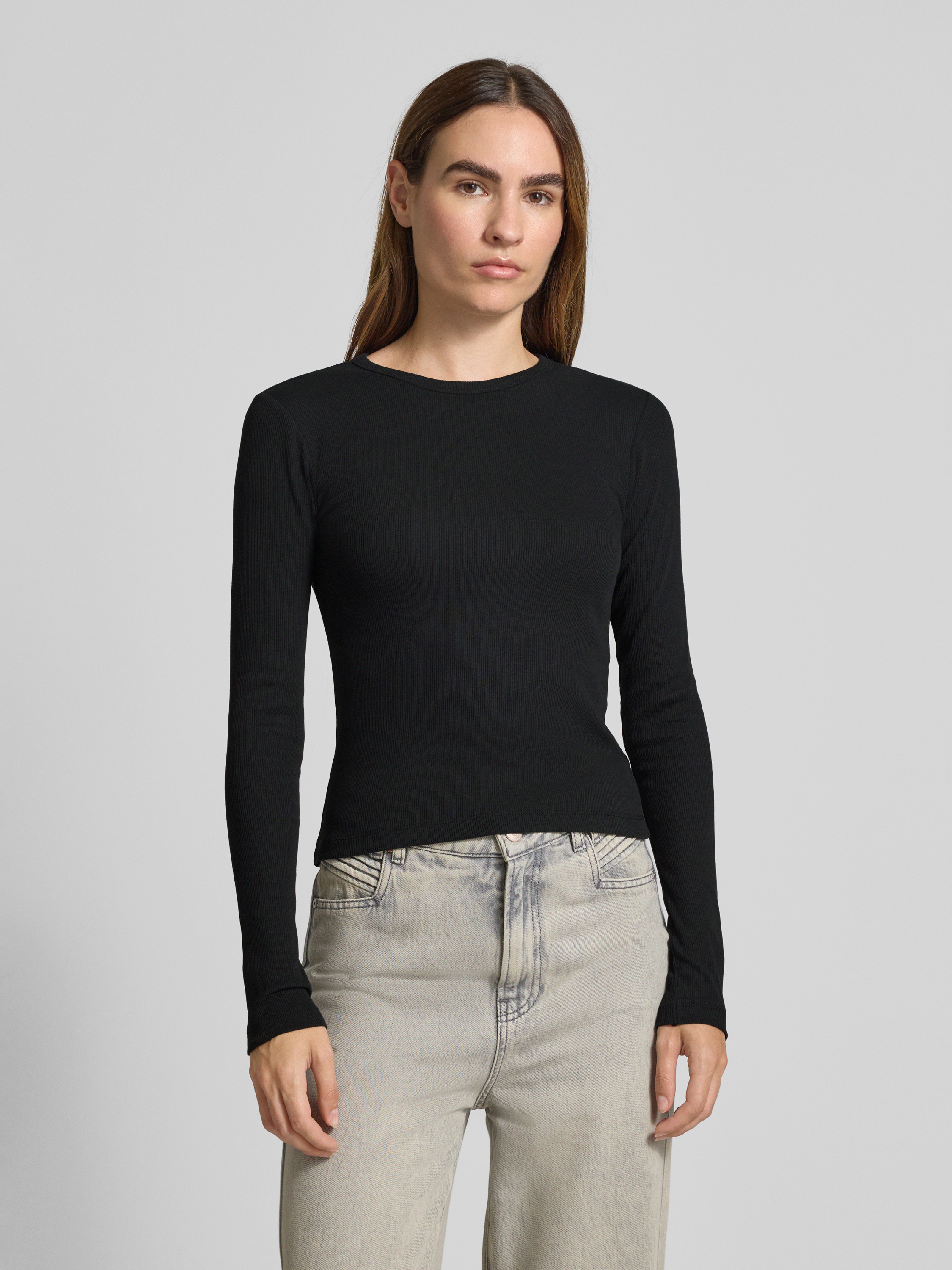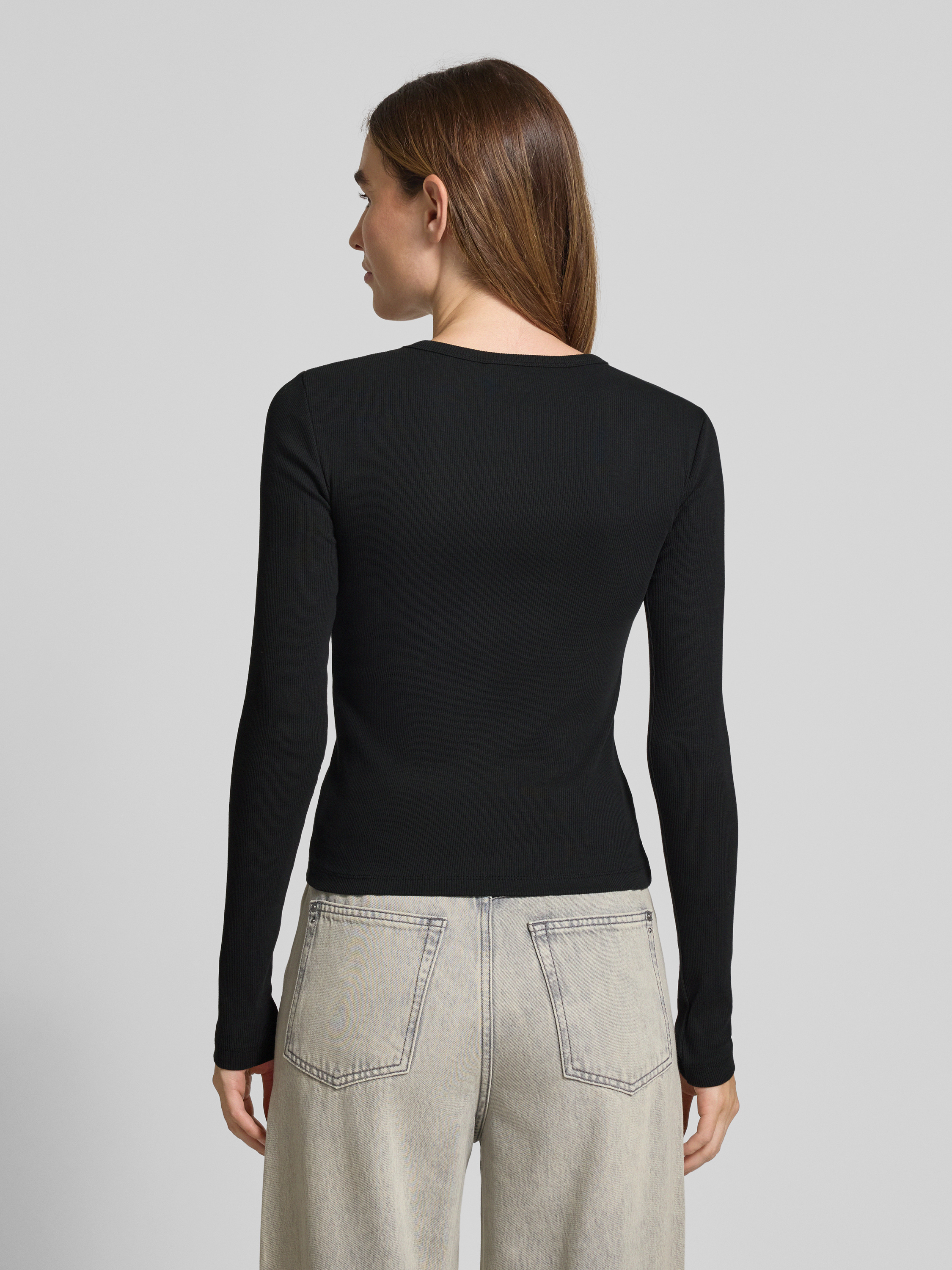 Slim fit shirt met lange mouwen van katoenmix, model 'CHLOE' in zwart