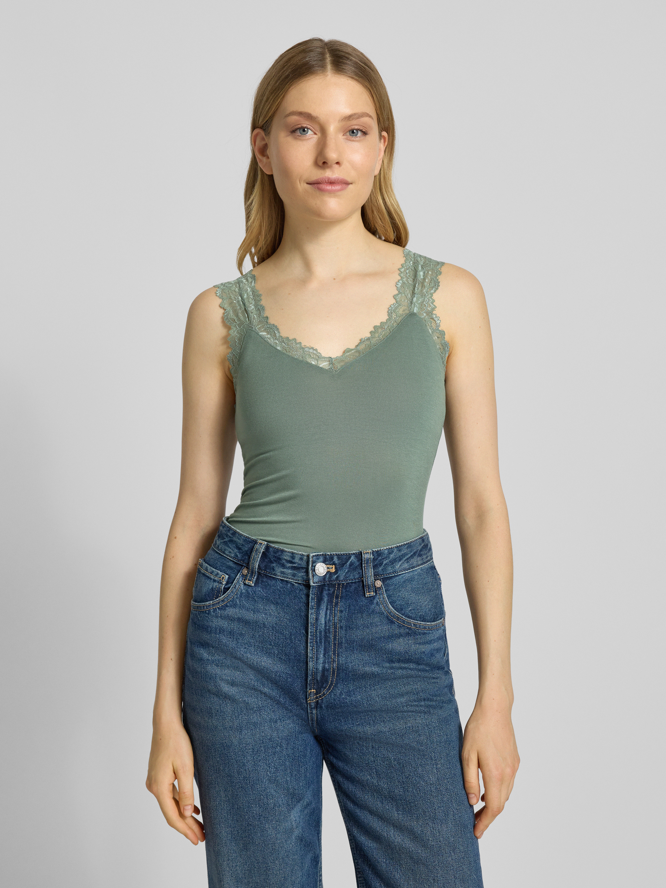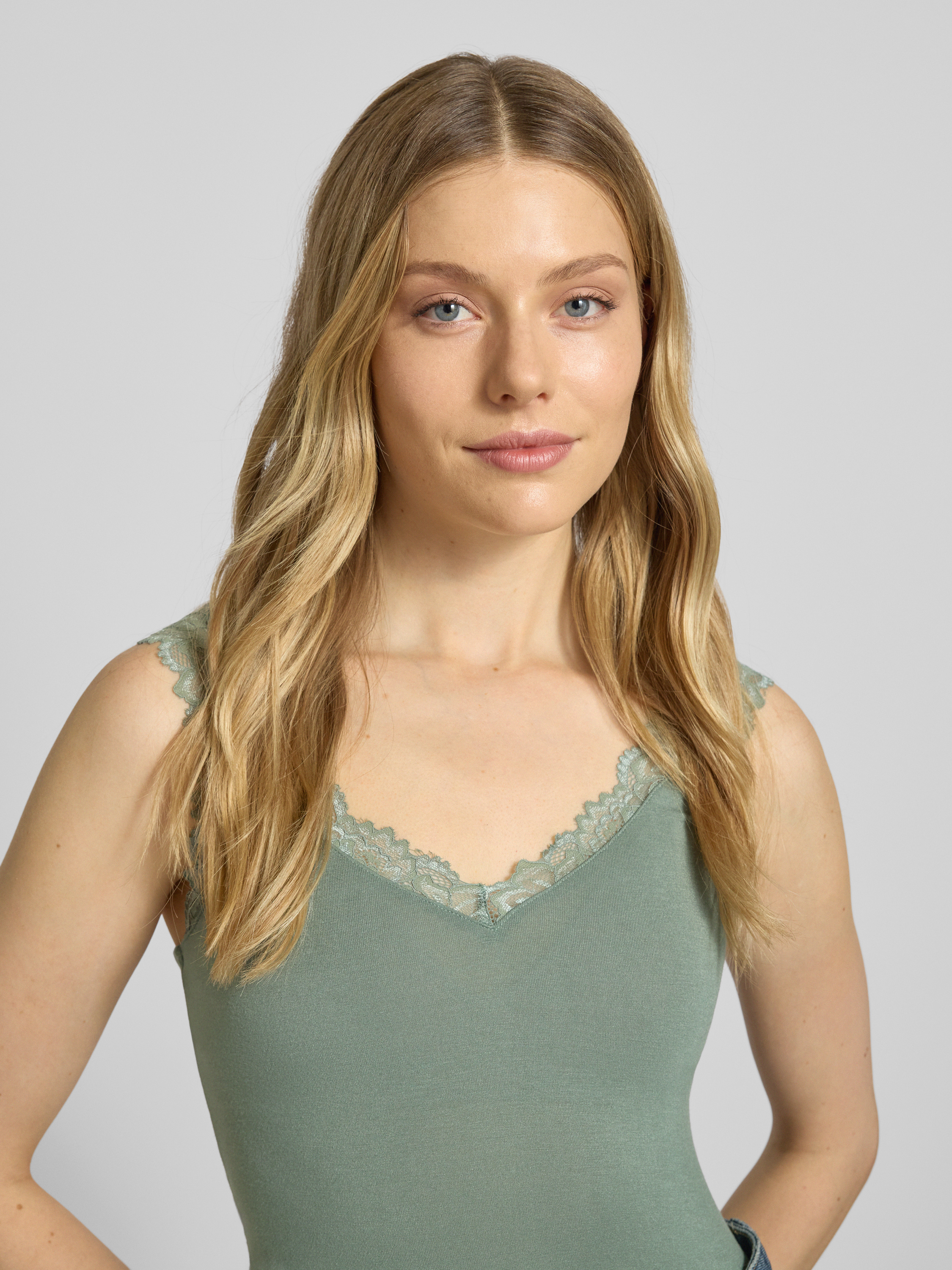 Slim fit tanktop in viscosemix, model 'ROSA' in rietgroen
