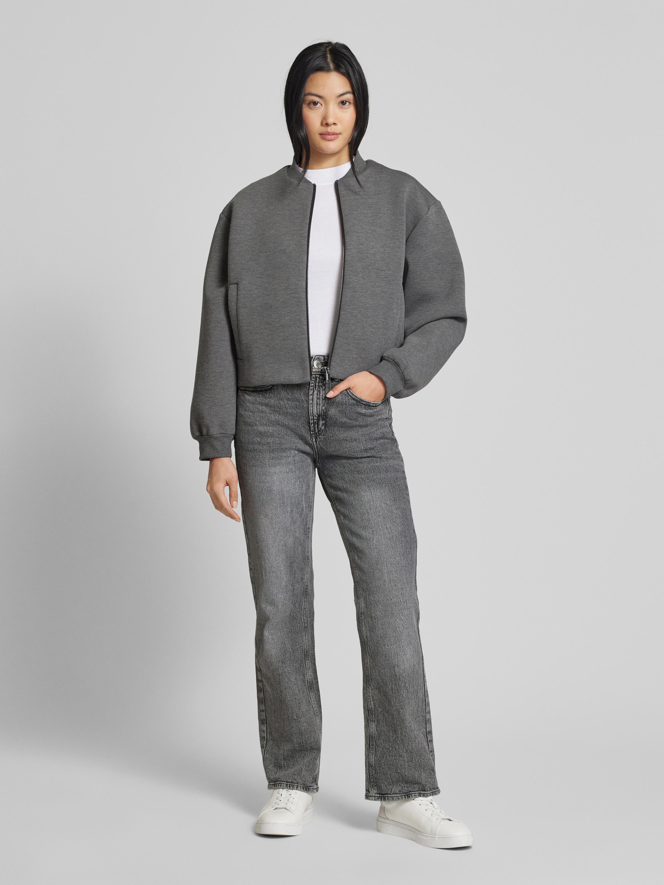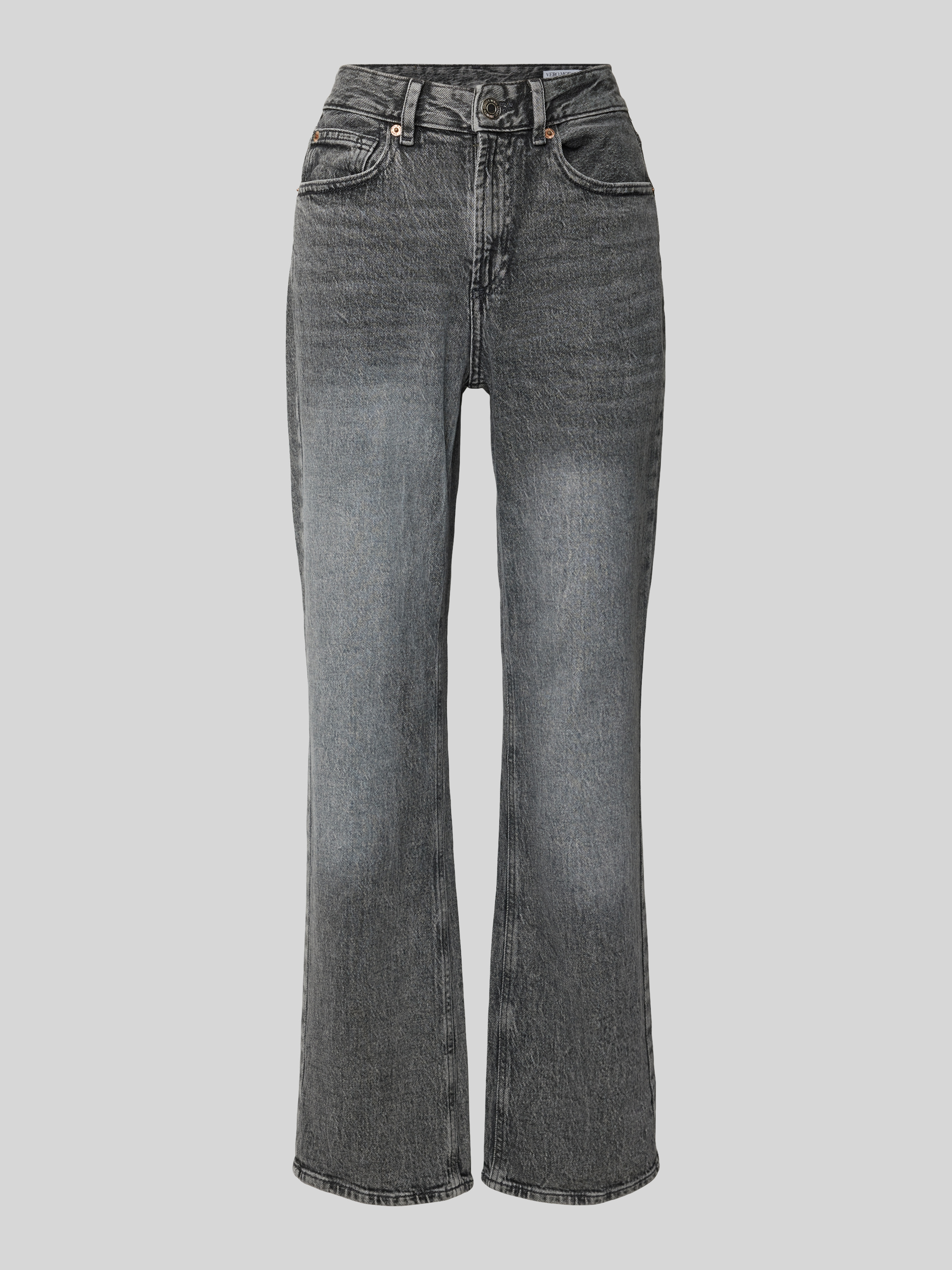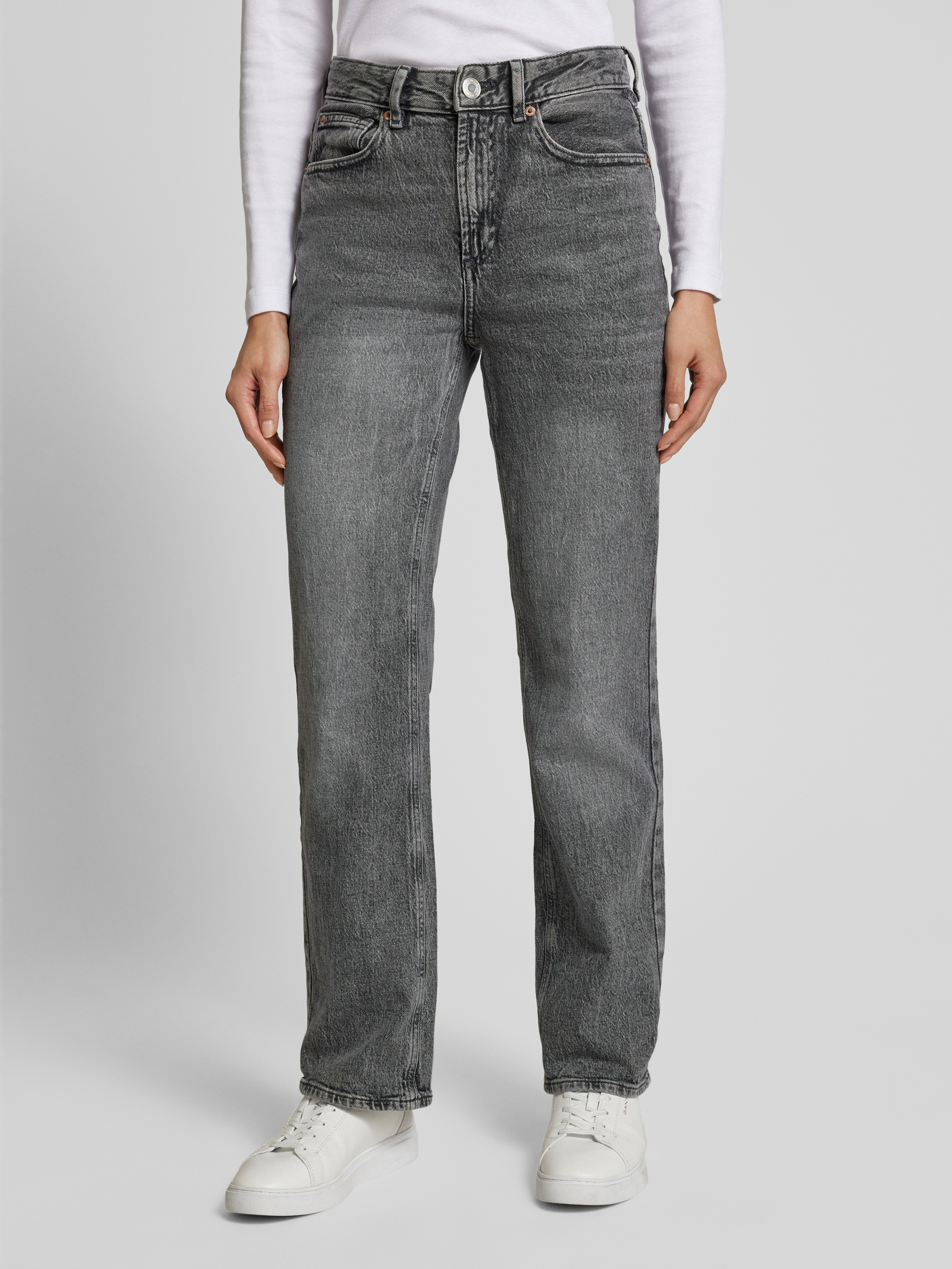 Straight fit jeans van katoenmix in middengrijs gemêleerd