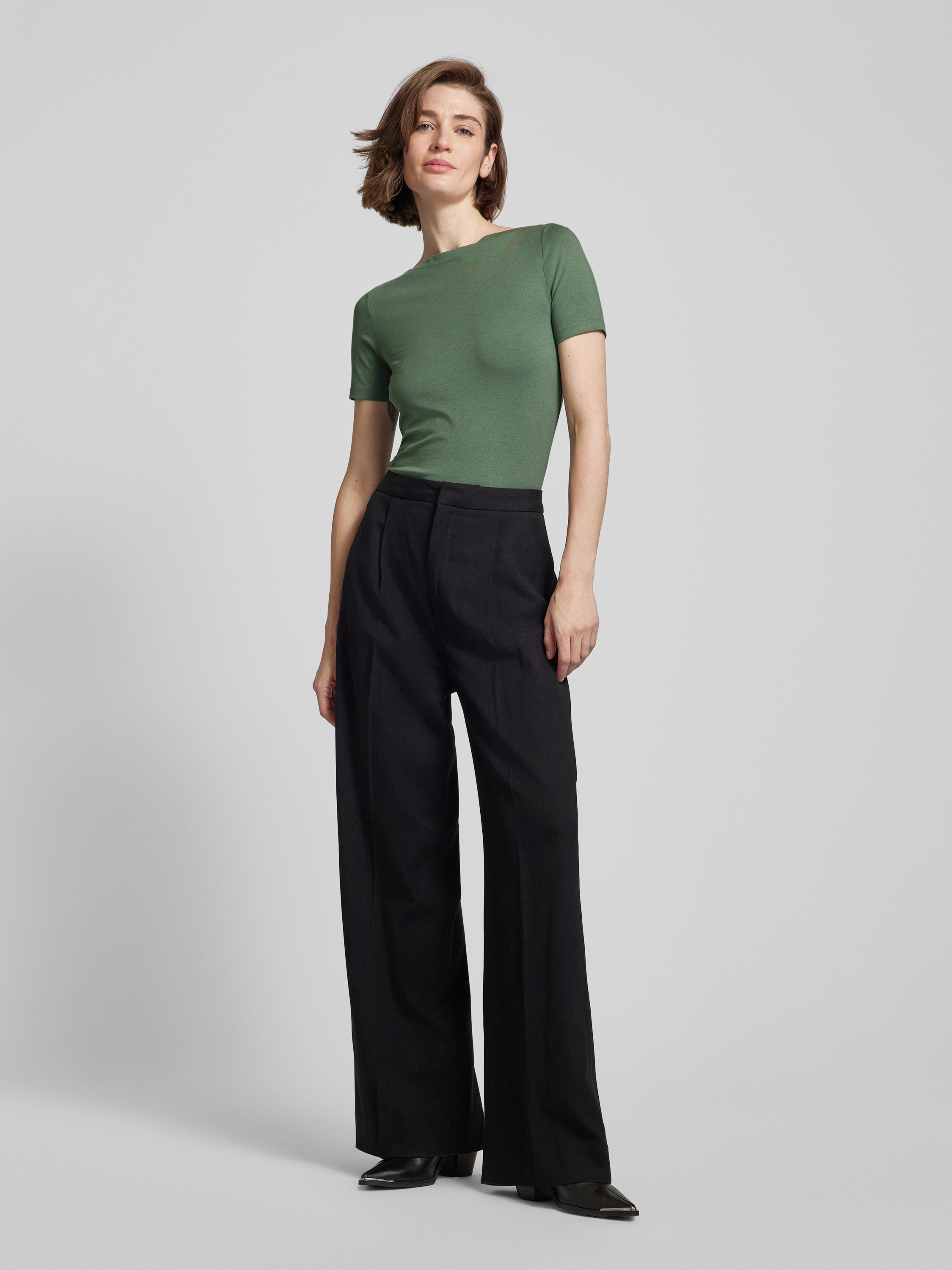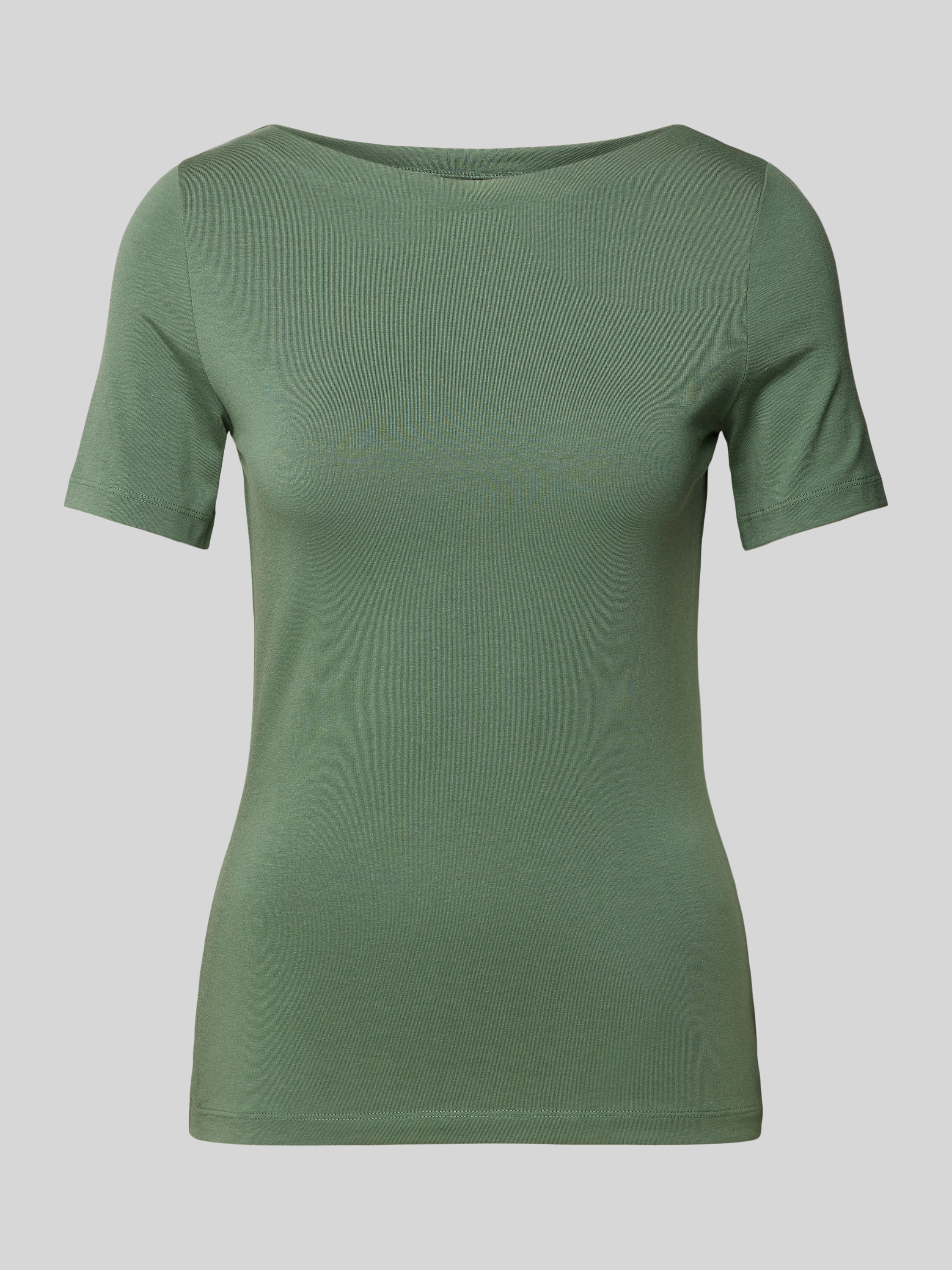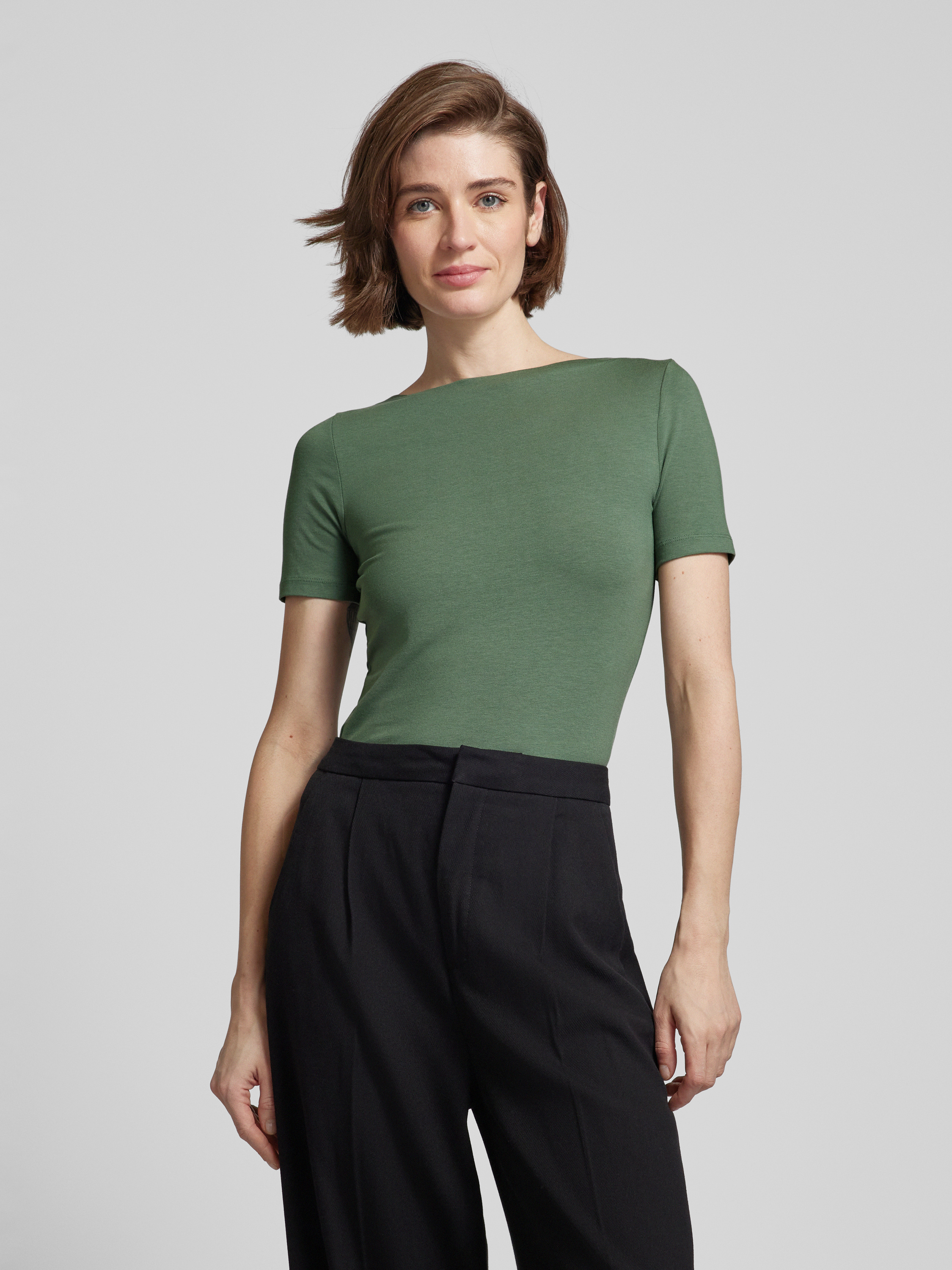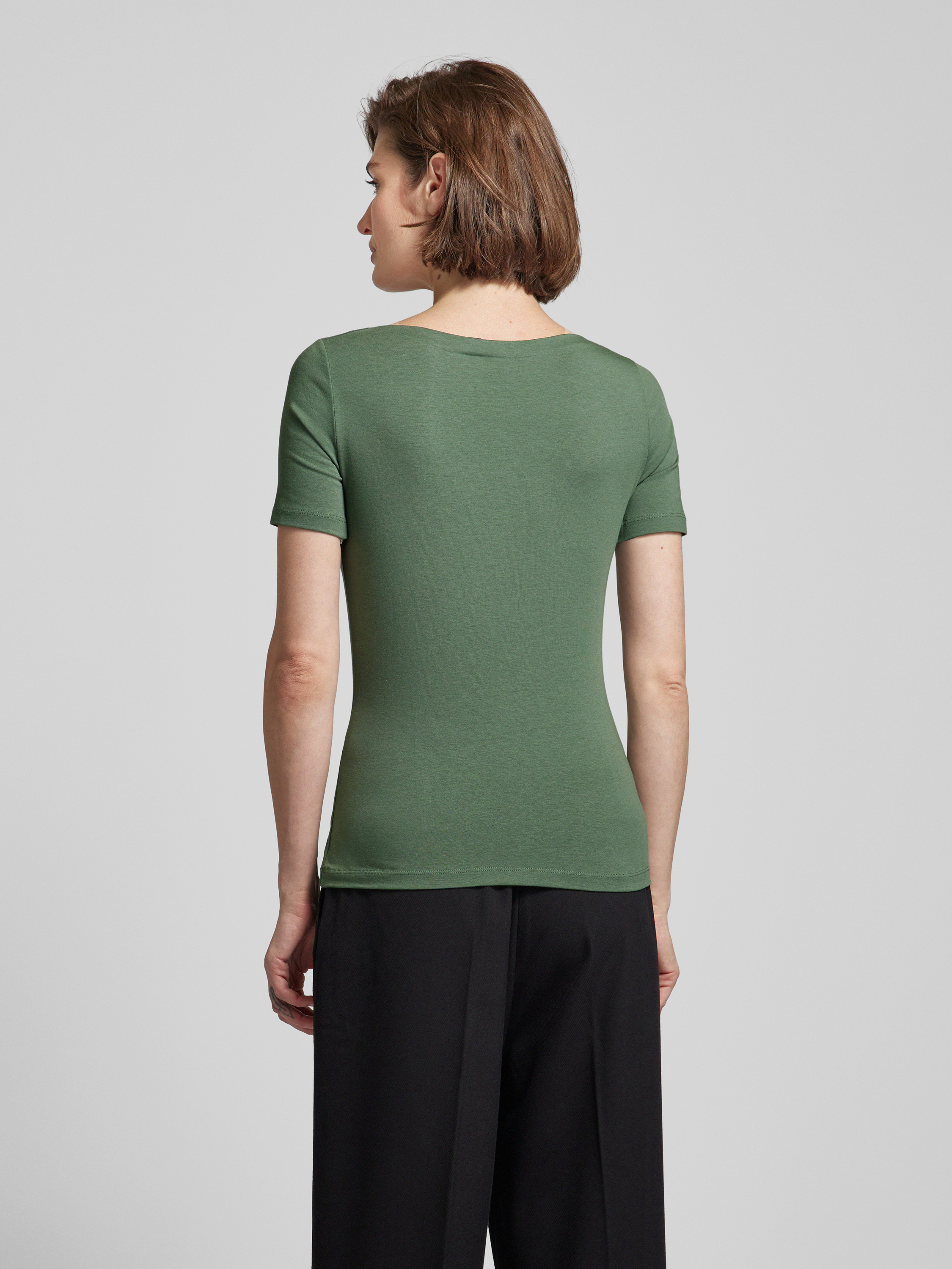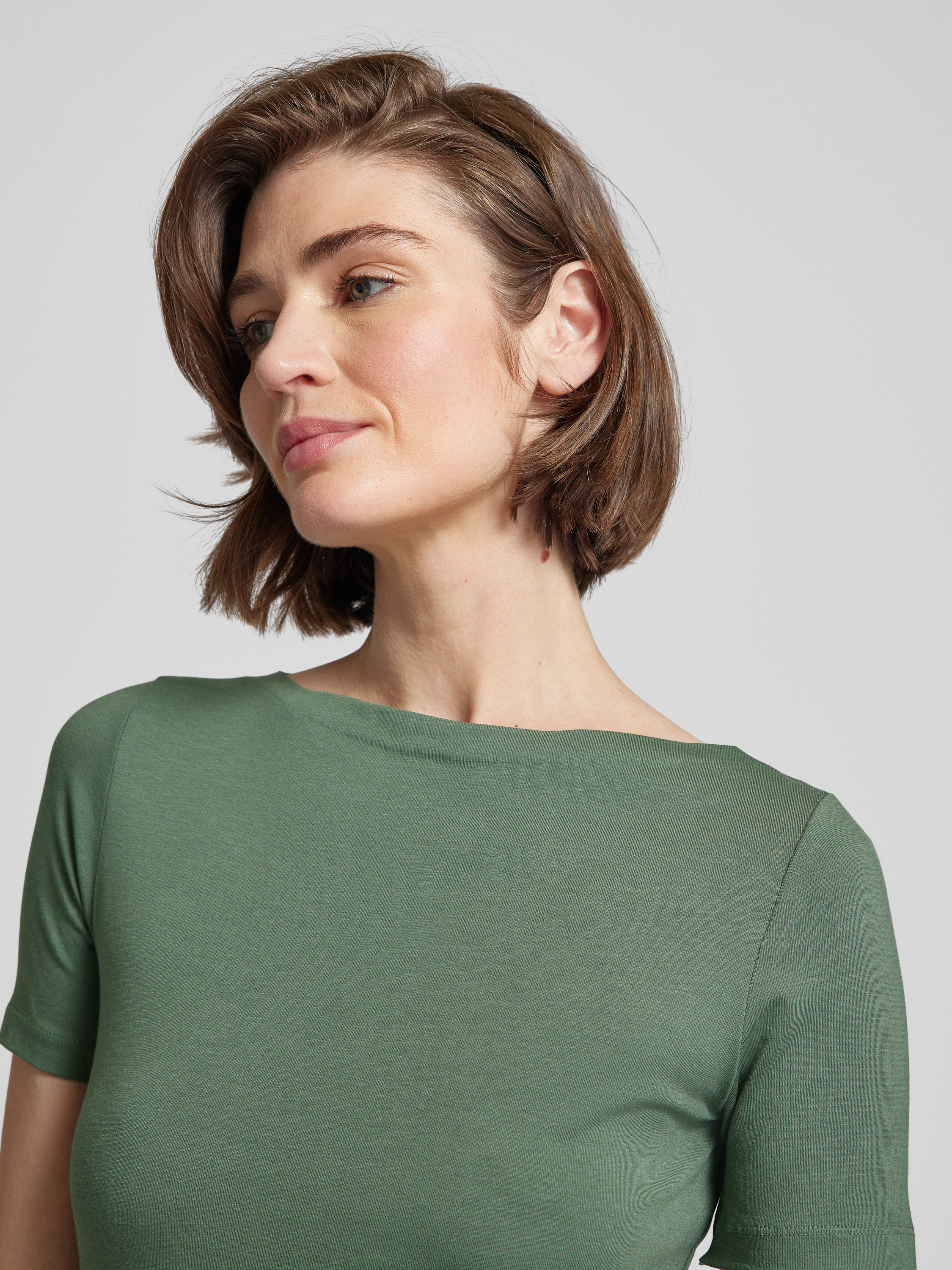 T-shirt met boothals, model 'PANDA' in olijfgroen