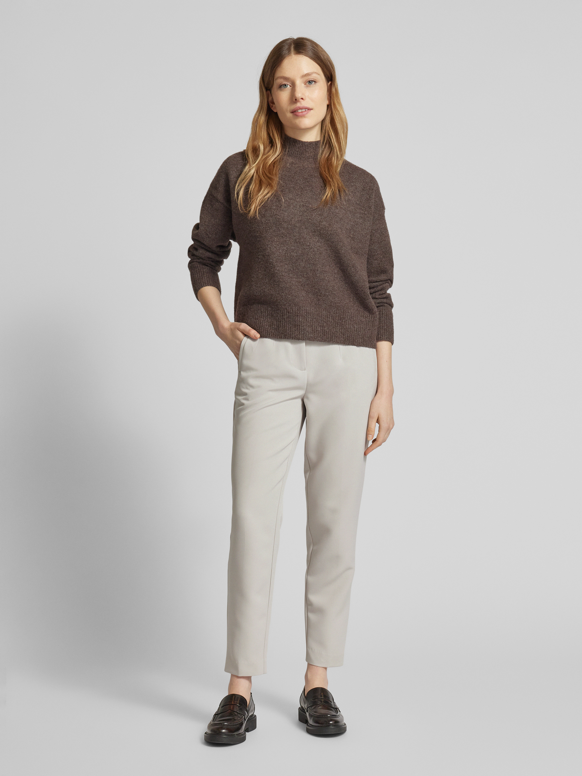 Tapered fit stoffen broek met hoge taille, model 'LINA' in offwhite