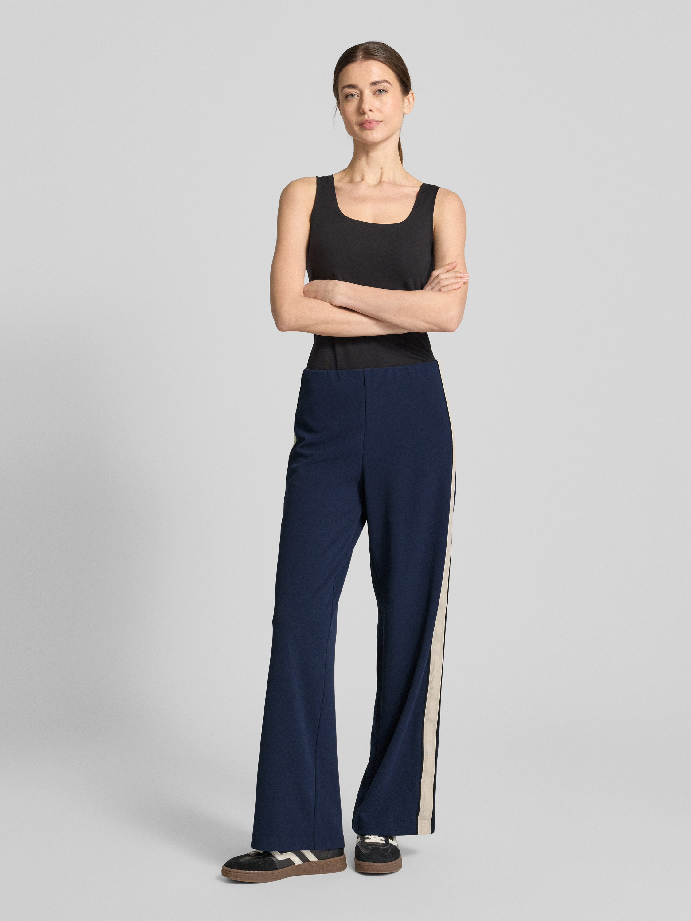 Wide leg sweatpants met contraststrepen, model 'BERLIN' in marineblauw gemêleerd
