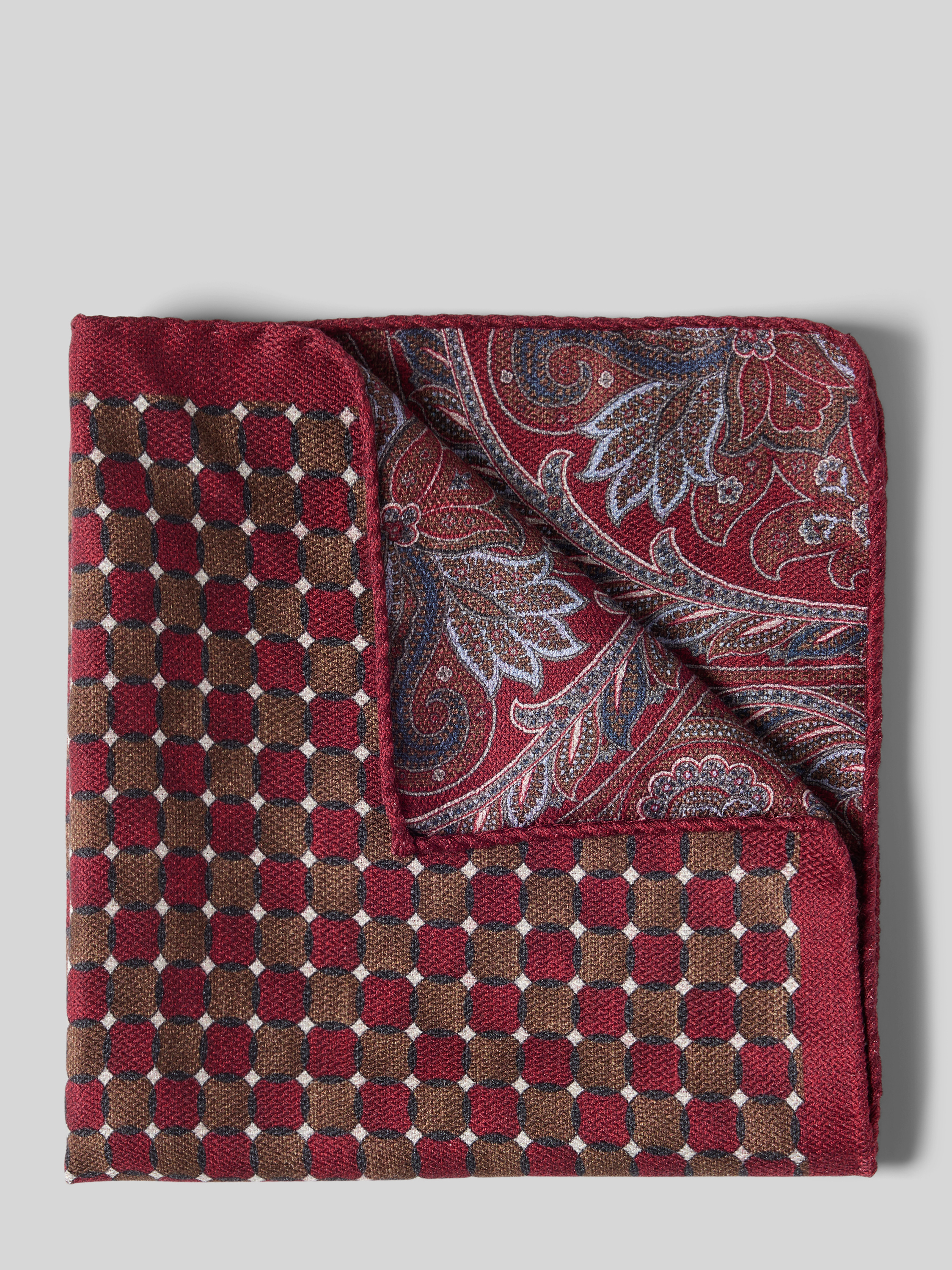 Pochet van zijde met omzoomde boorden in bordeaux