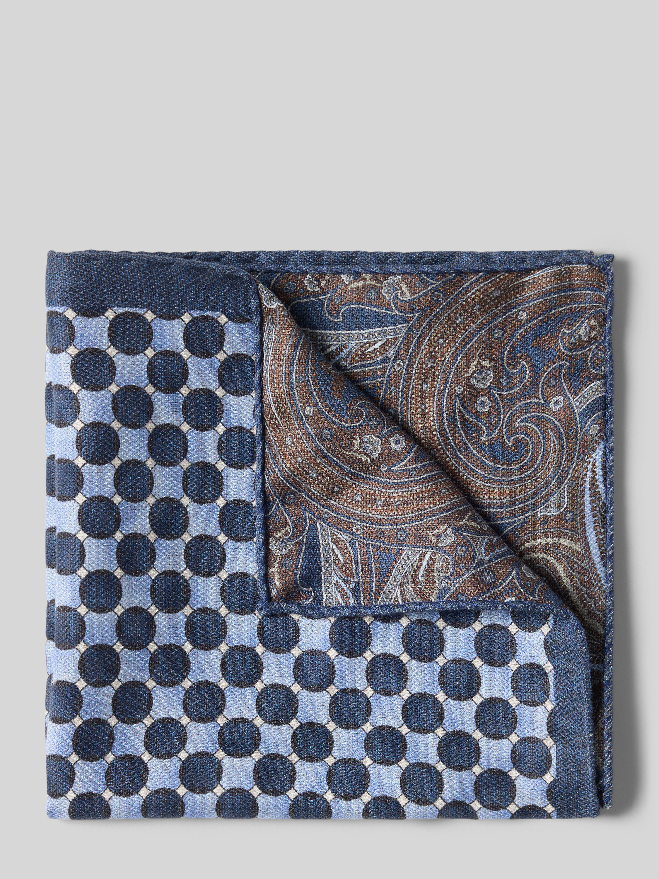 Pochet van zijde met omzoomde boorden in donkerblauw