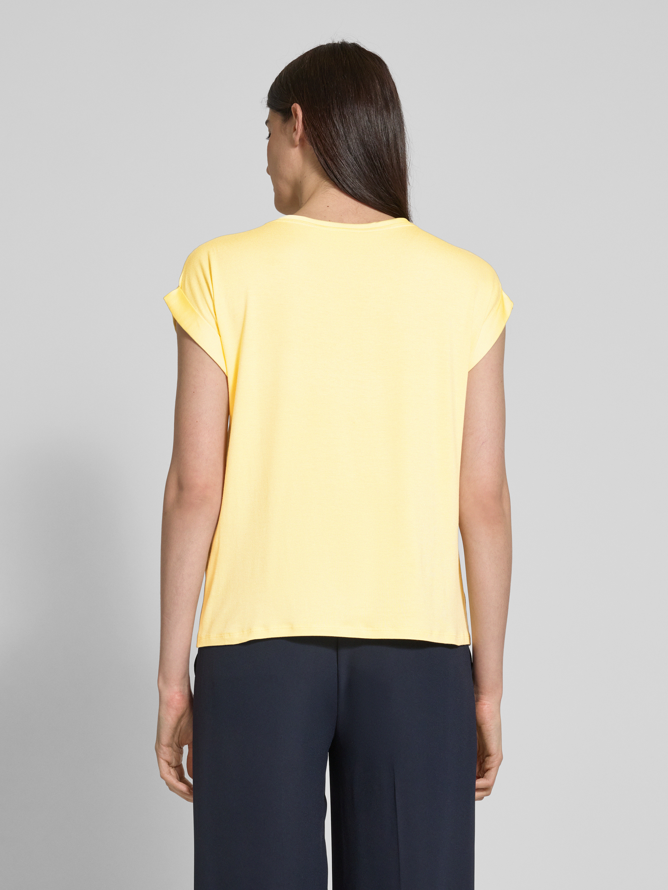 Blouseshirt met geribde ronde hals, model 'ELLETTE' in geel