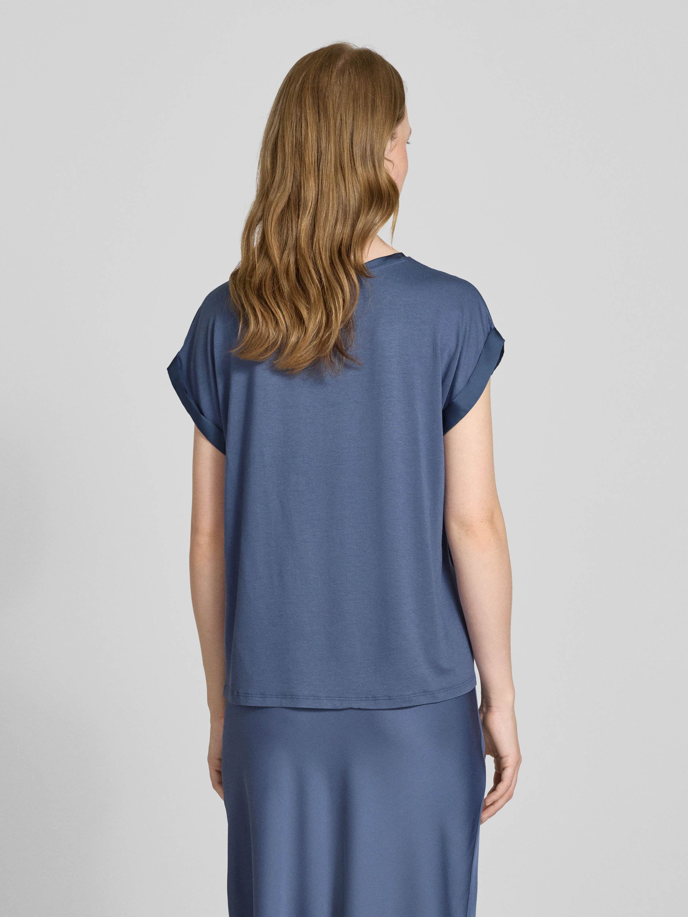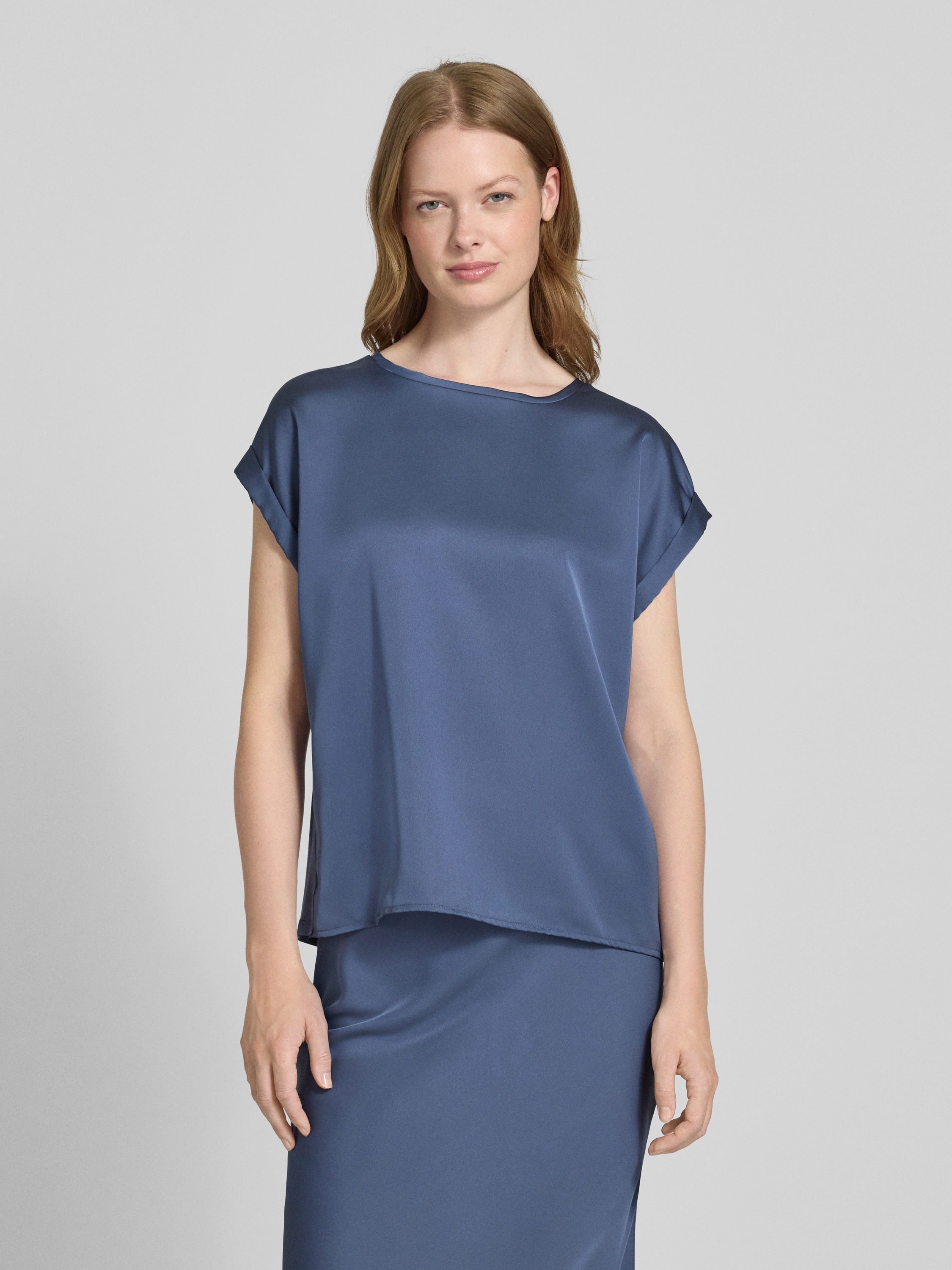 Blouseshirt van satijn met ronde hals, model 'ELLETTE' in rookblauw