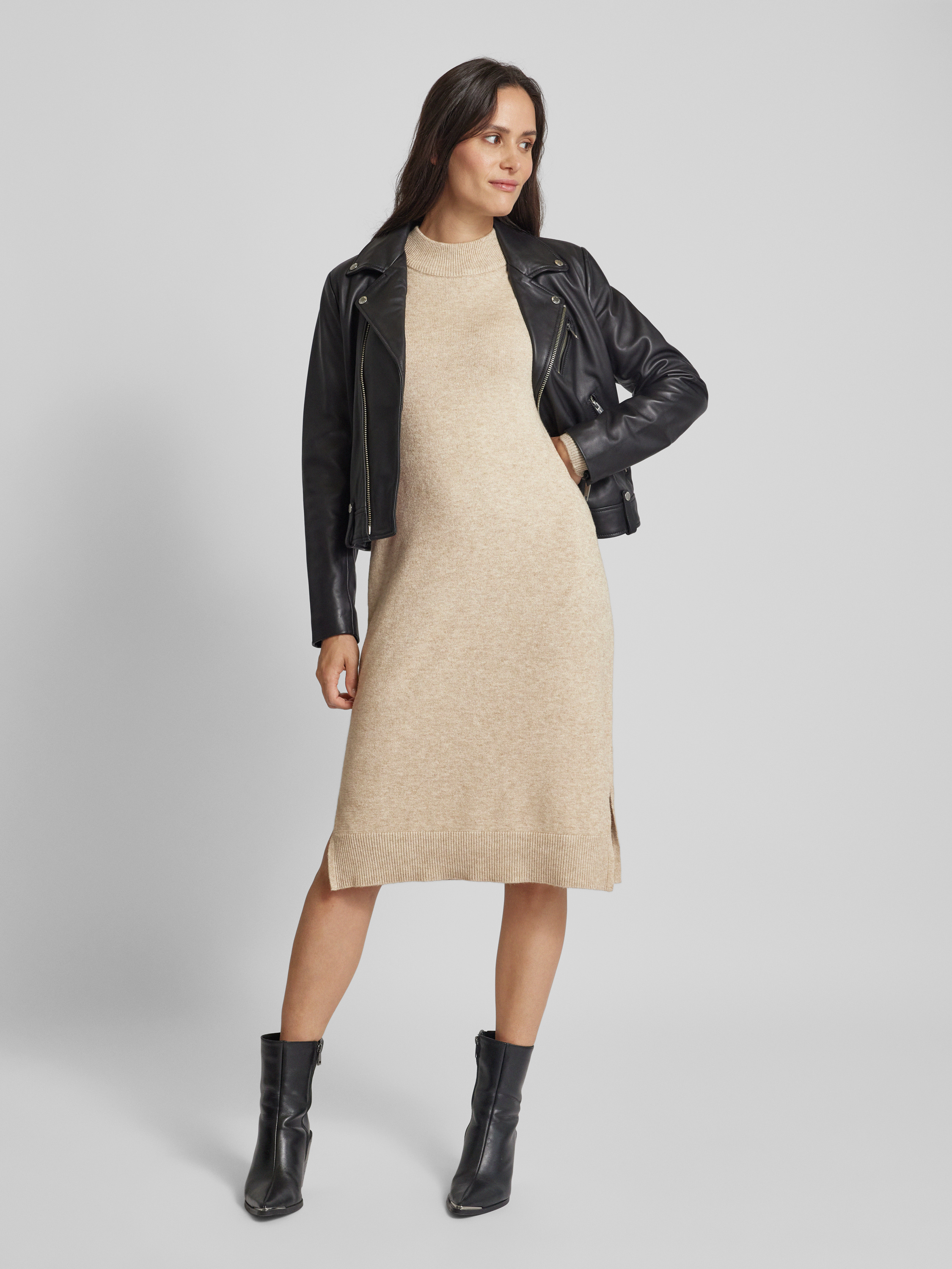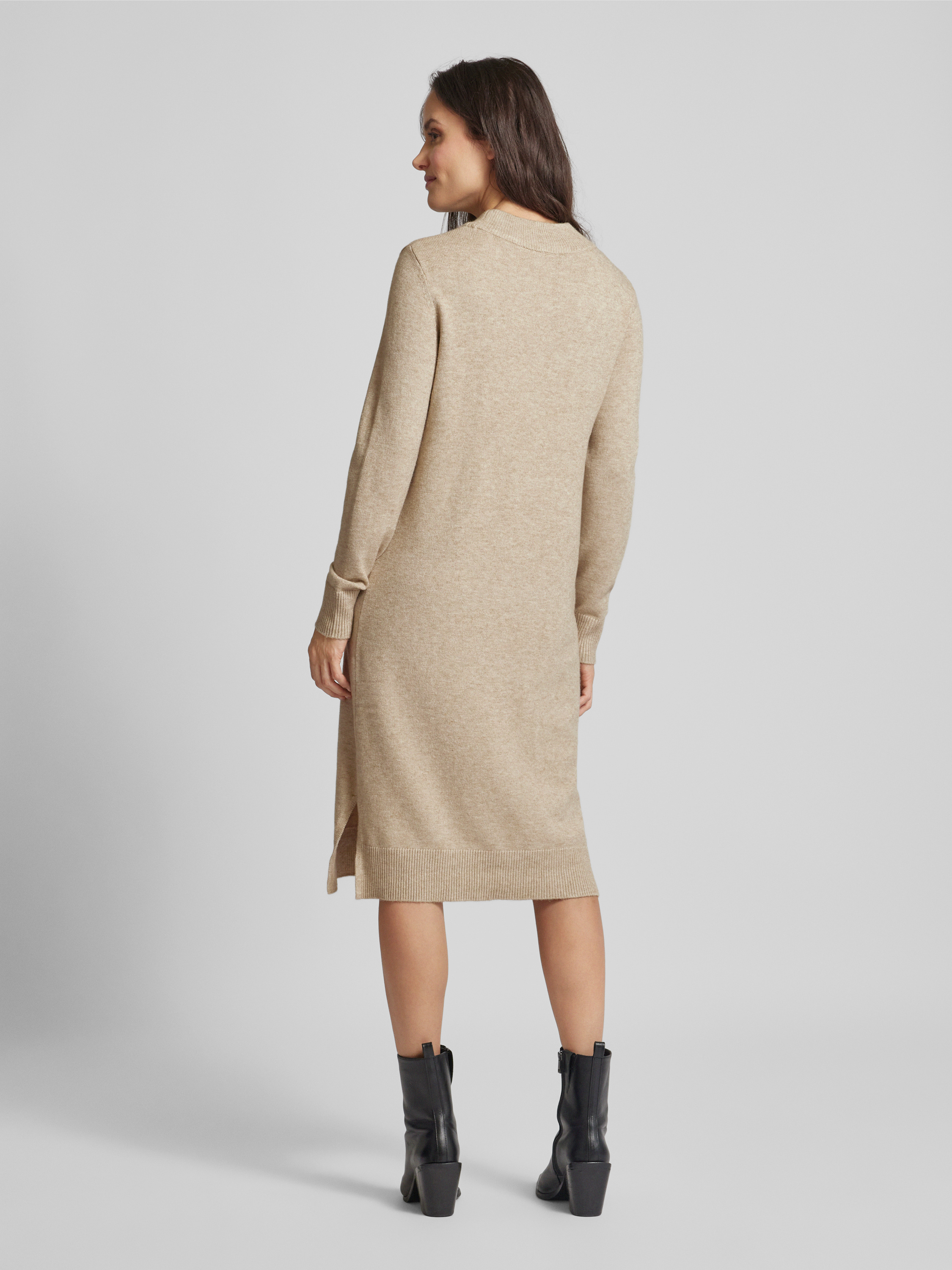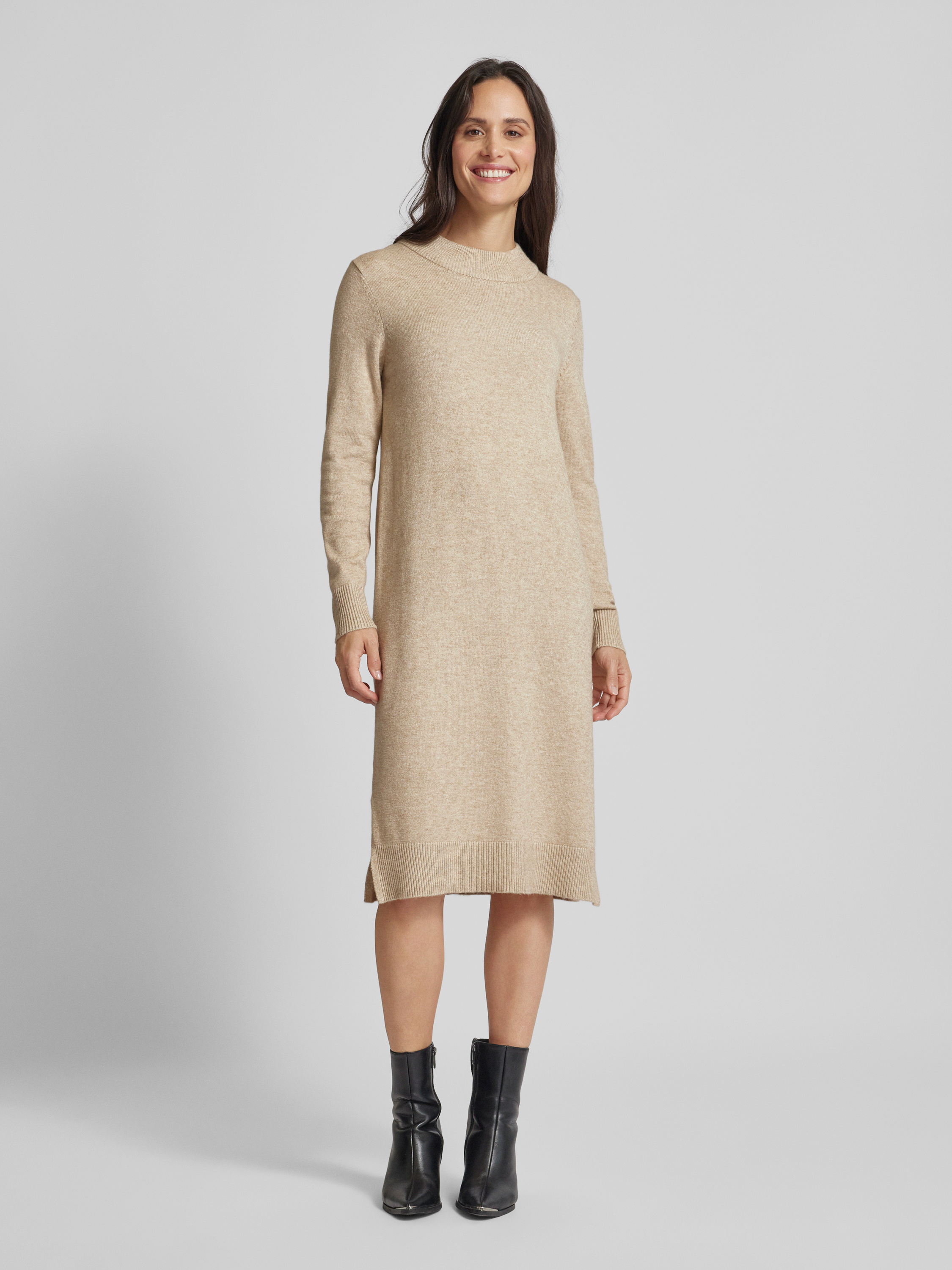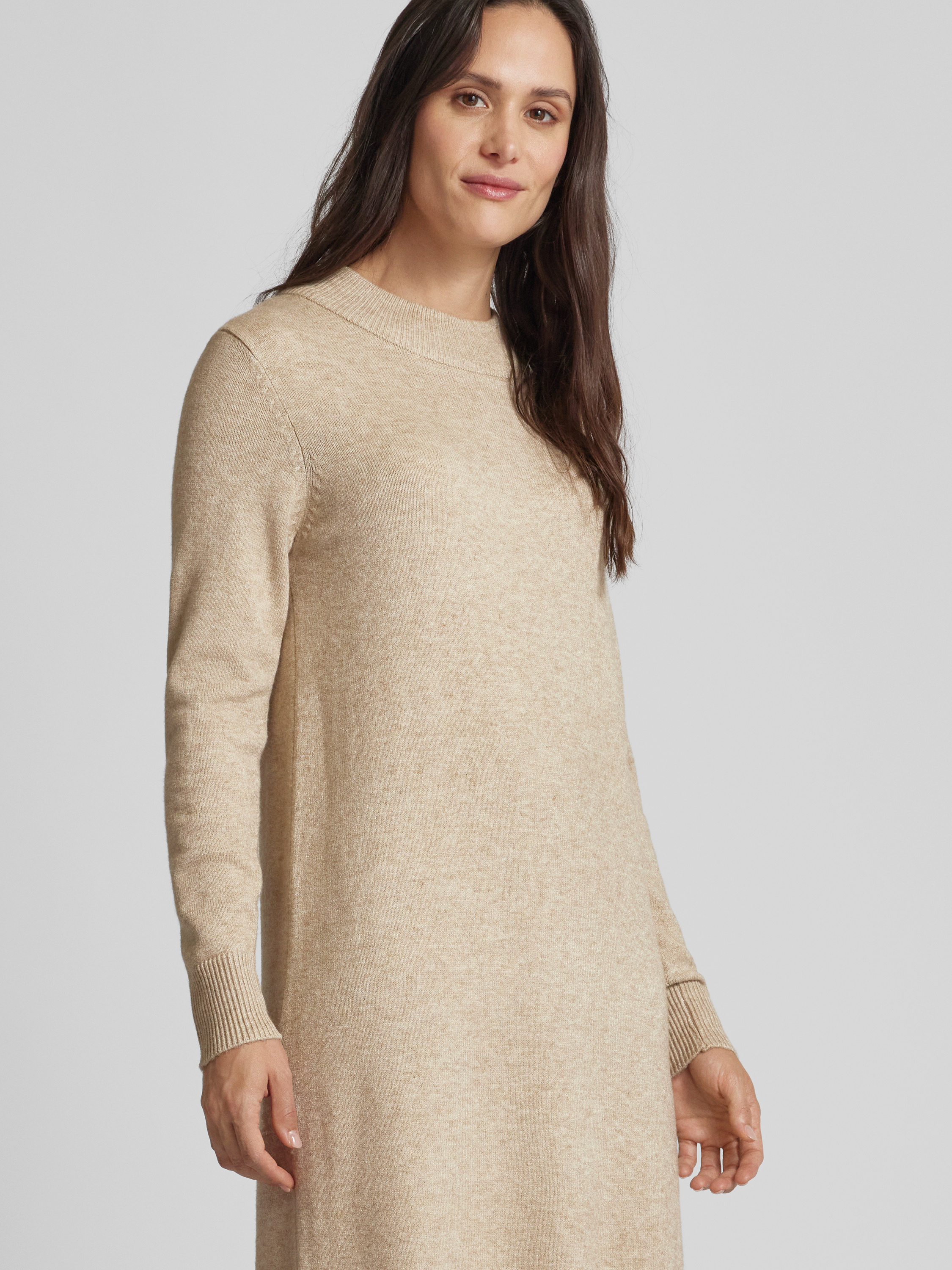 Gebreide jurk met ronde hals, model 'Viril' in beige