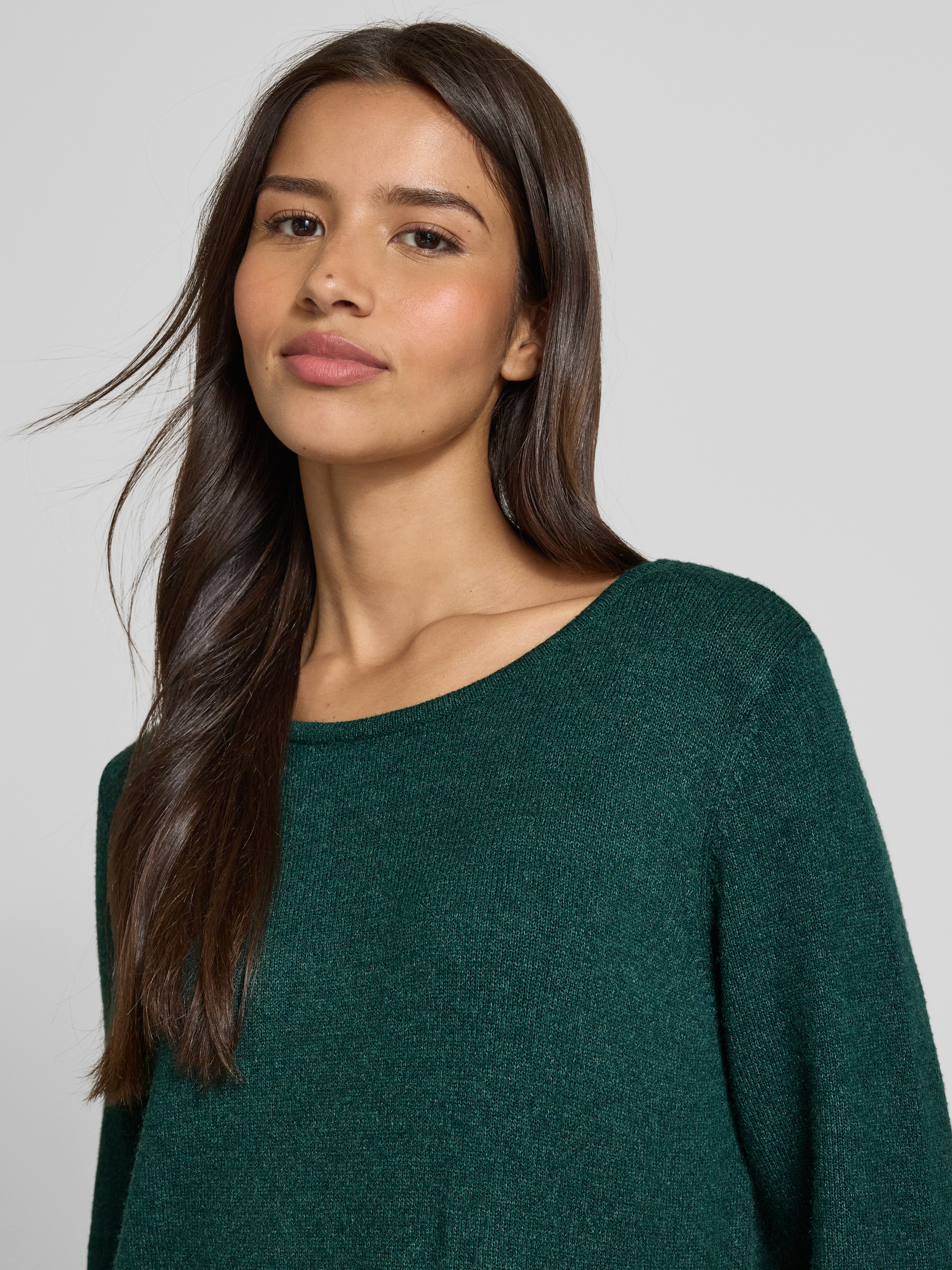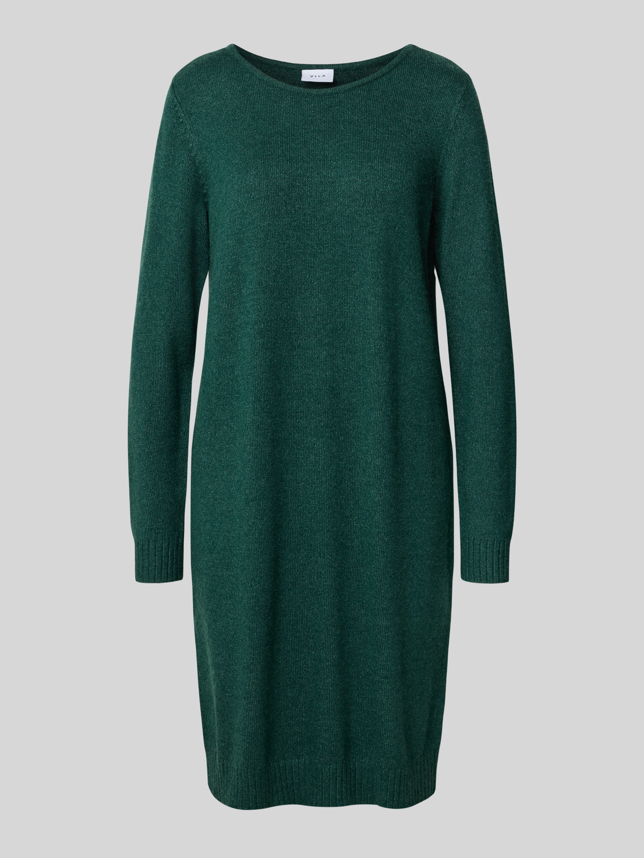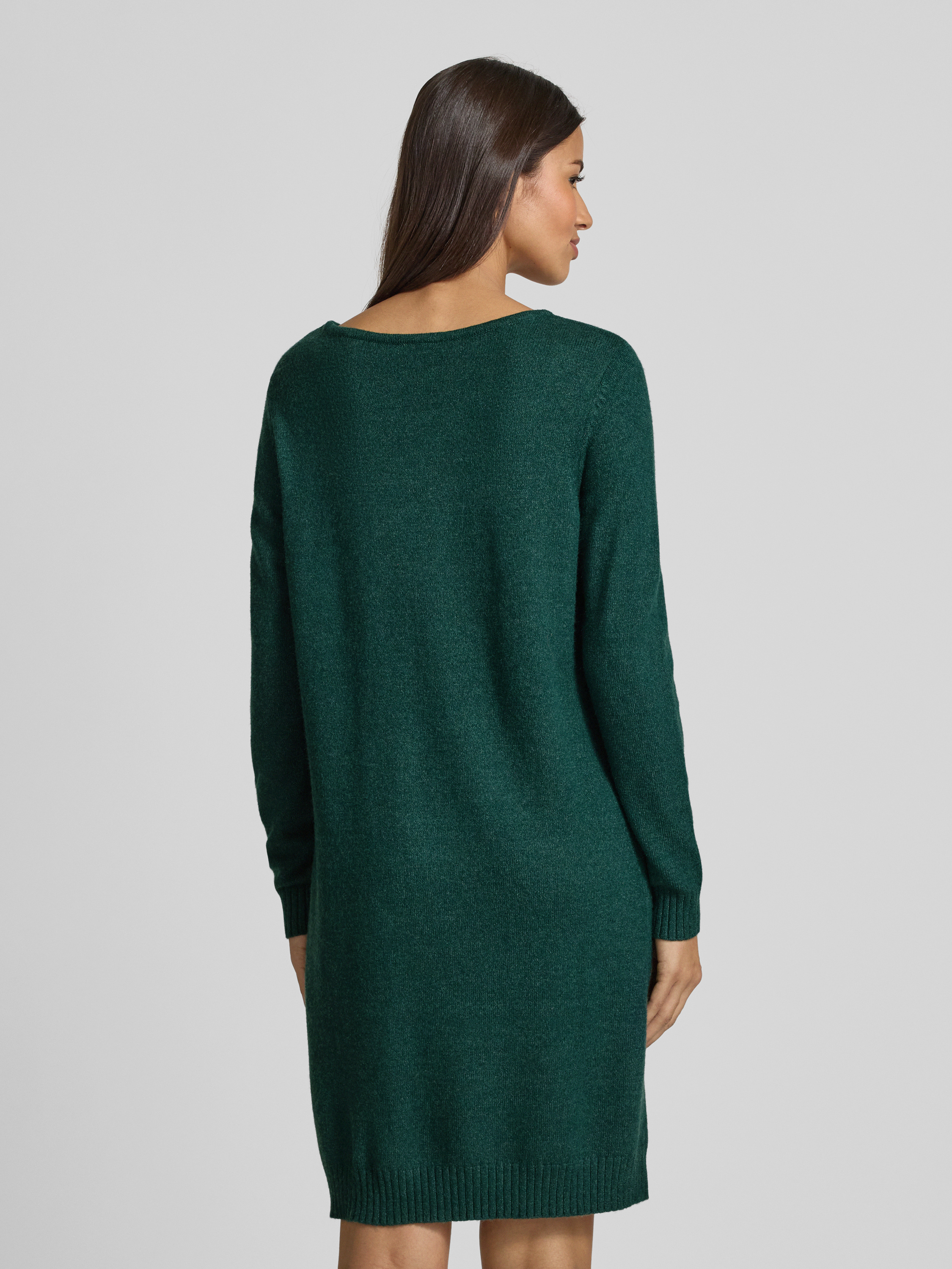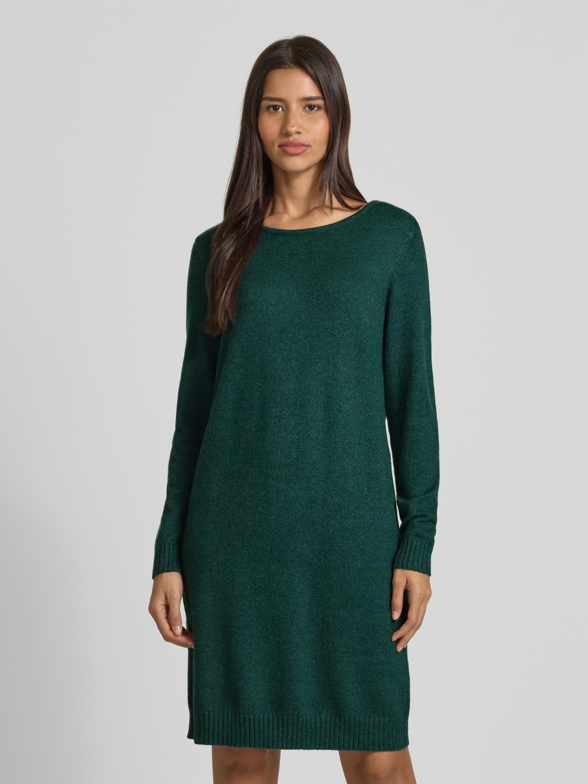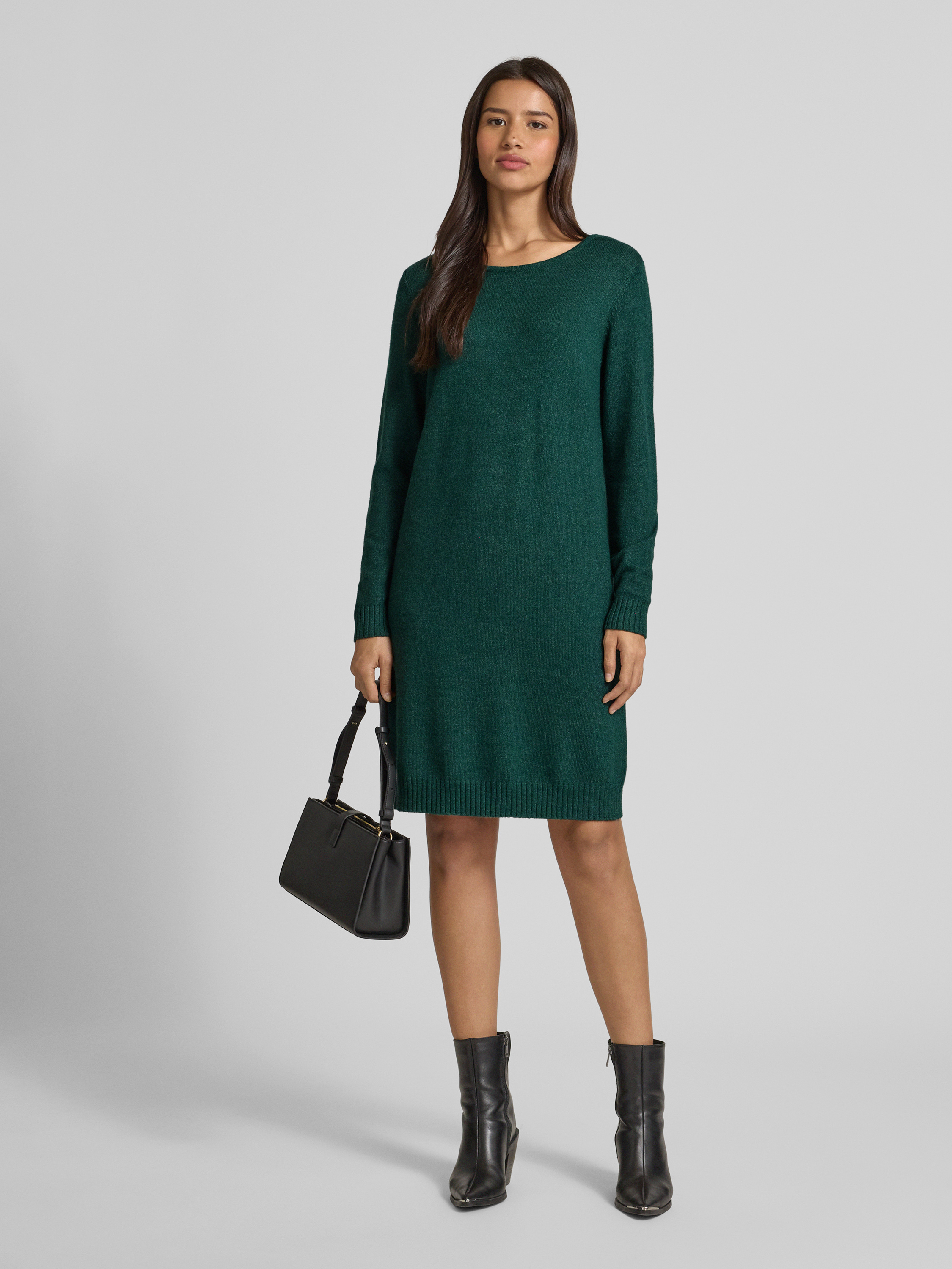 Knielange jurk met ronde hals, model 'RIL' in flessengroen