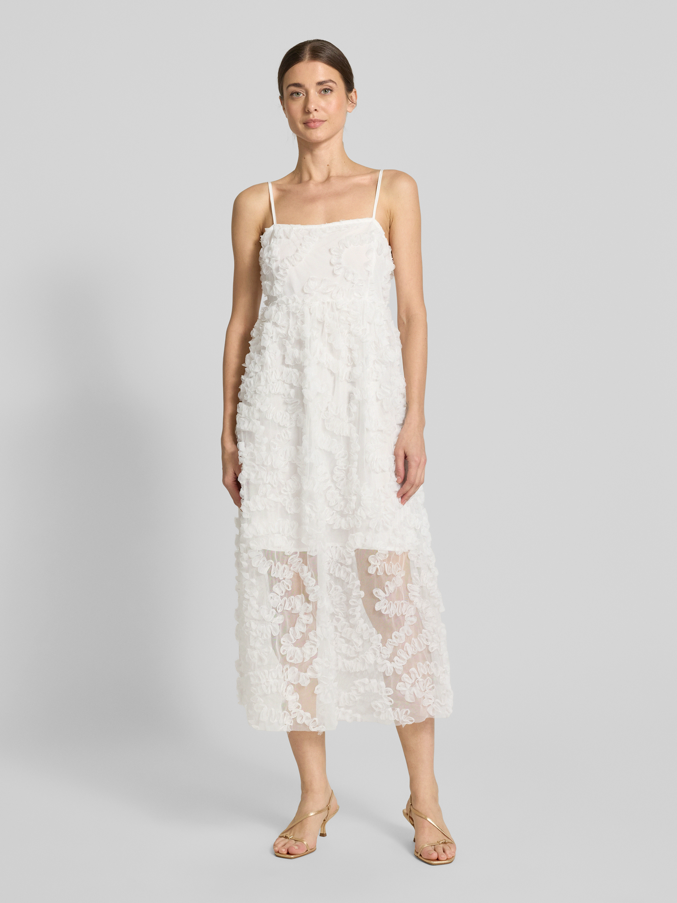 Knielange jurk met structuurmotief, model 'LEONORA' in offwhite