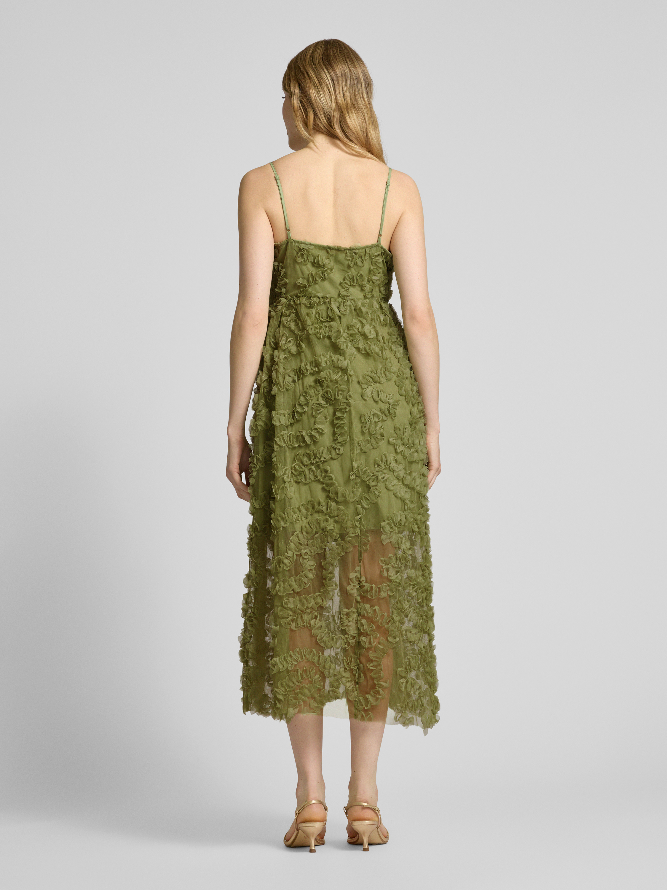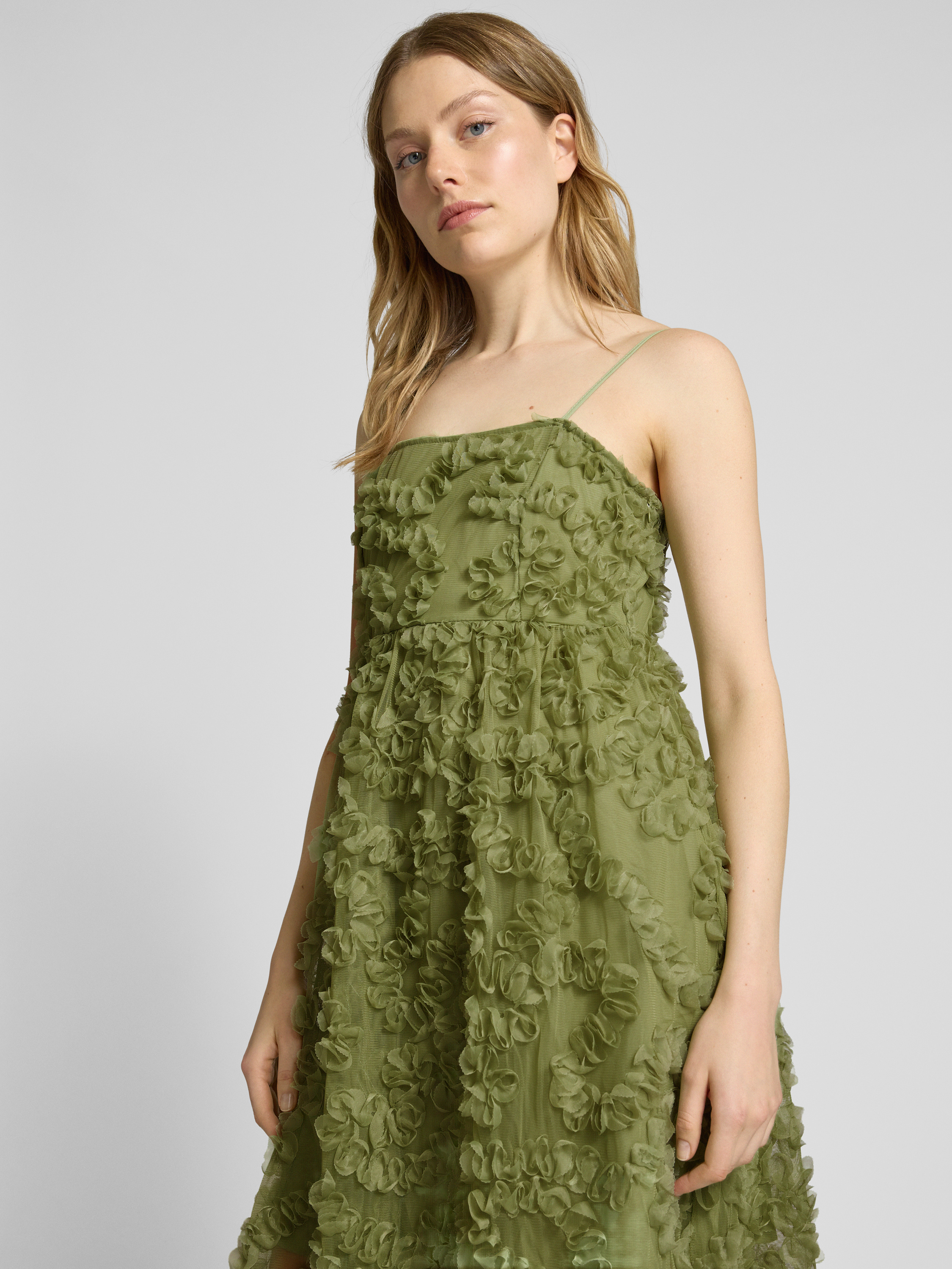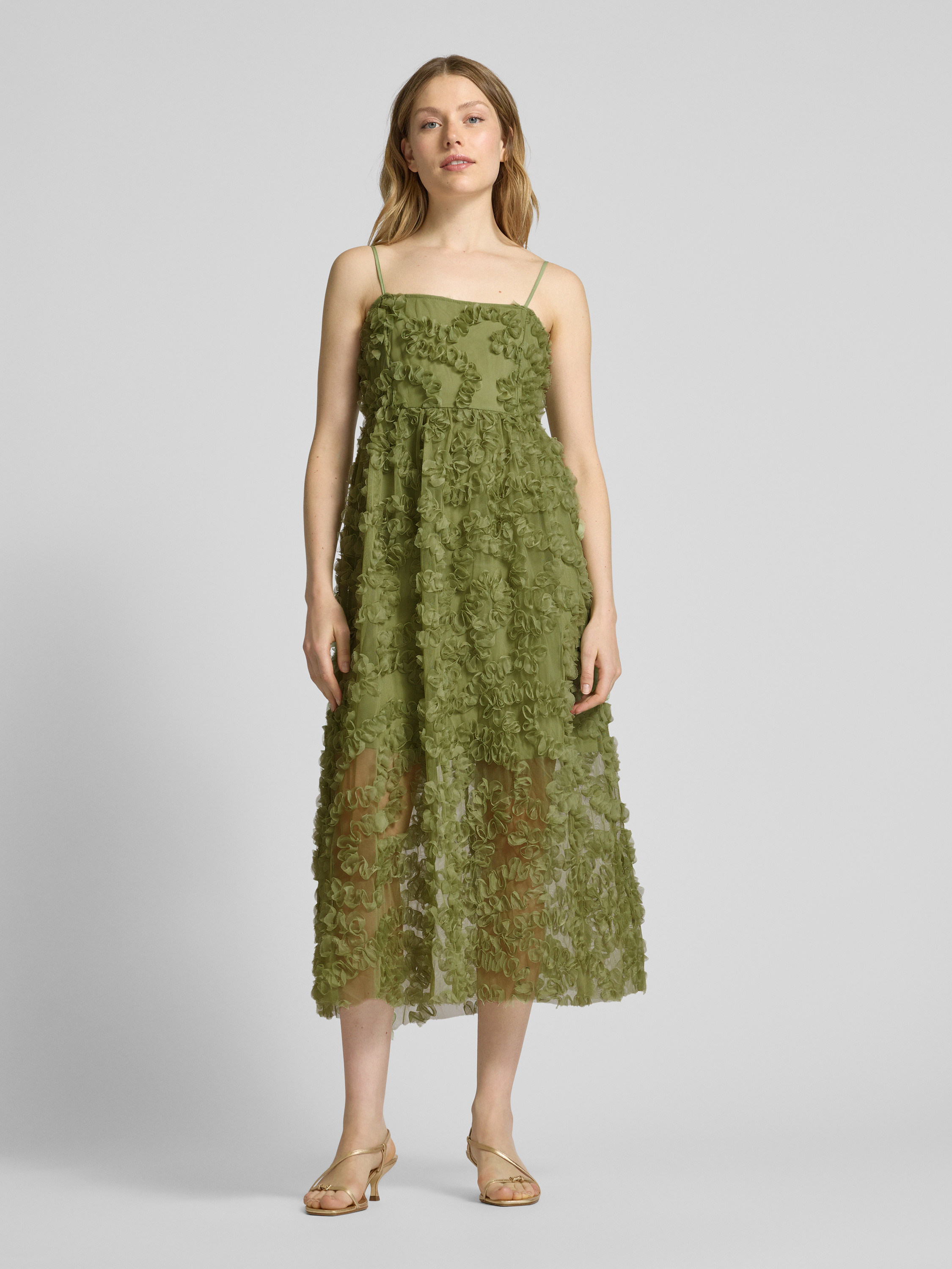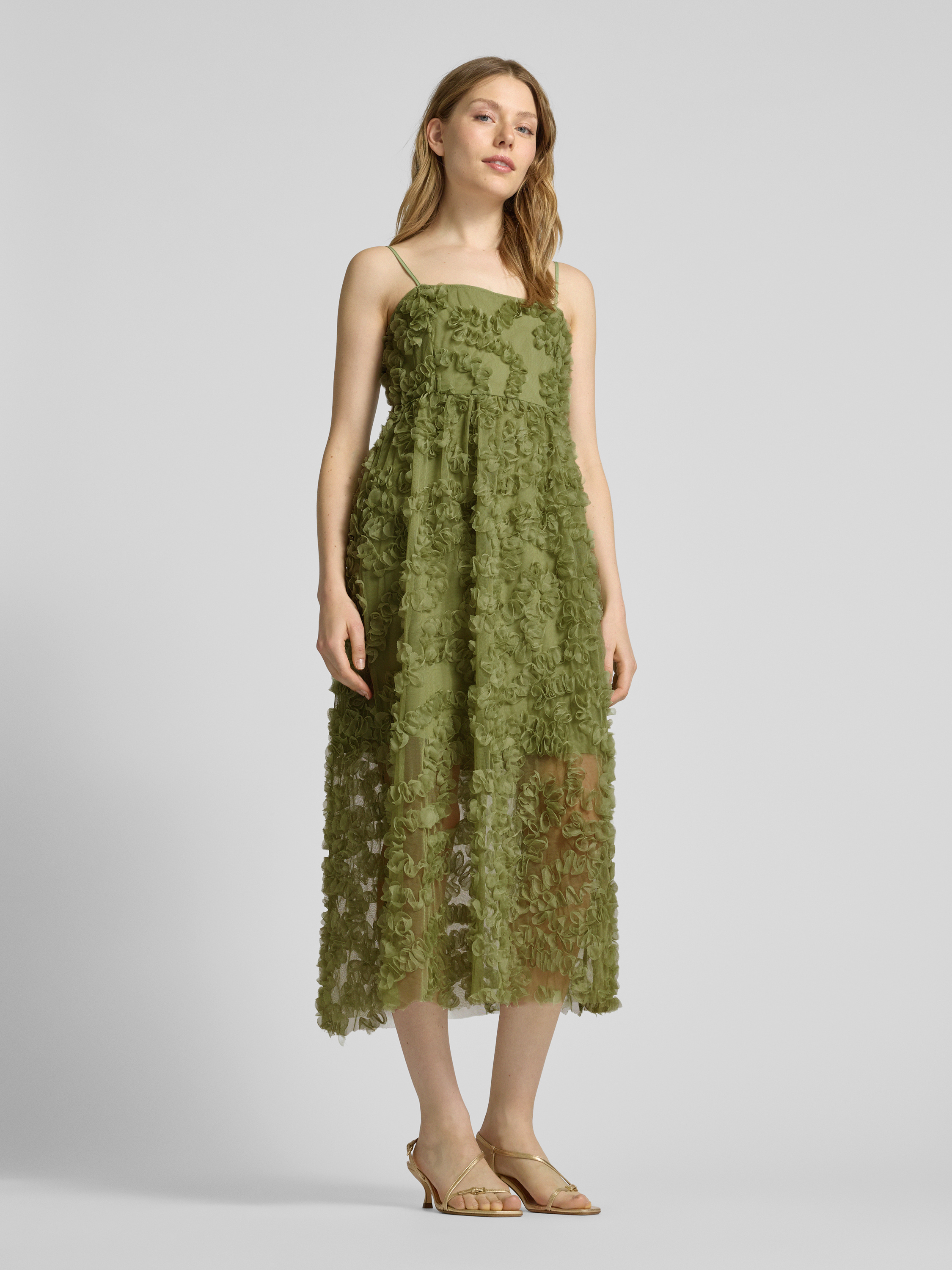 Knielange jurk met structuurmotief, model 'LEONORA' in rietgroen