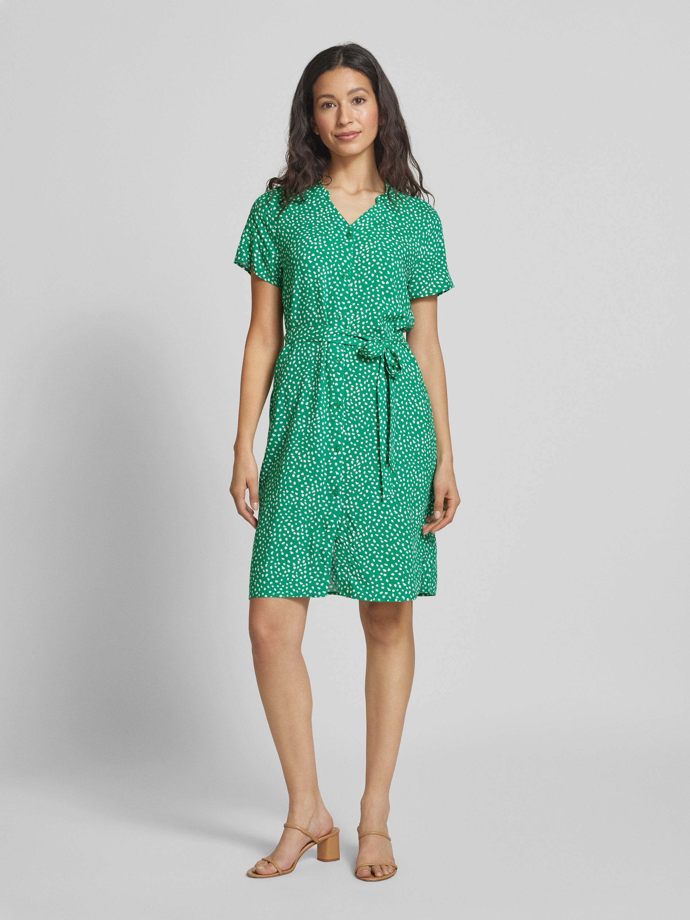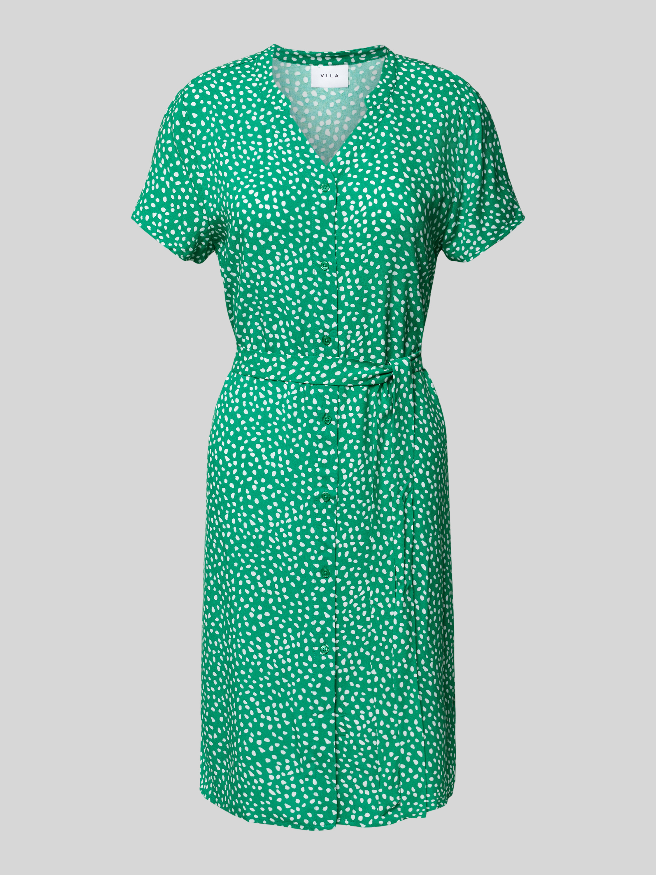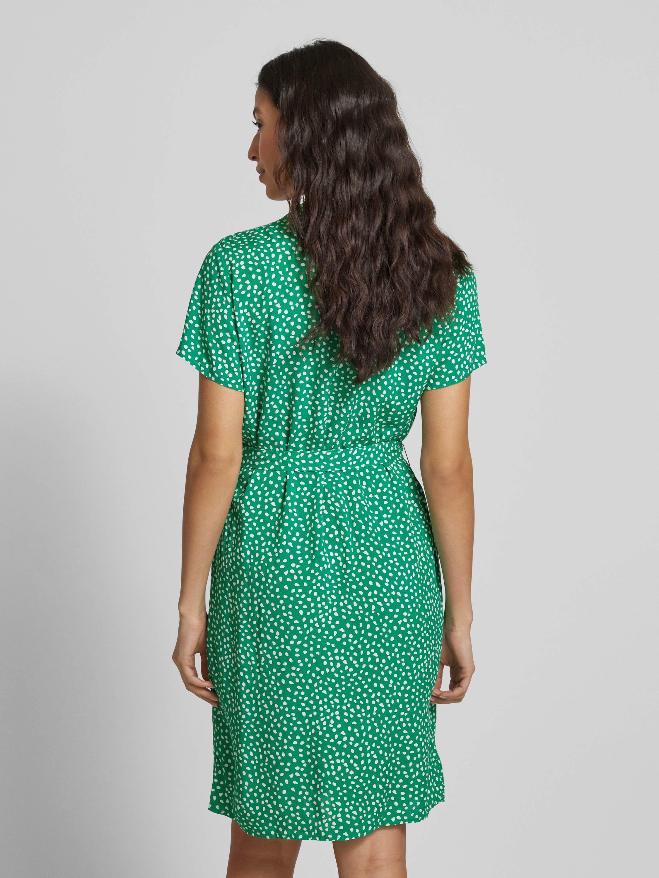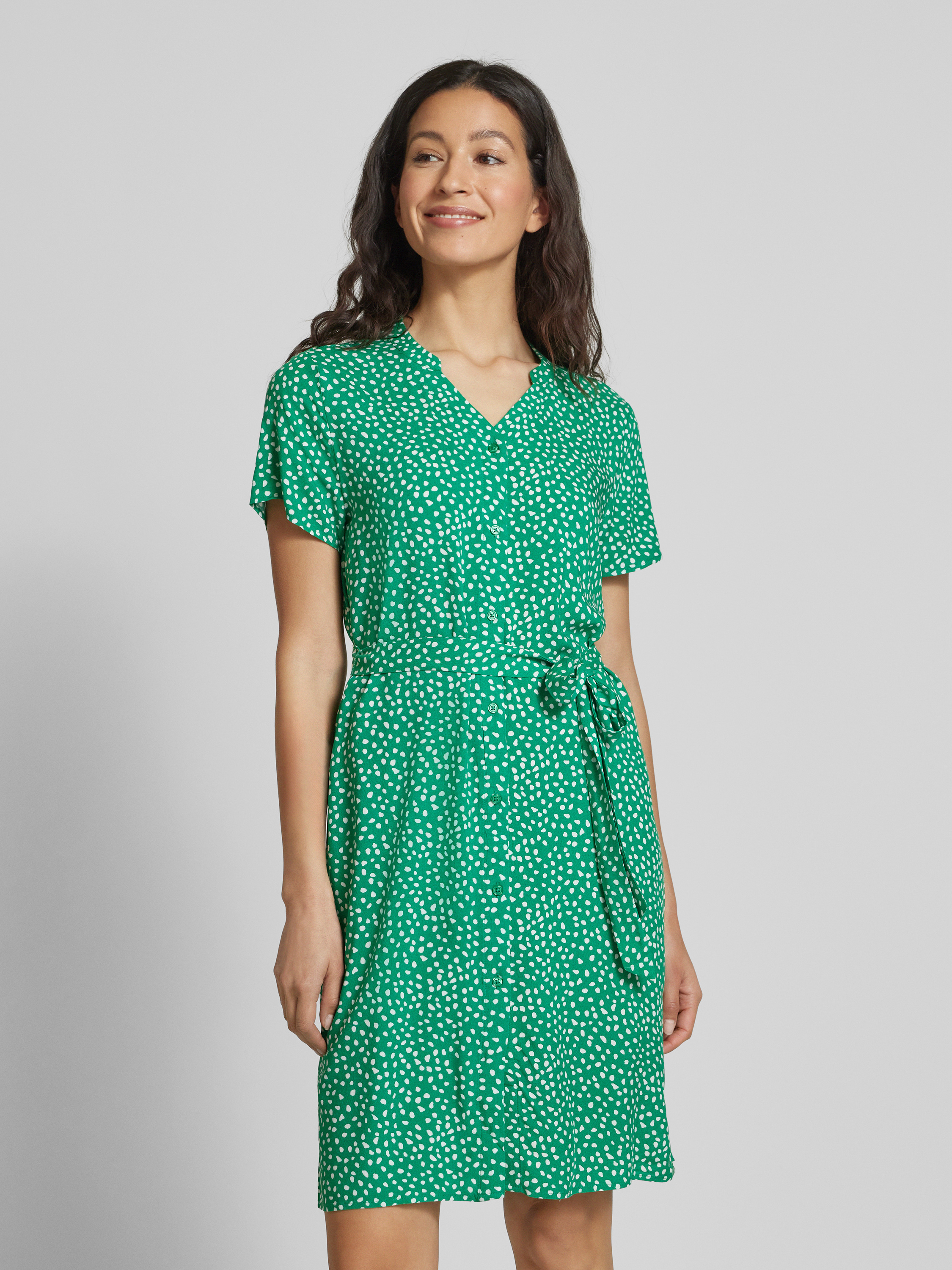 Knielange jurk van viscose met strikceintuur in groen
