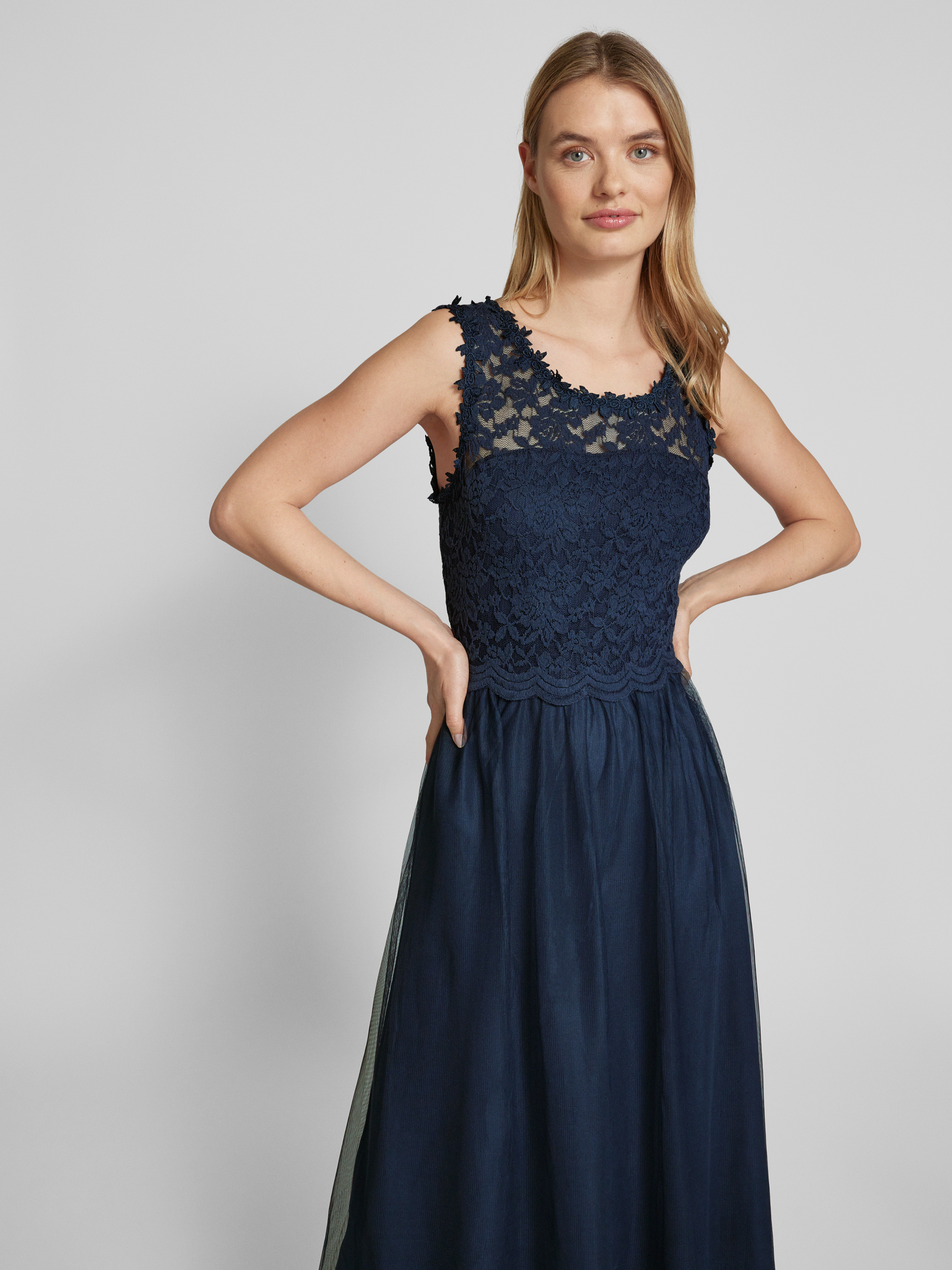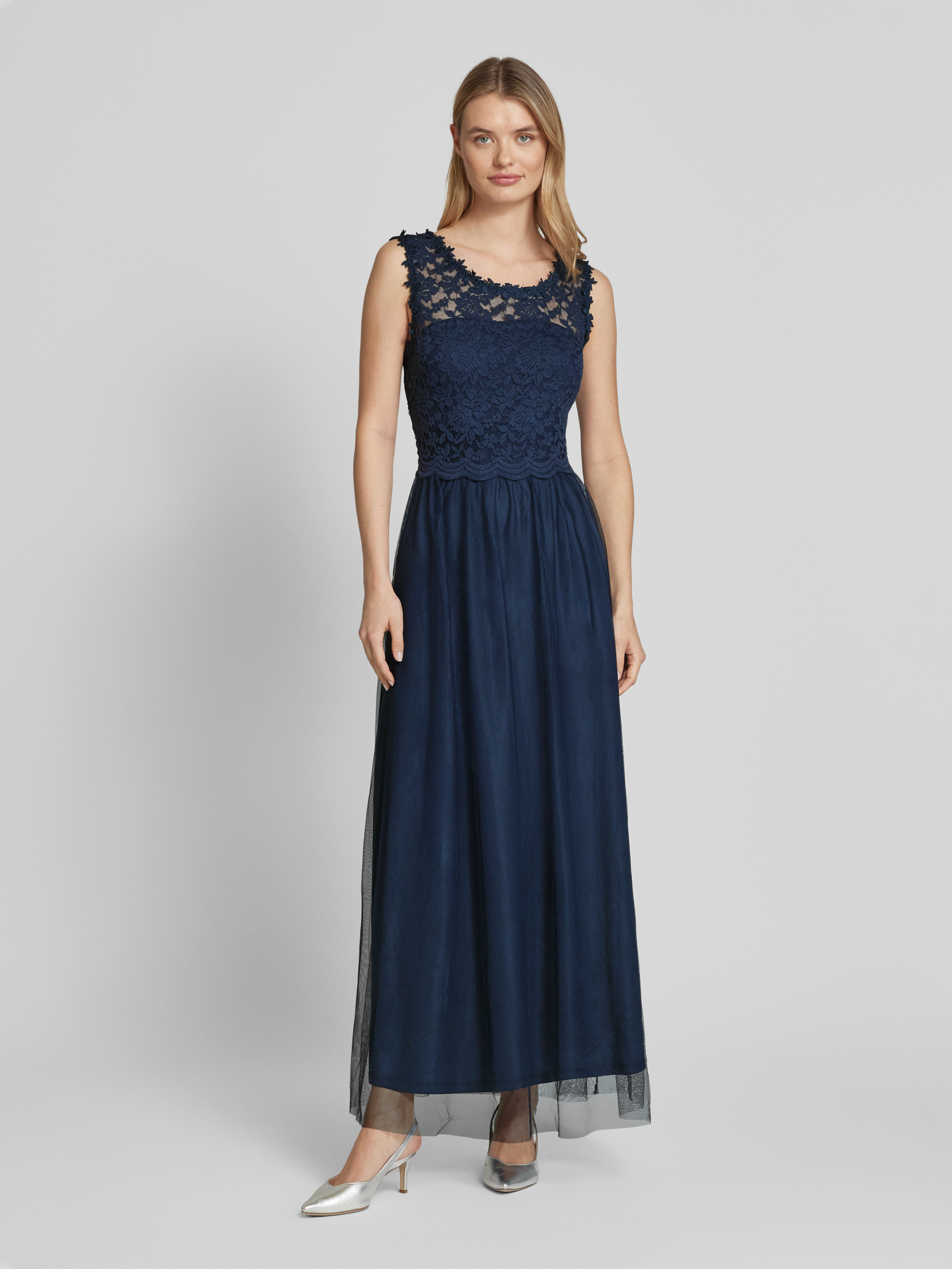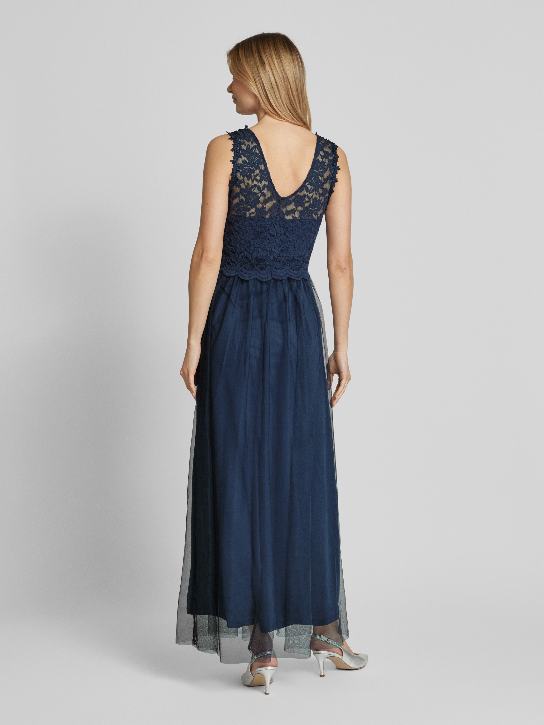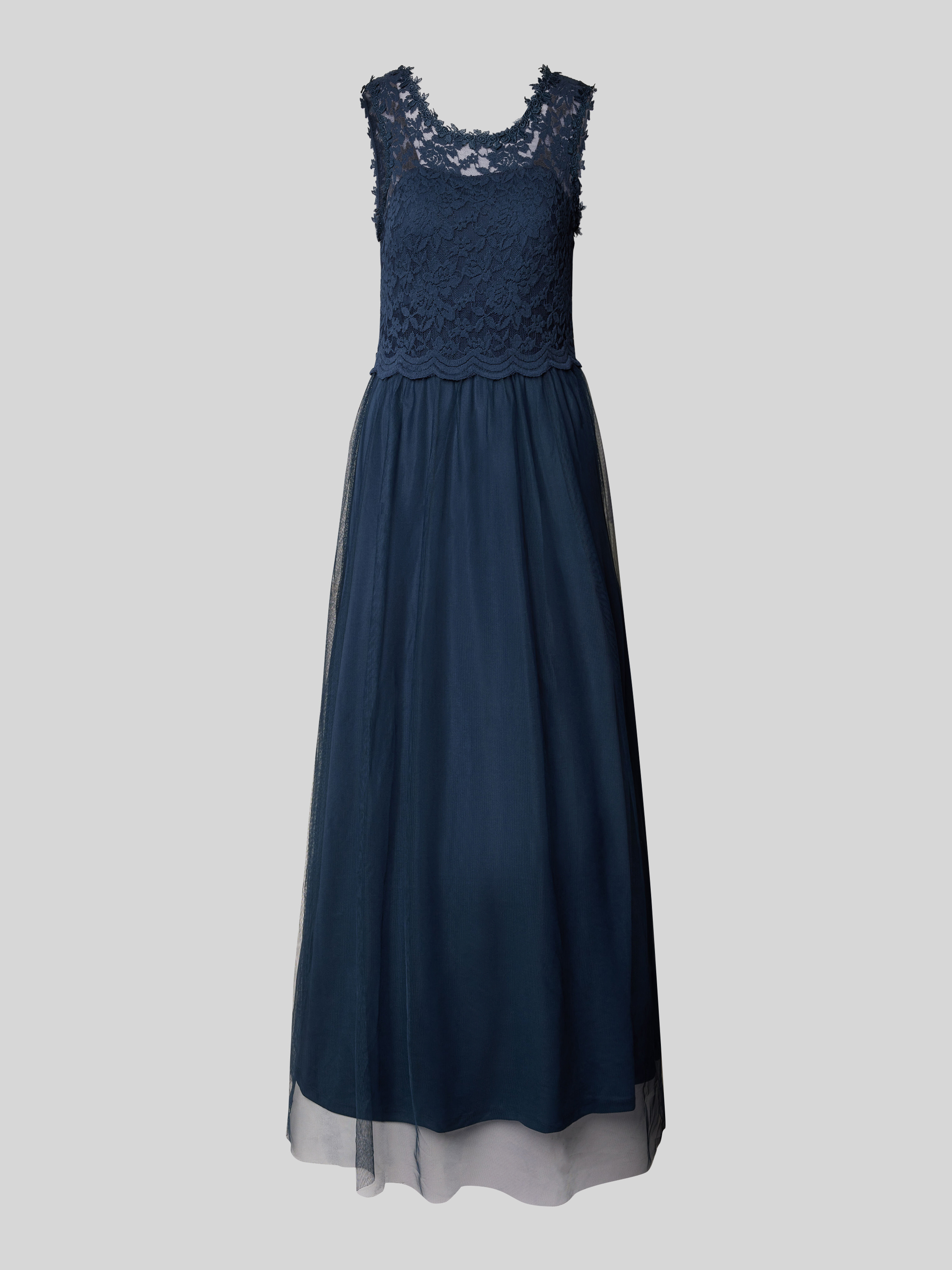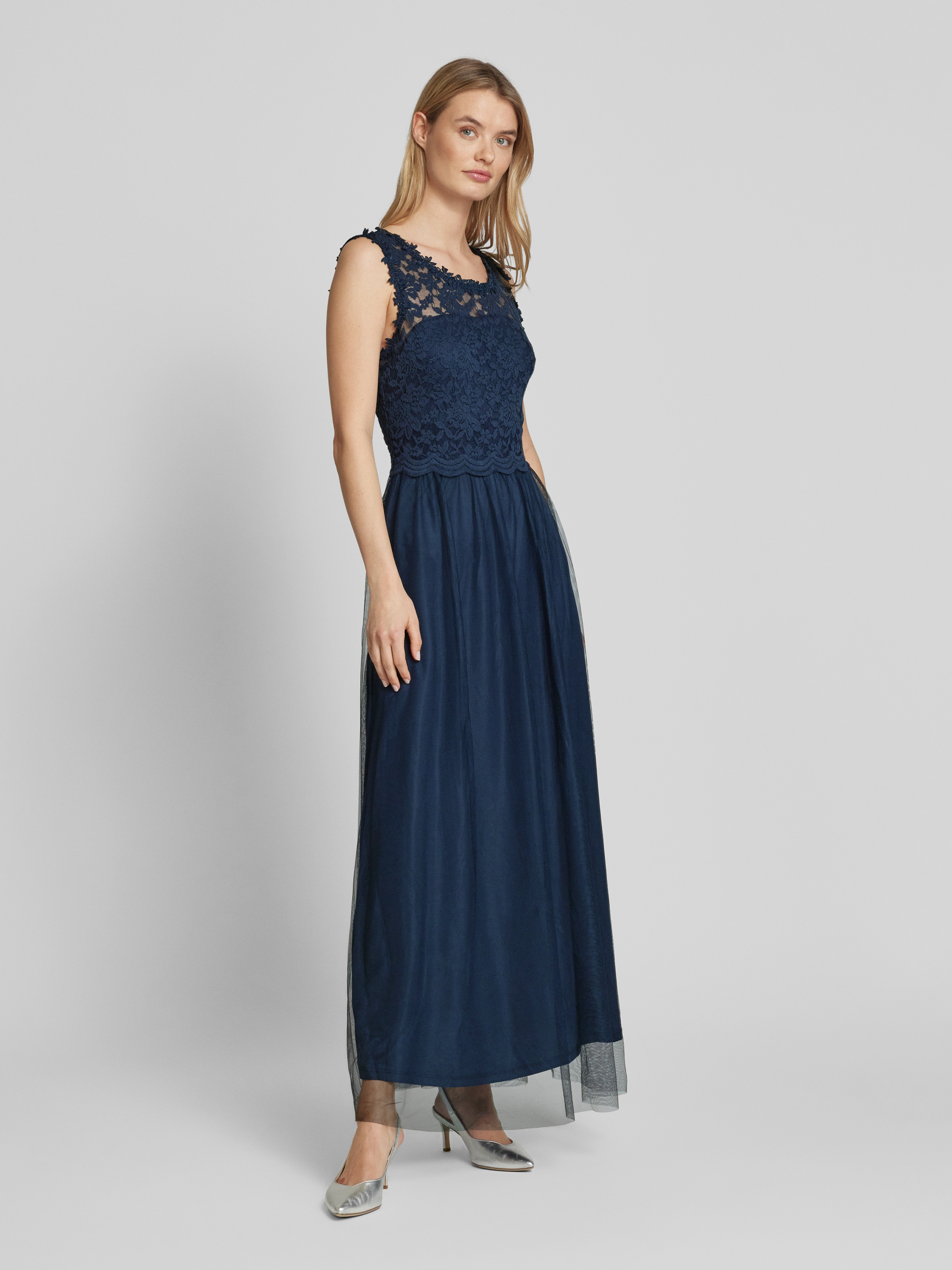 Maxi-jurk met kant, model 'LYNNEA' in marineblauw
