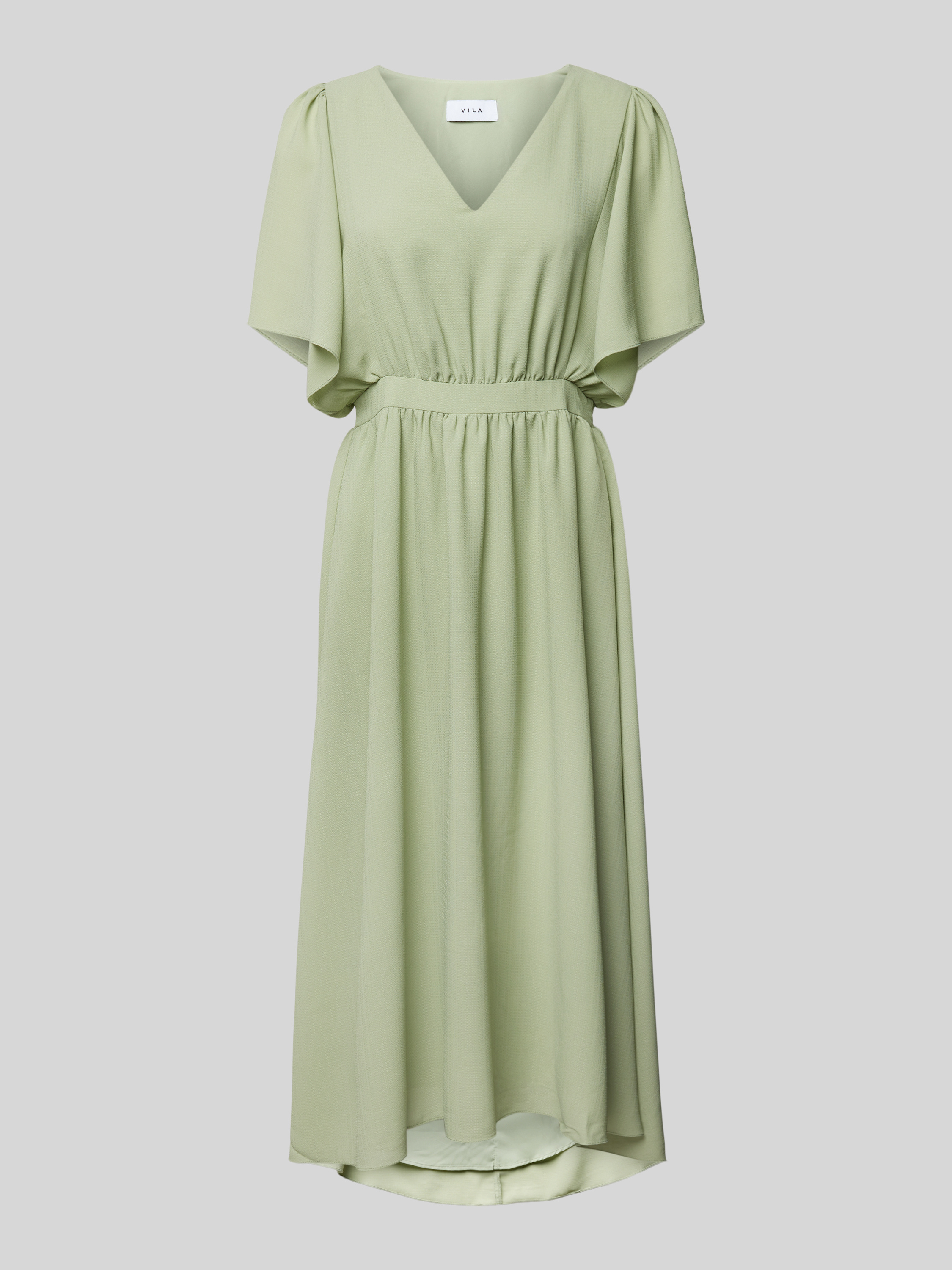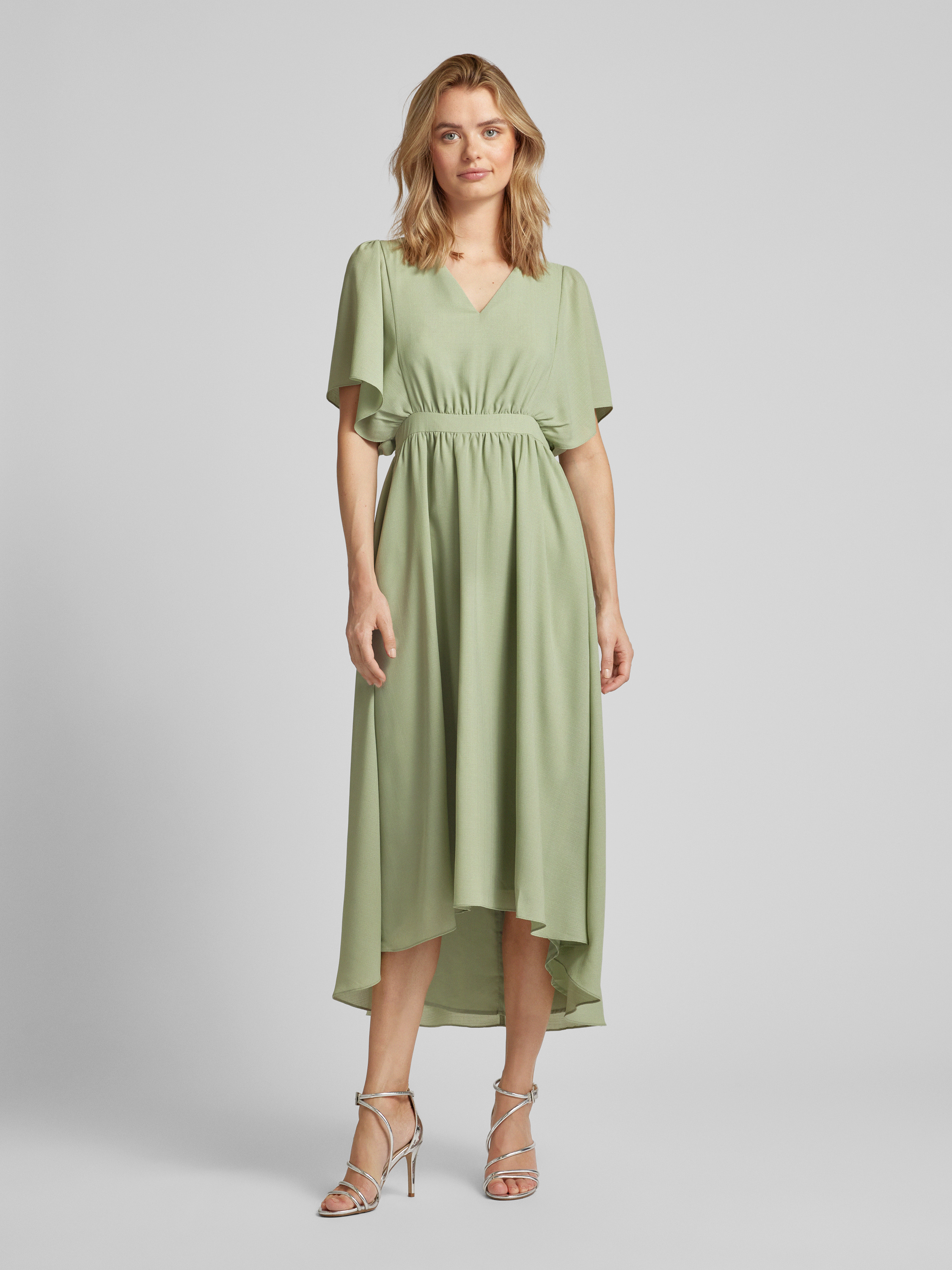 Maxi-jurk met V-hals, model 'MIRAGE' in rietgroen