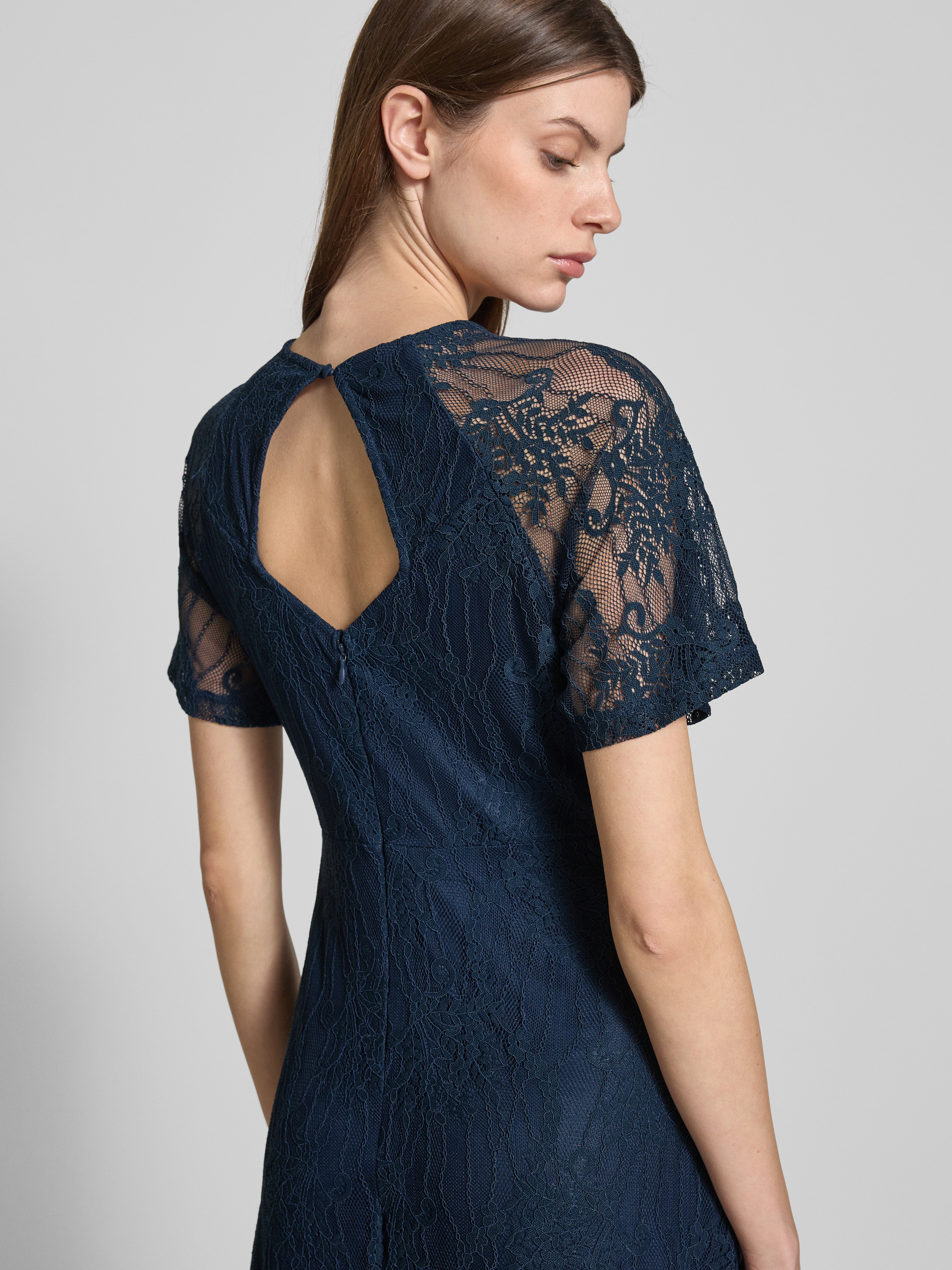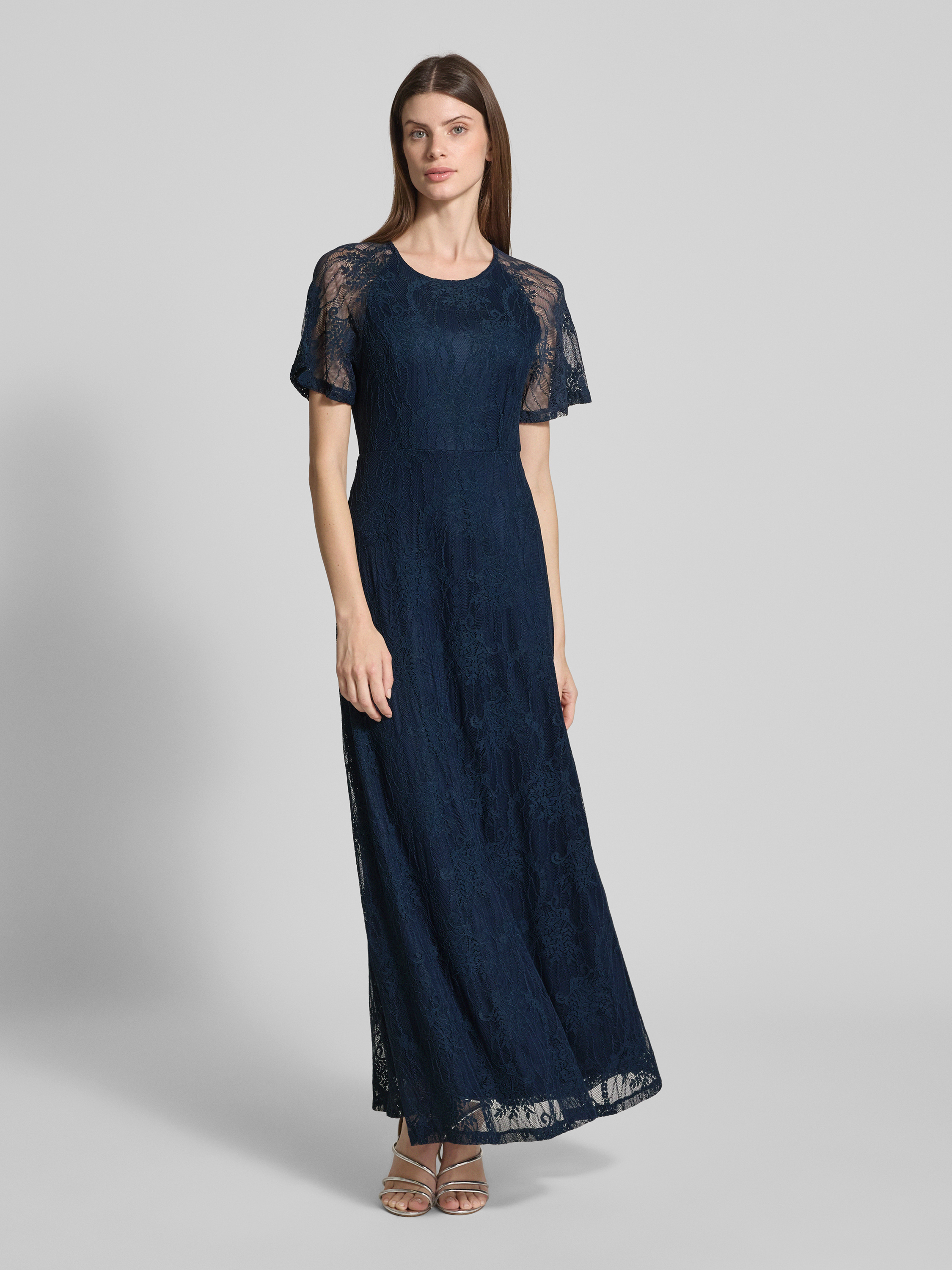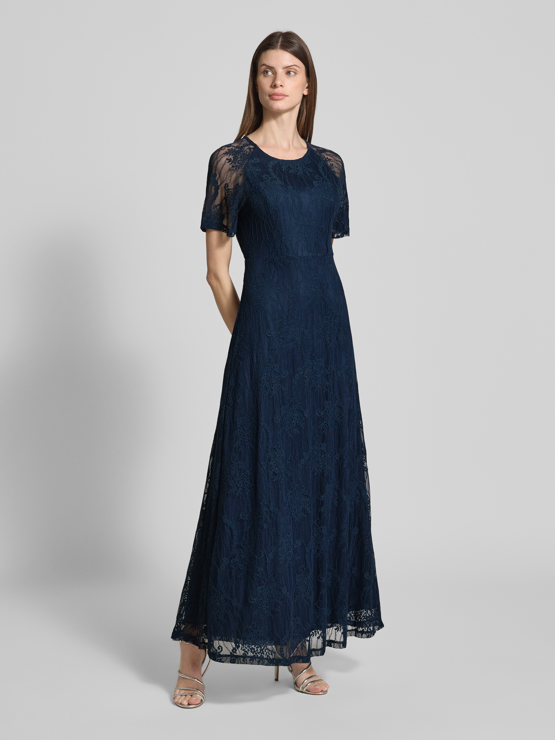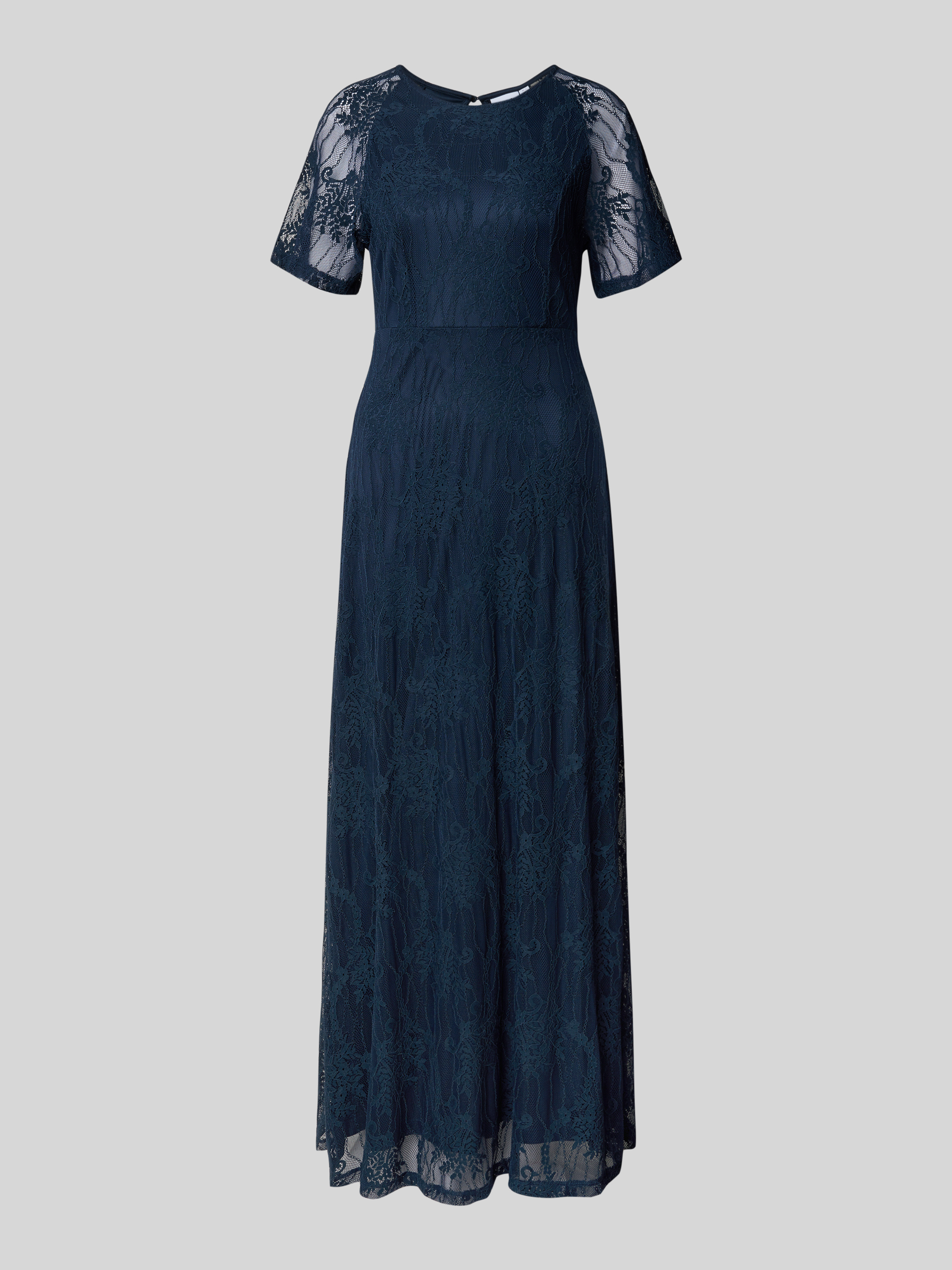 Maxi-jurk van kant met ronde hals in marineblauw