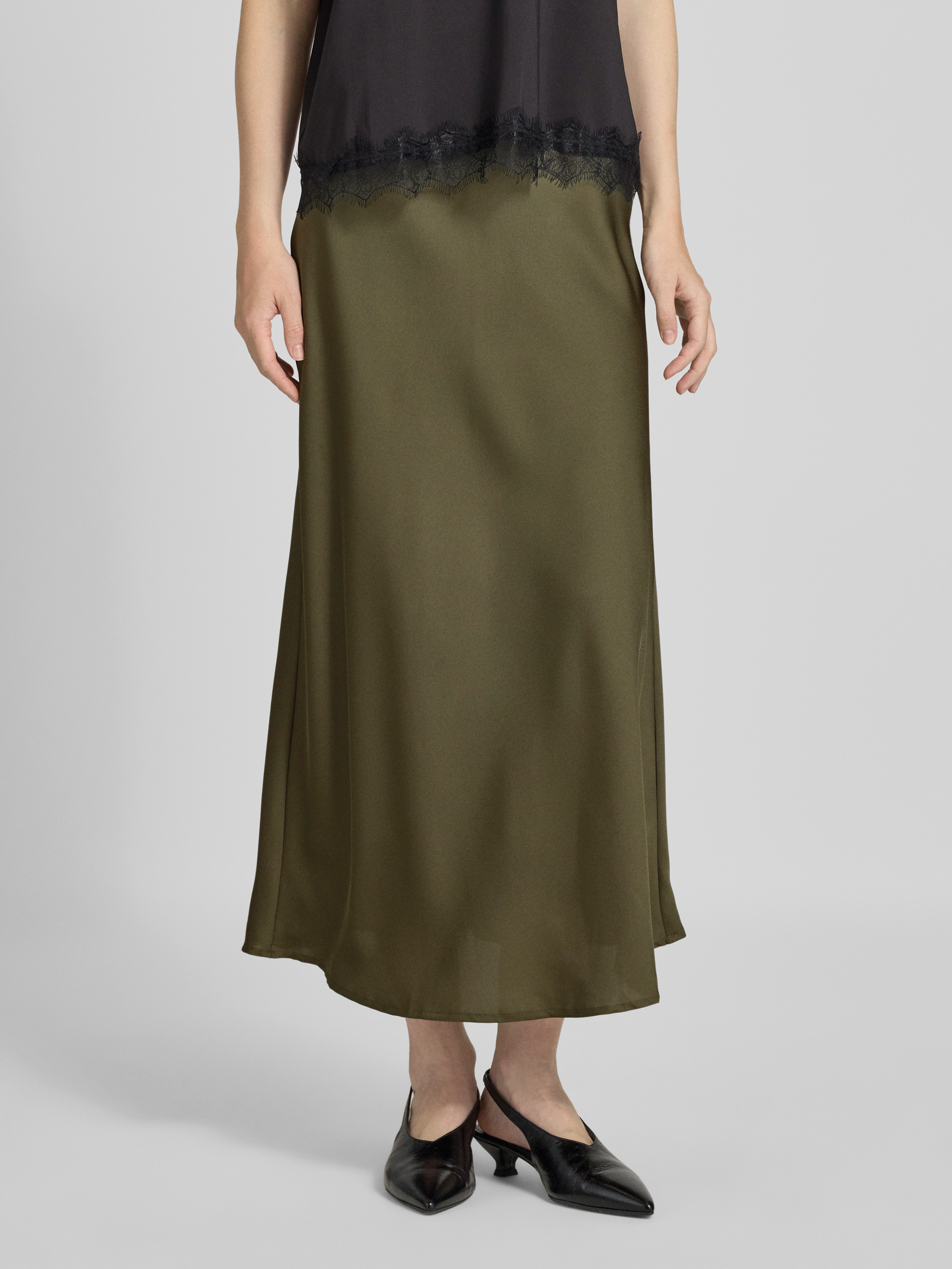 Maxirok met elastische band, model 'VIELLETTE' in olijfgroen