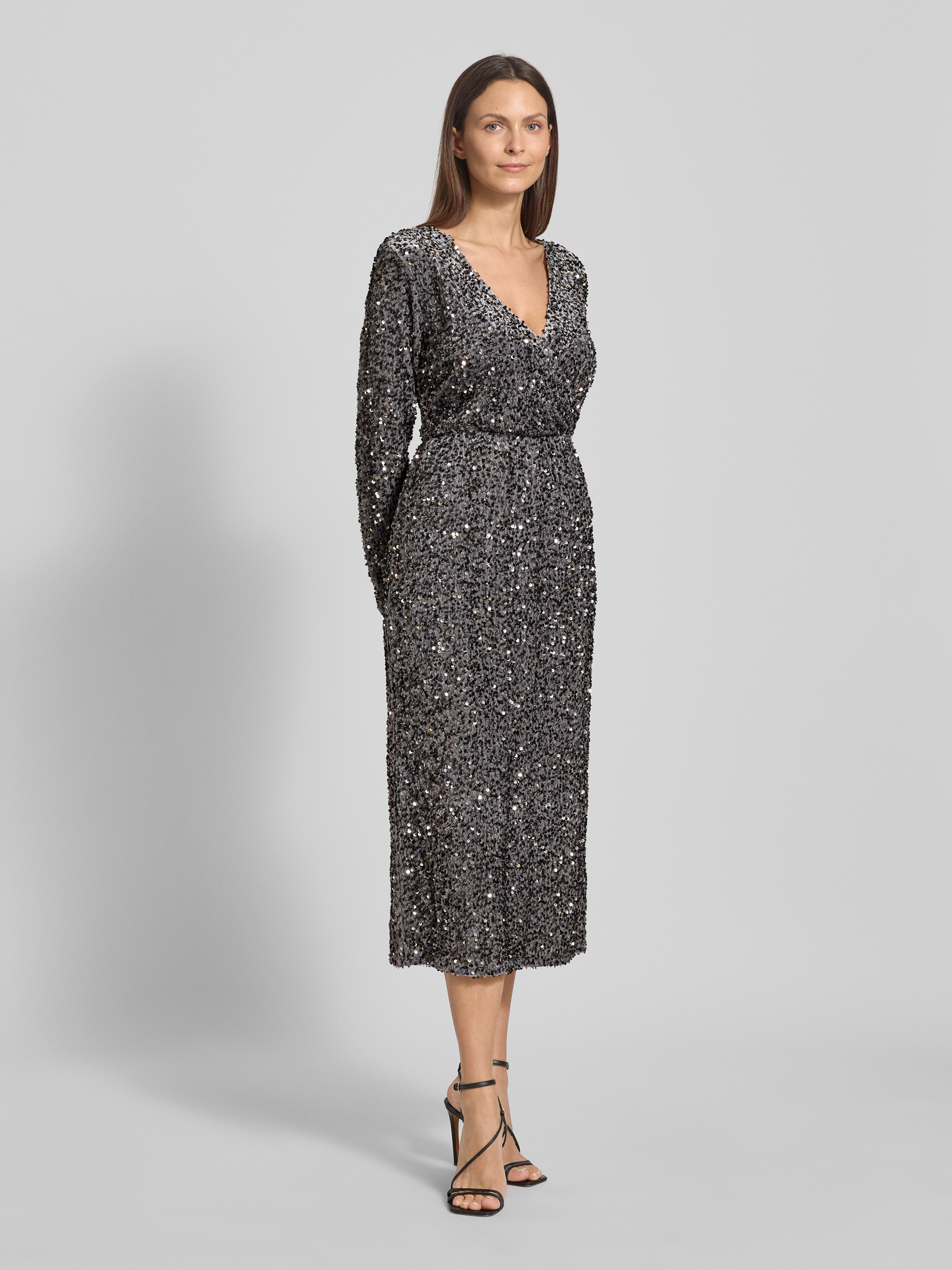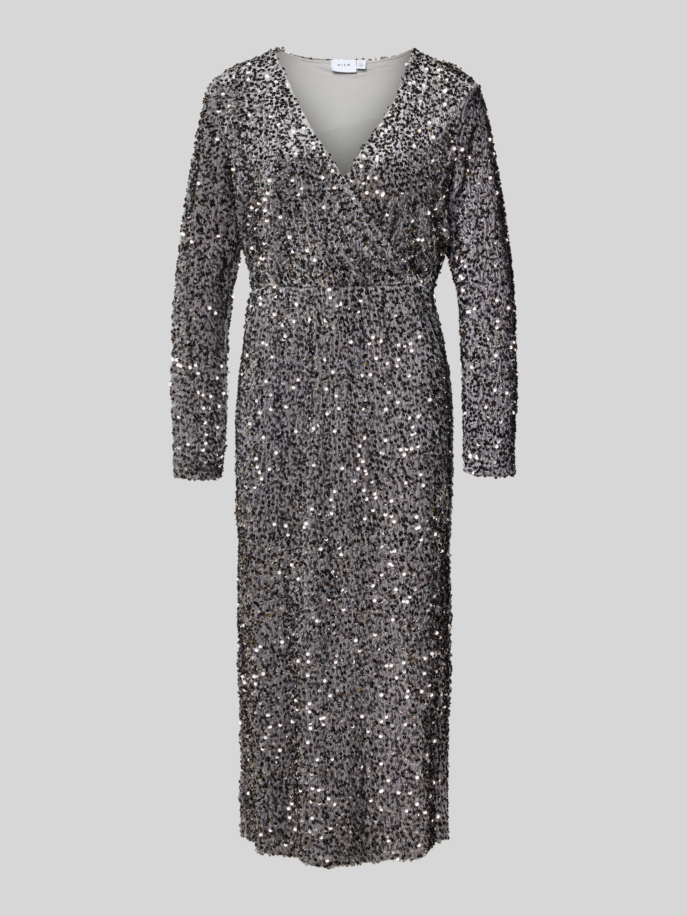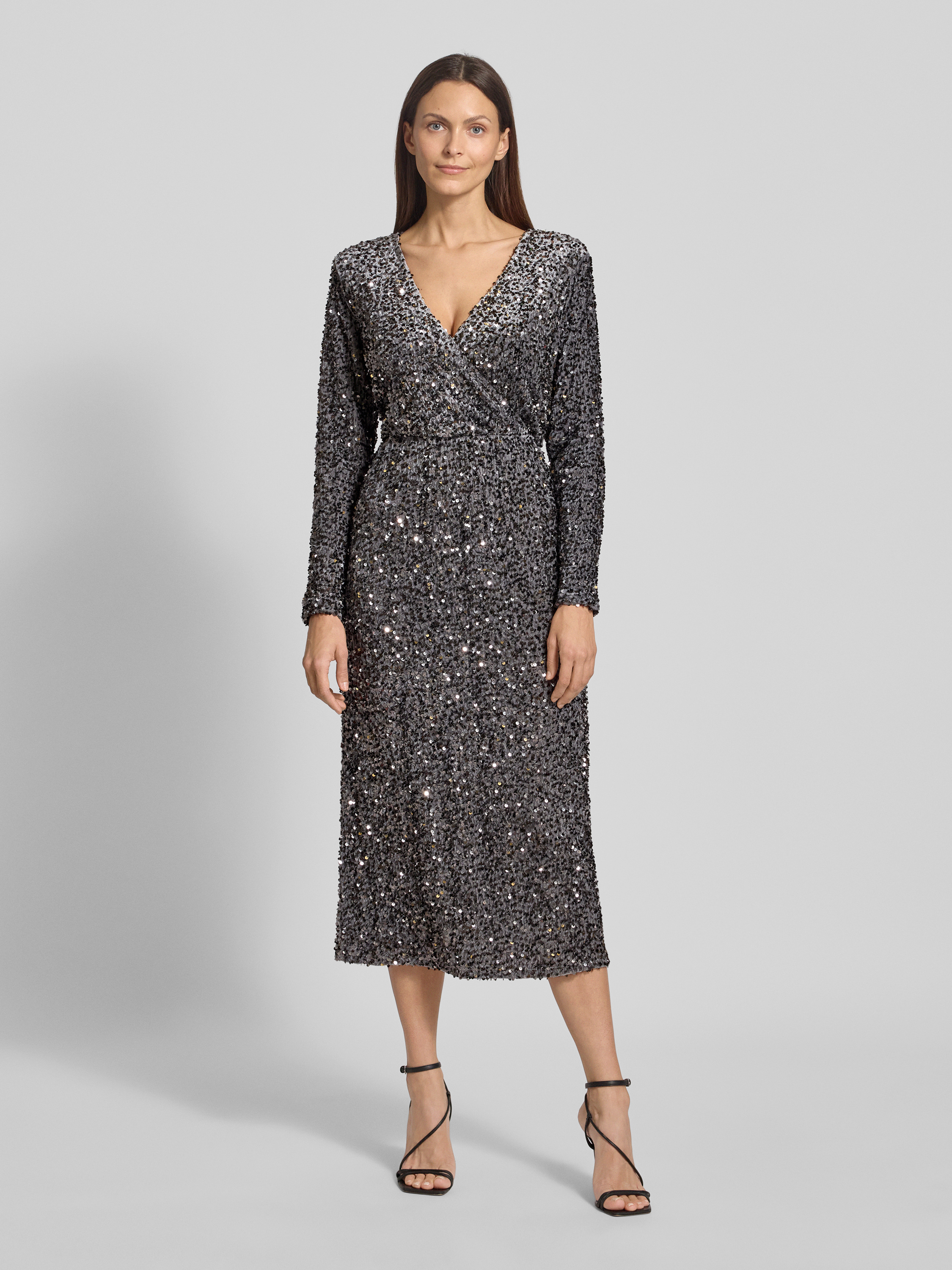 Midi-jurk met V-hals, model 'FAITH' in zilver