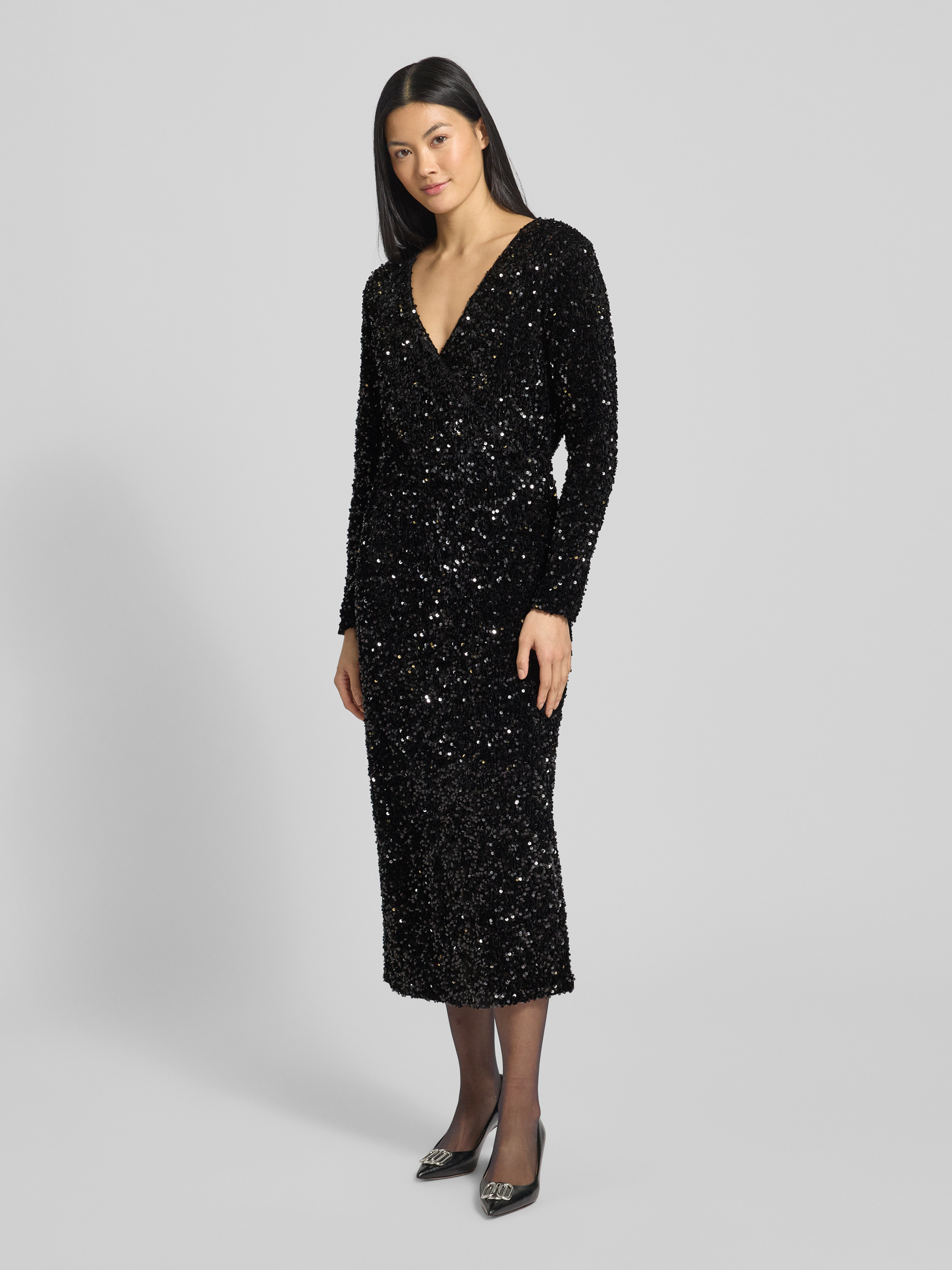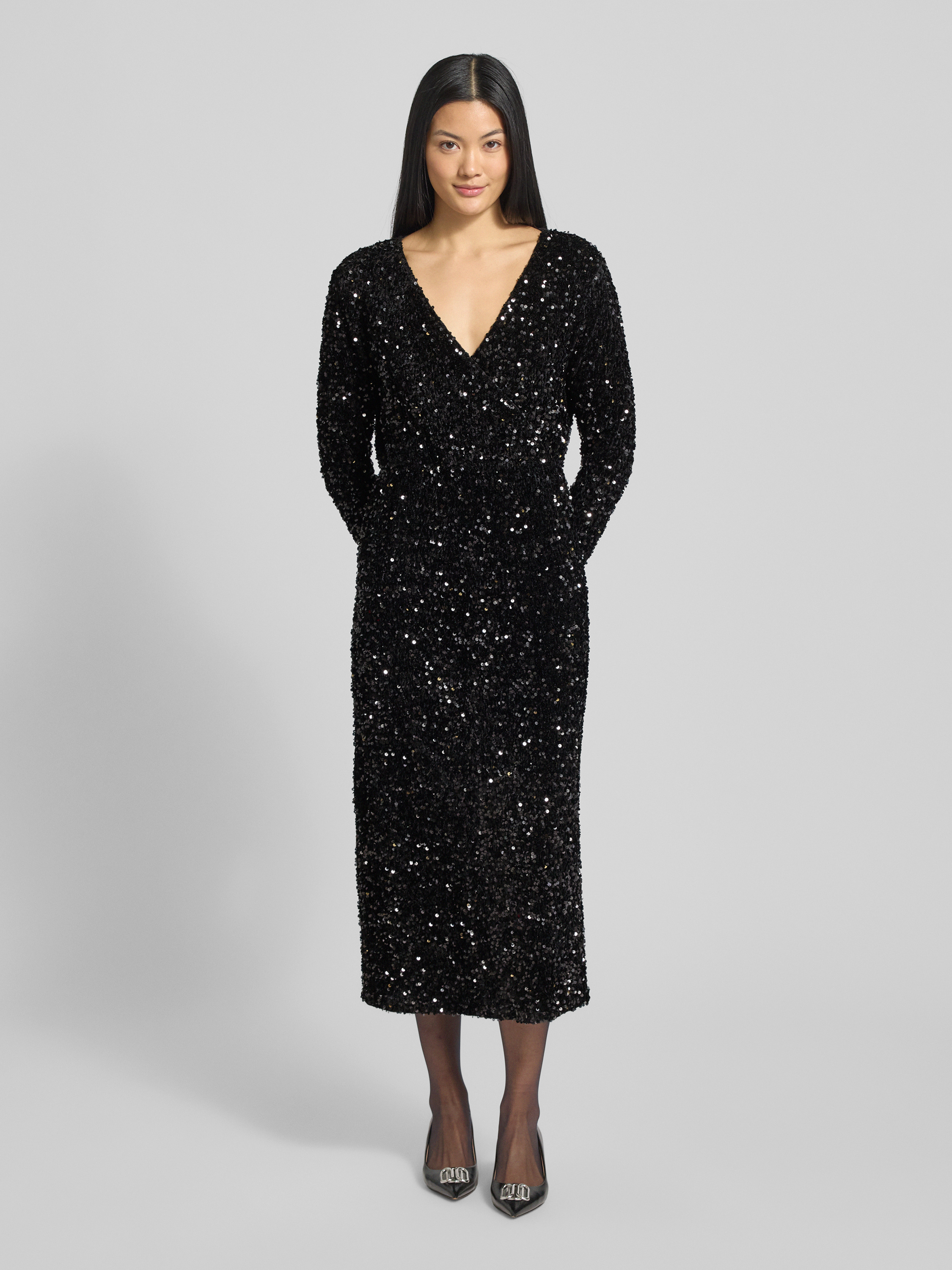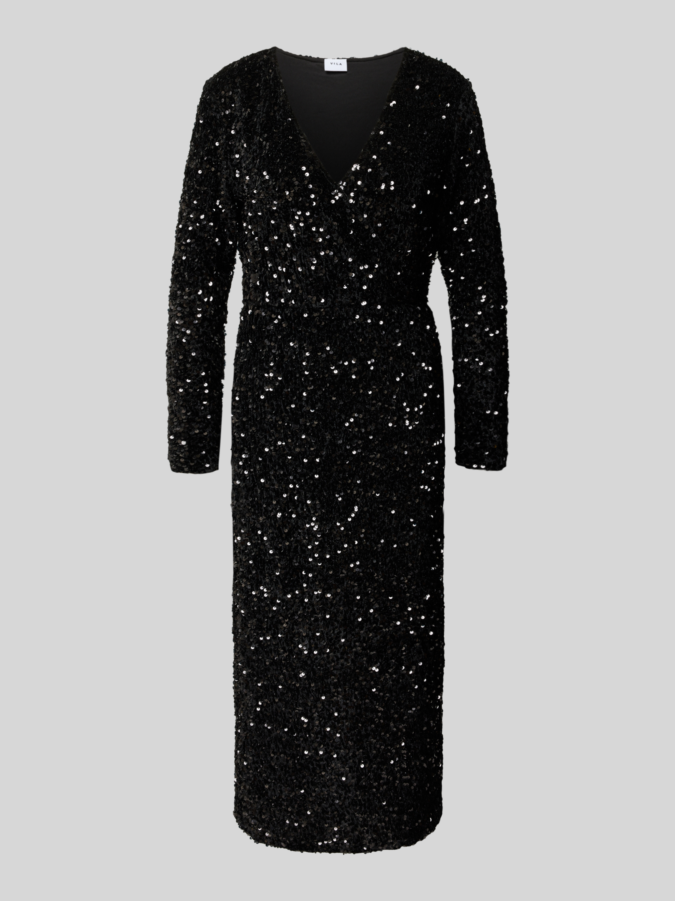 Midi-jurk met V-hals, model 'FAITH' in zwart