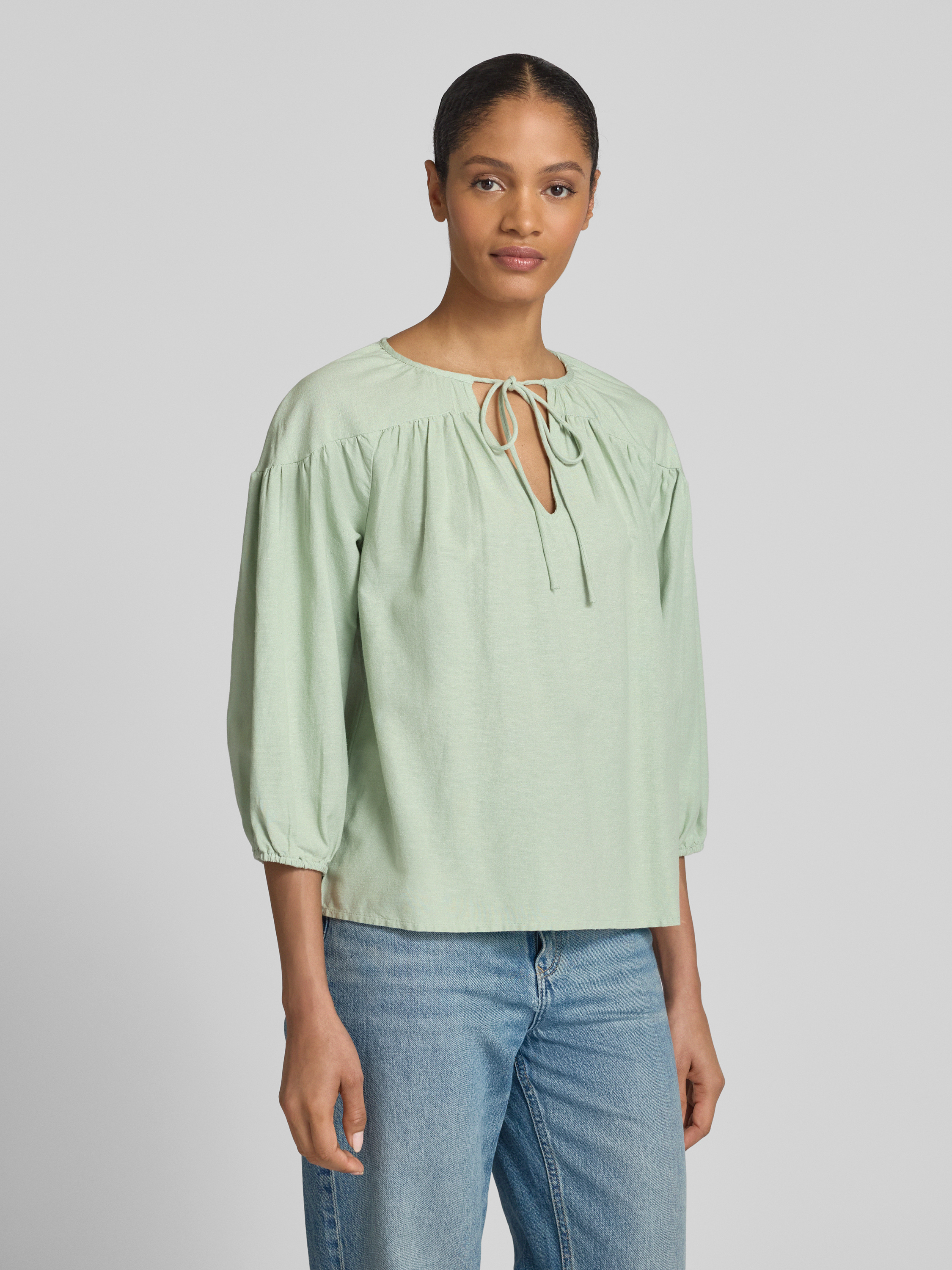Regular fit blouse met V-hals, model 'PRISILLA' in rietgroen