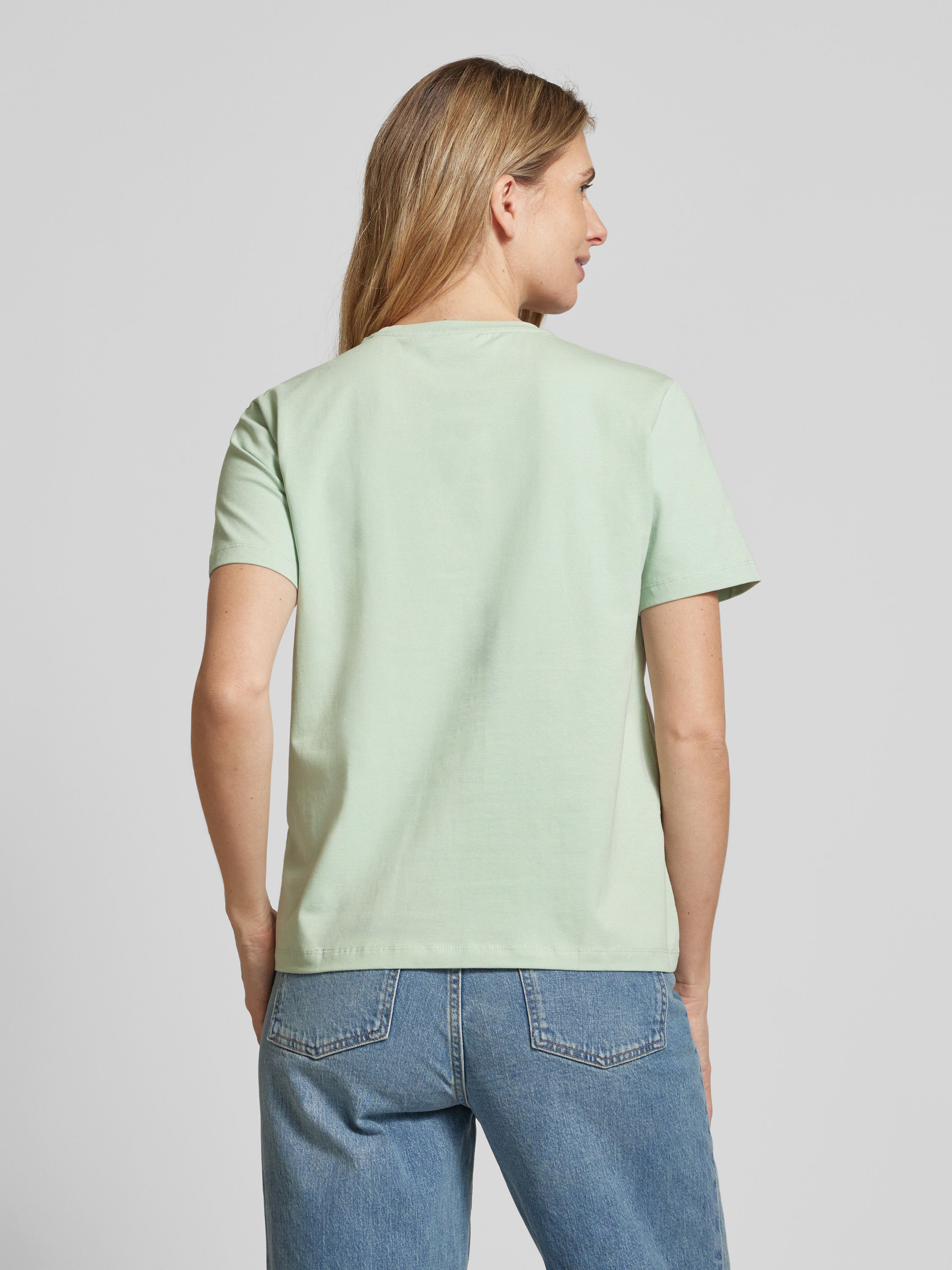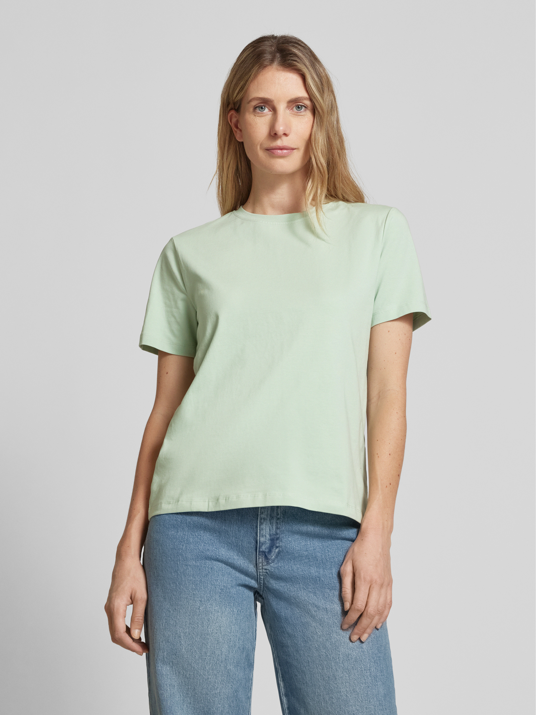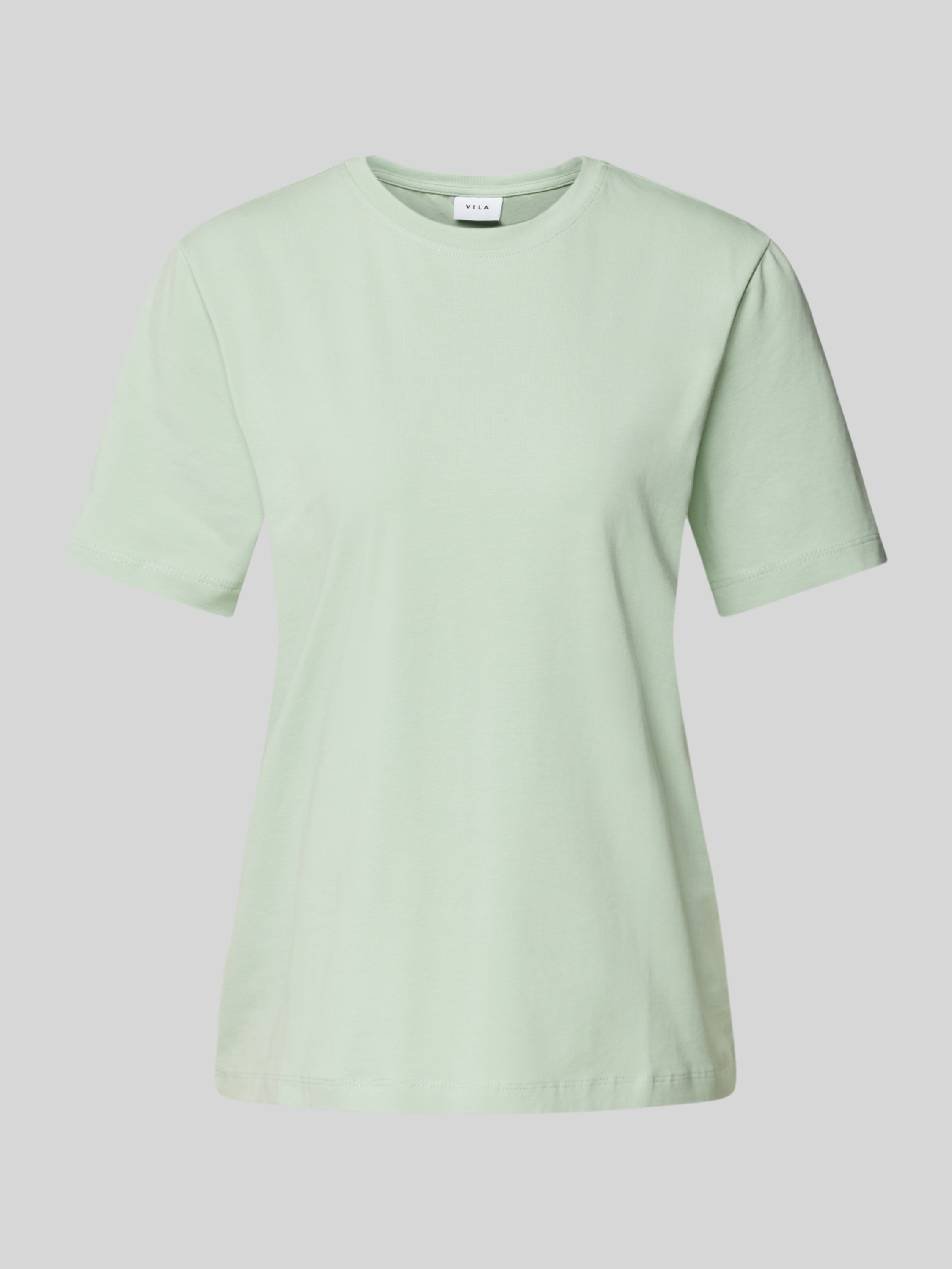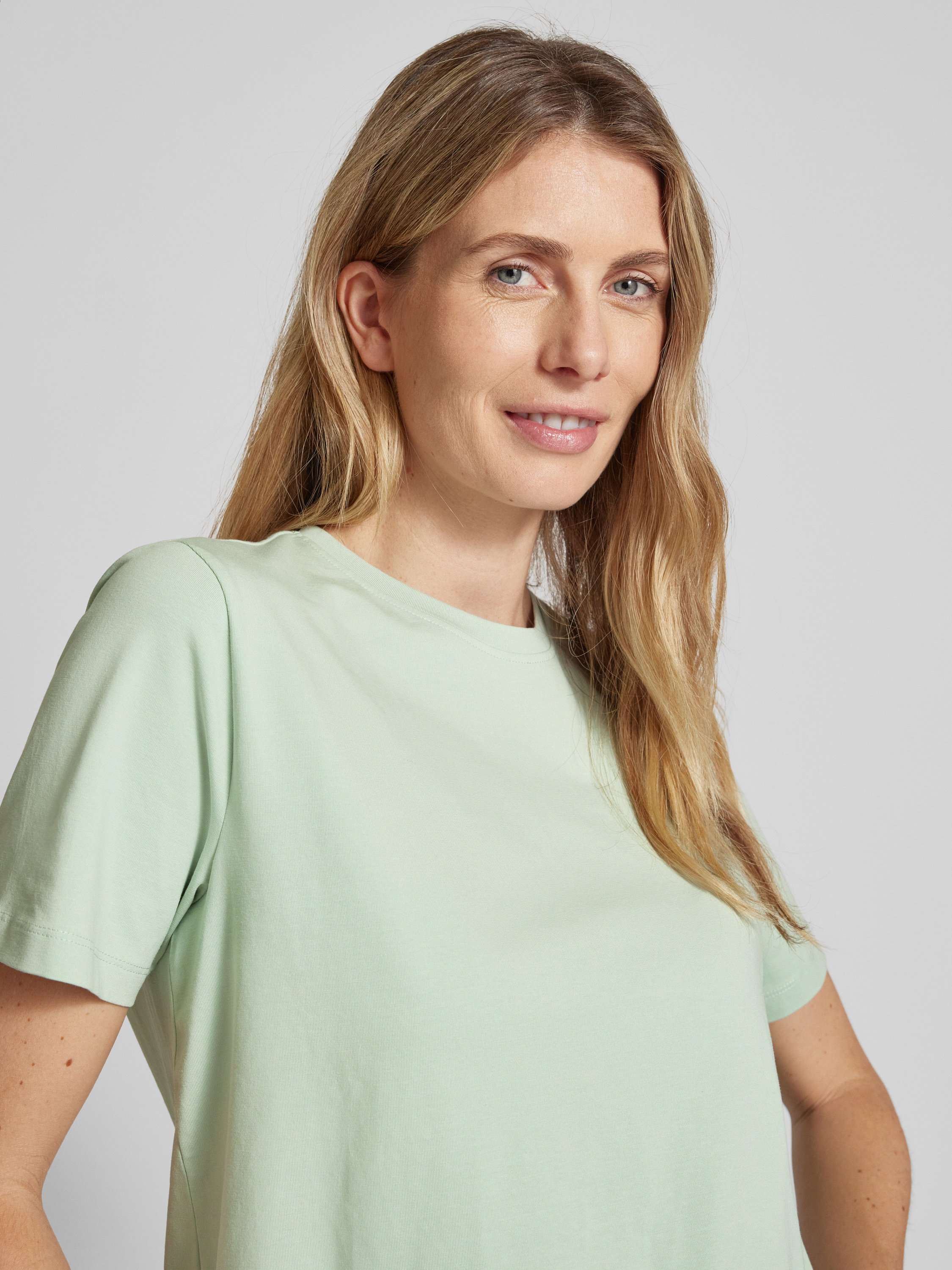 T-shirt met geribde ronde hals, model 'NORA' in rietgroen
