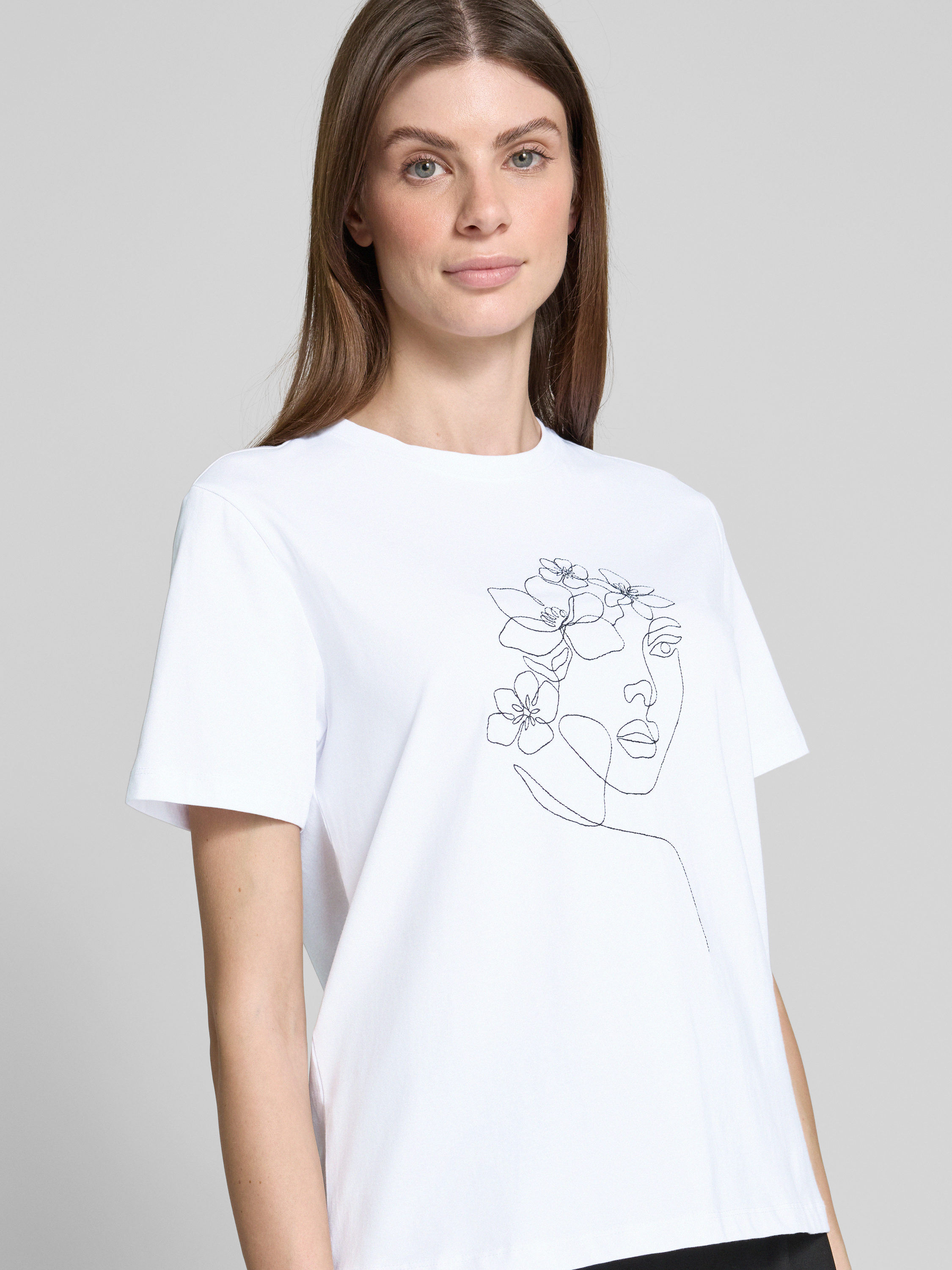 T-shirt met motiefprint, model 'NORA' in offwhite