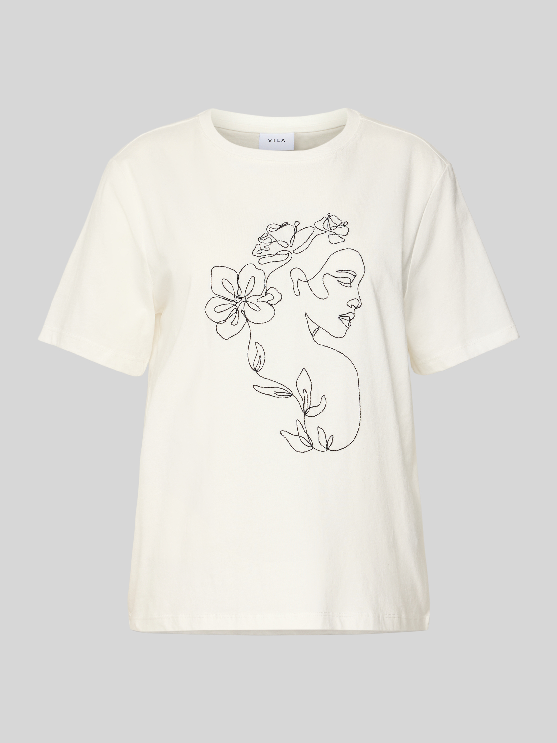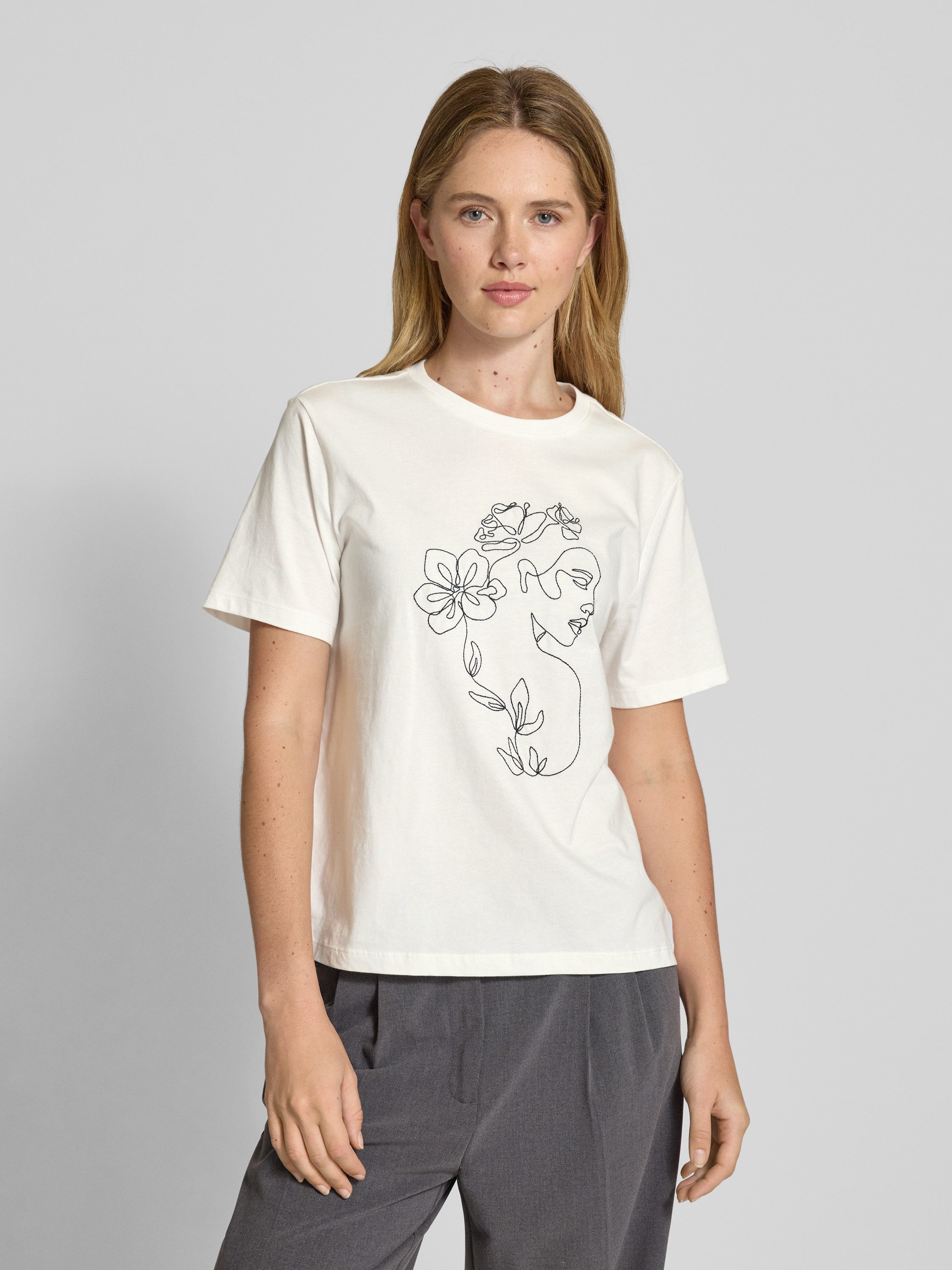 T-shirt met motiefstitching, model 'SYBIL' in wit