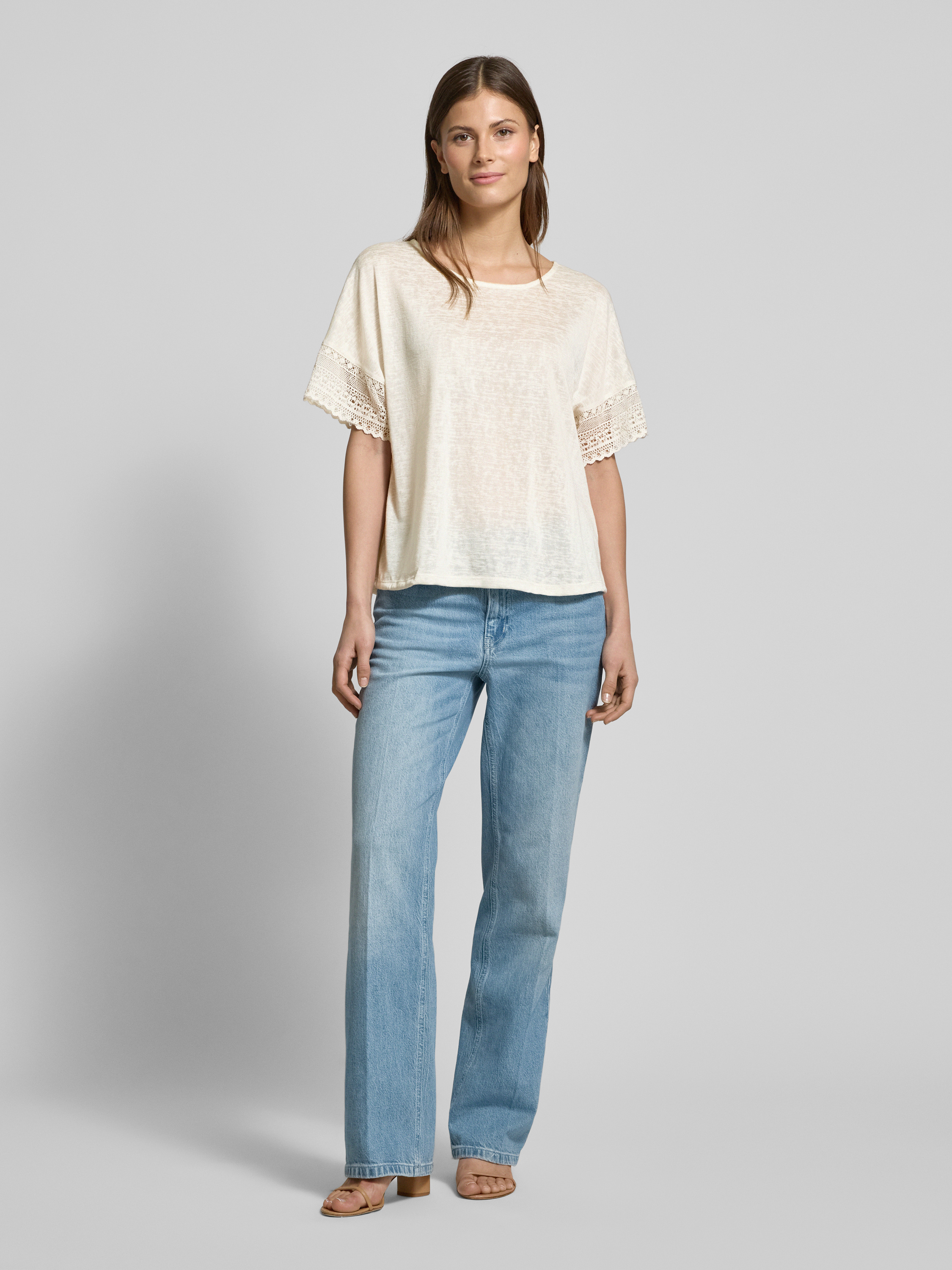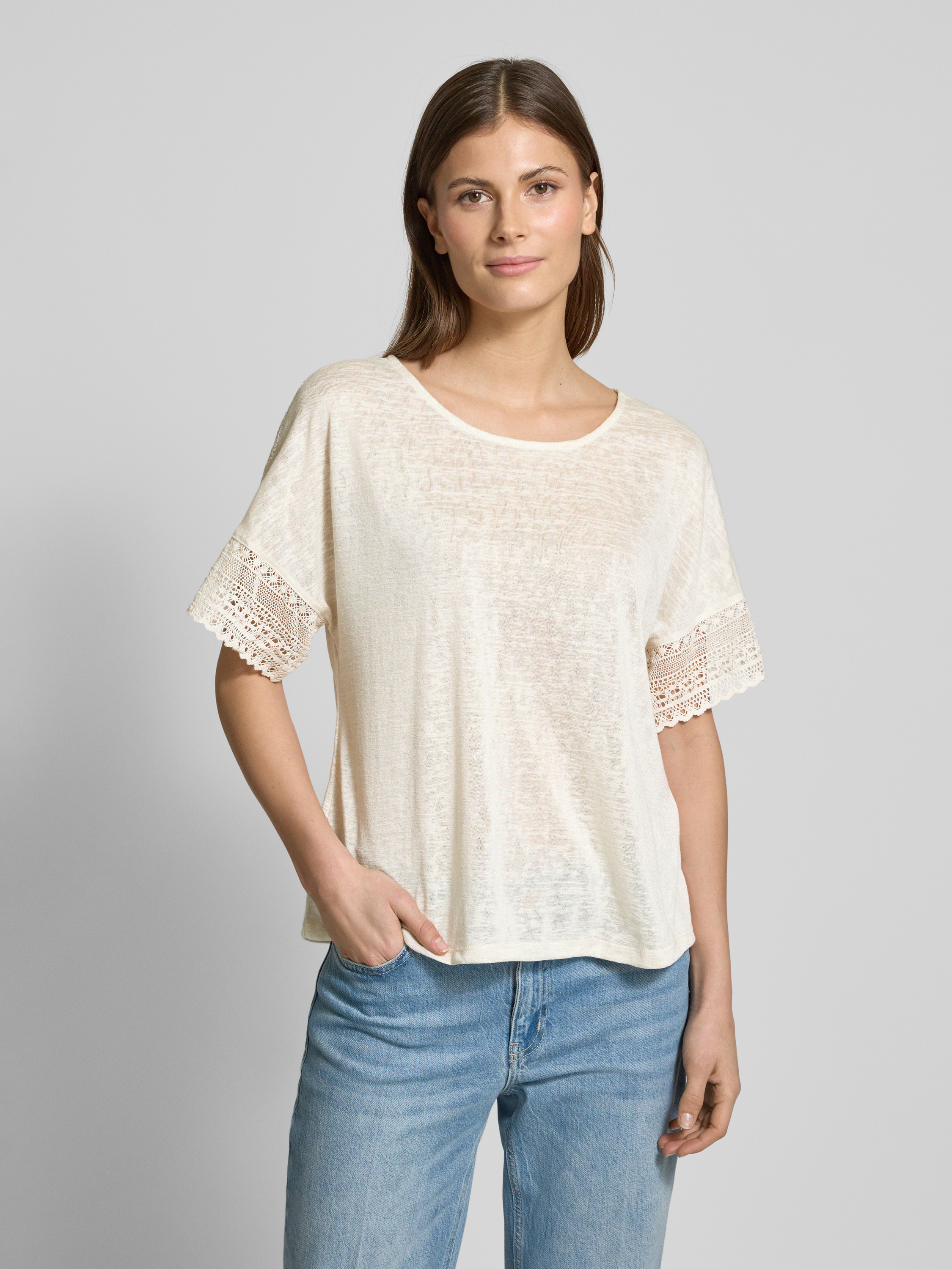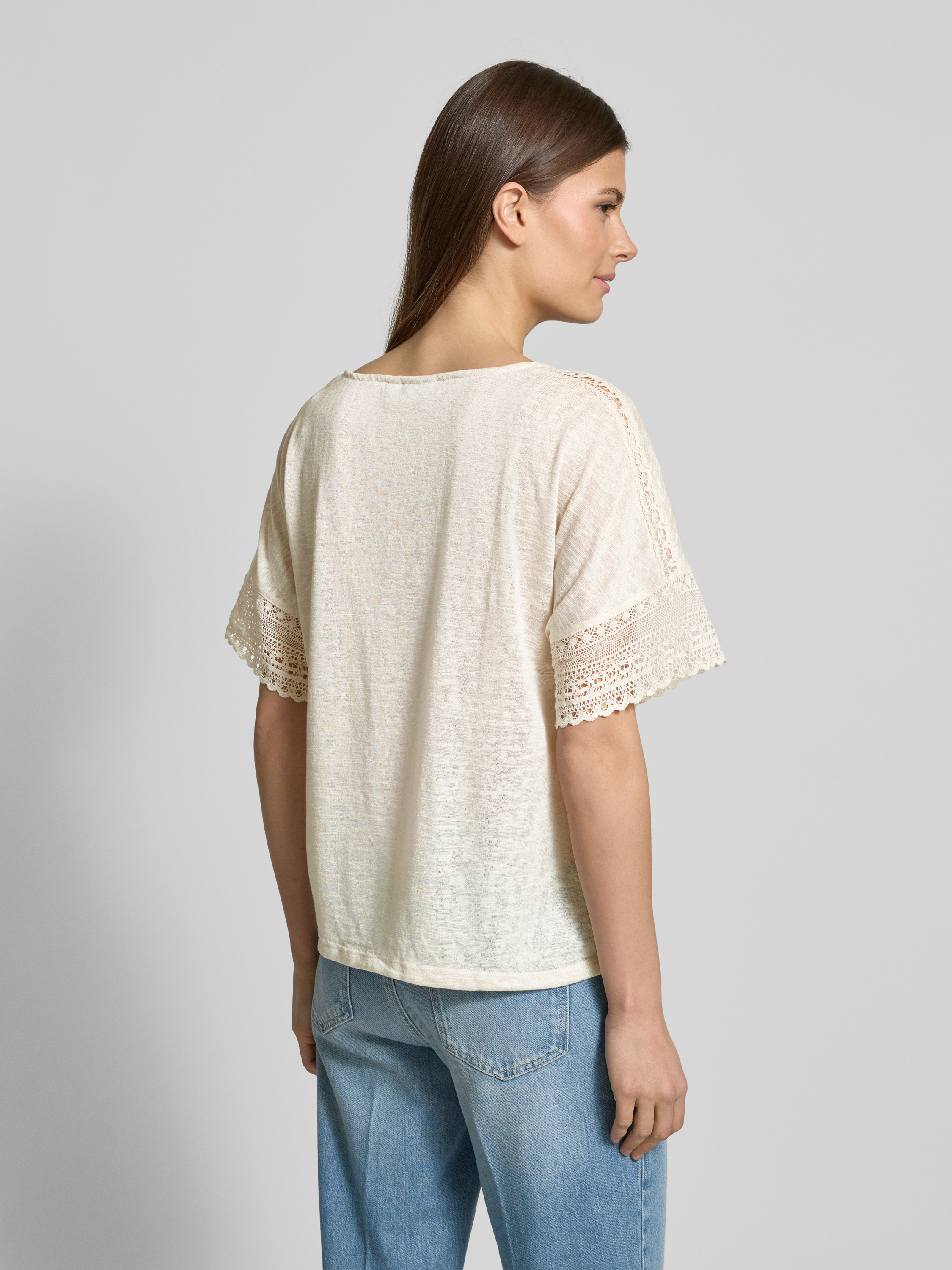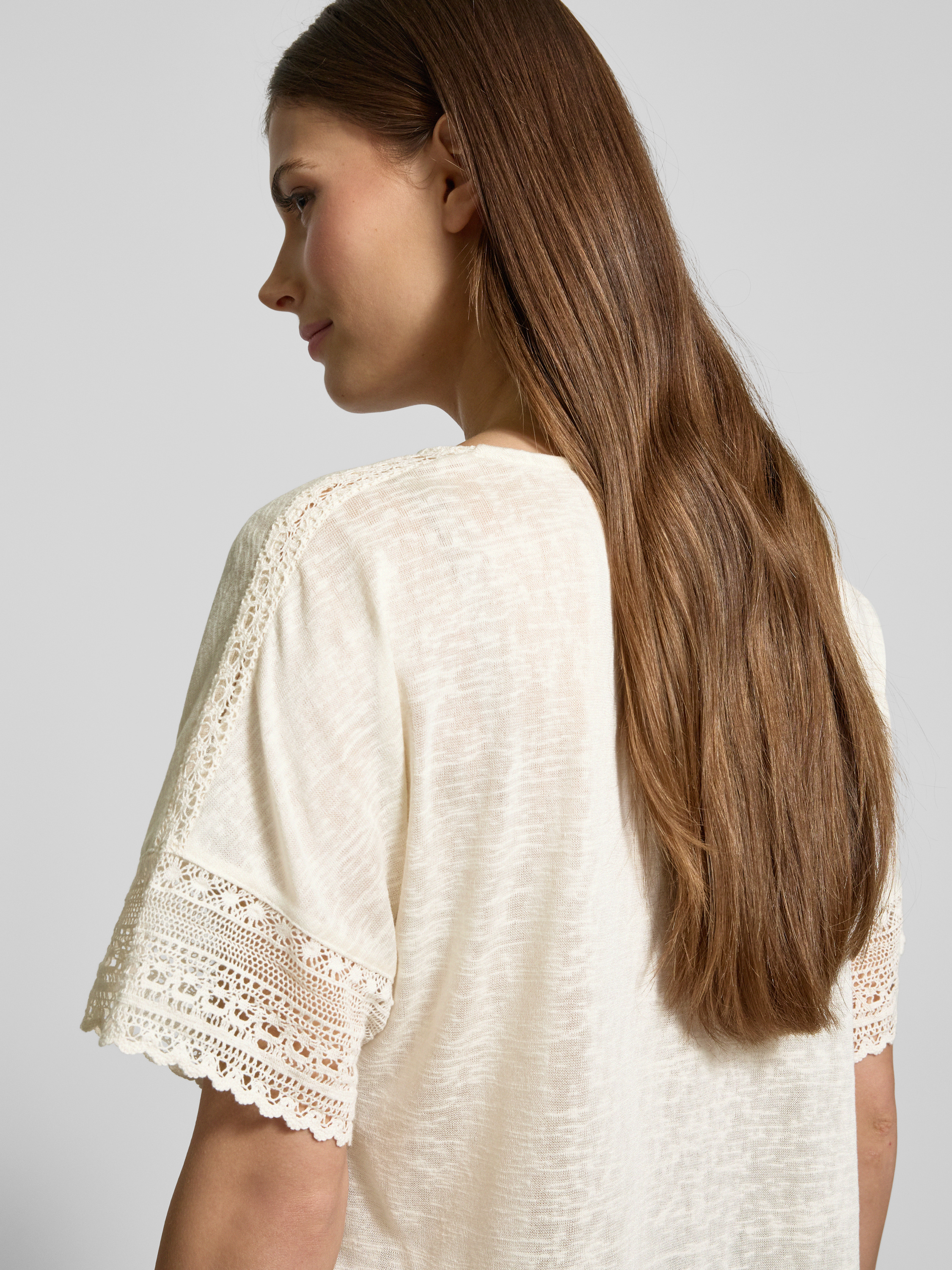 T-shirt van gehaakt kant, model 'NULAN' in offwhite