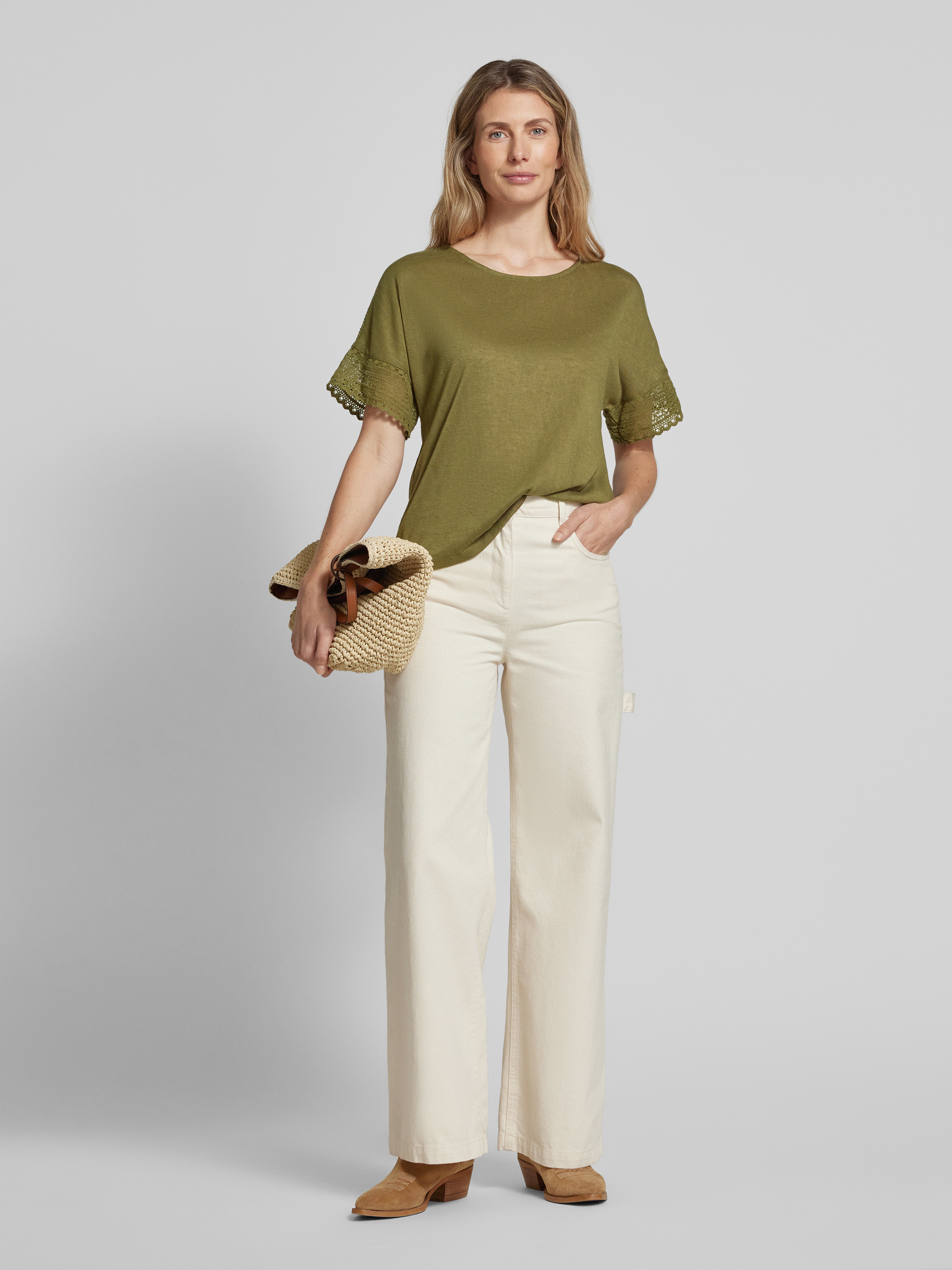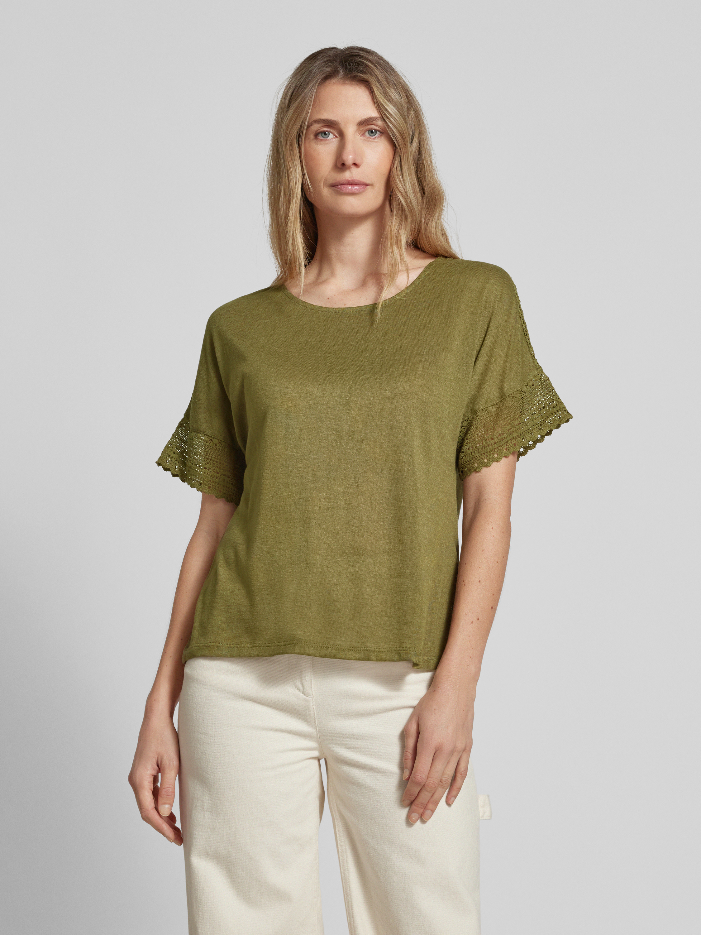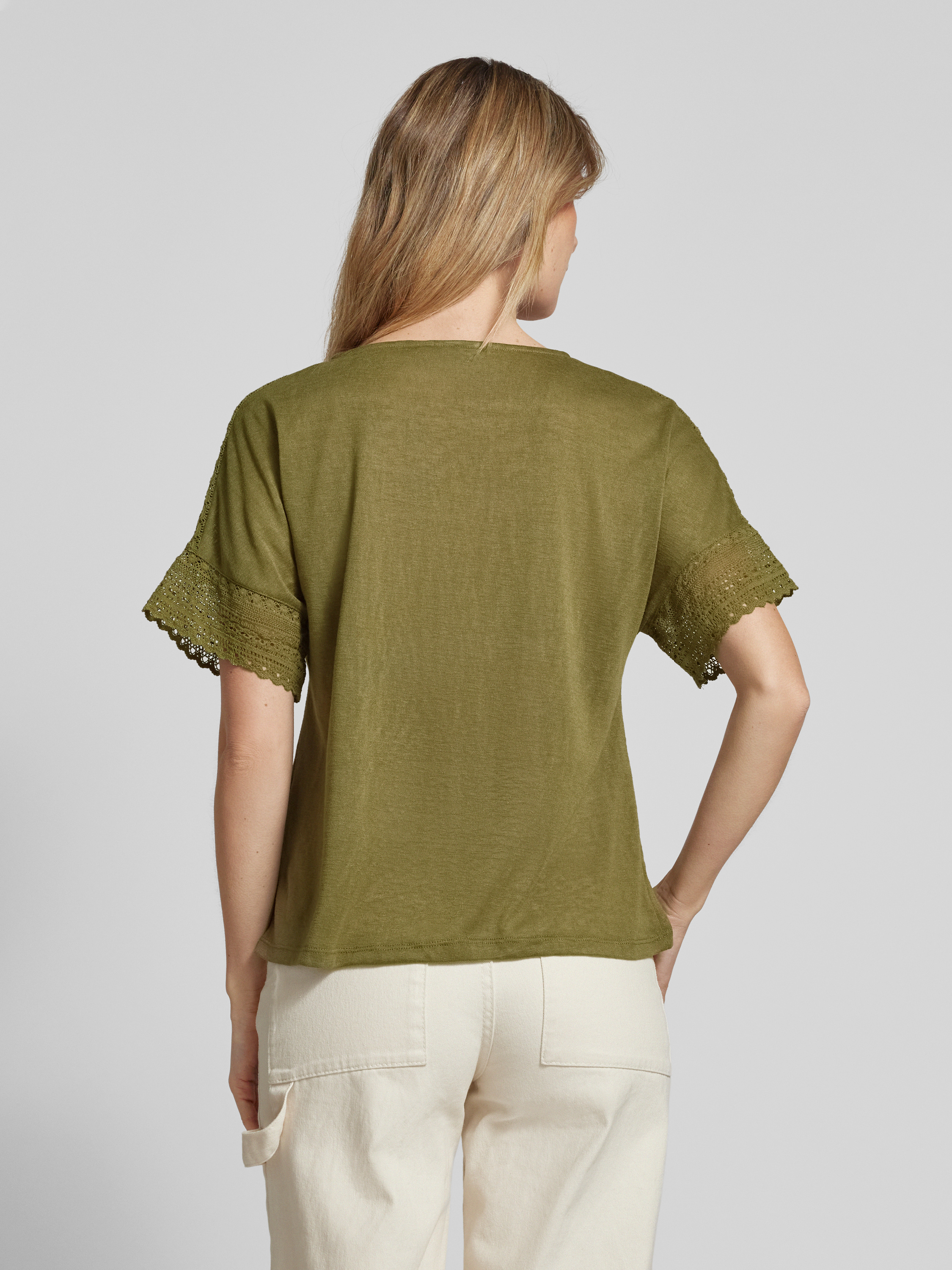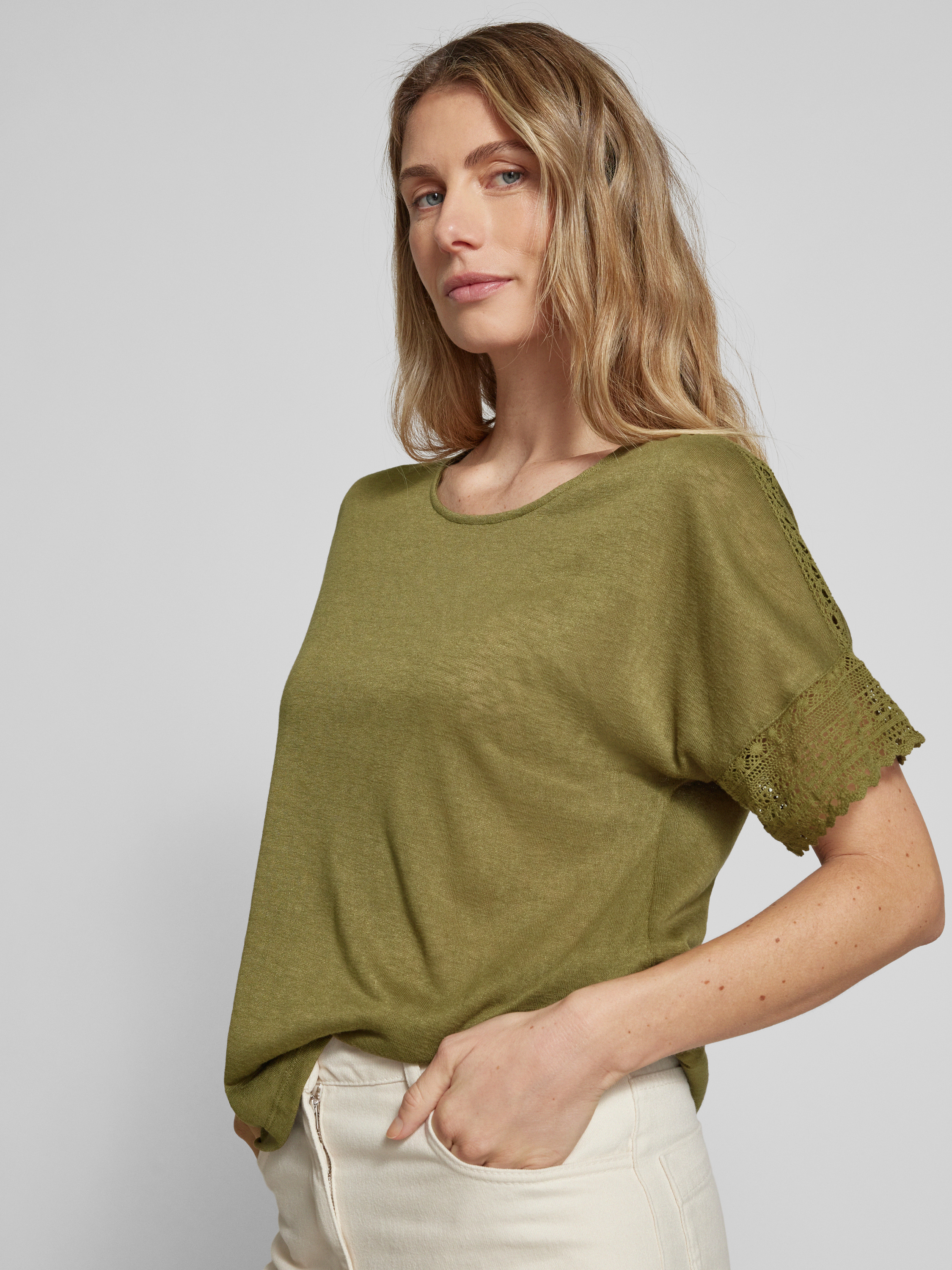 T-shirt van gehaakt kant, model 'NULAN' in olijfgroen