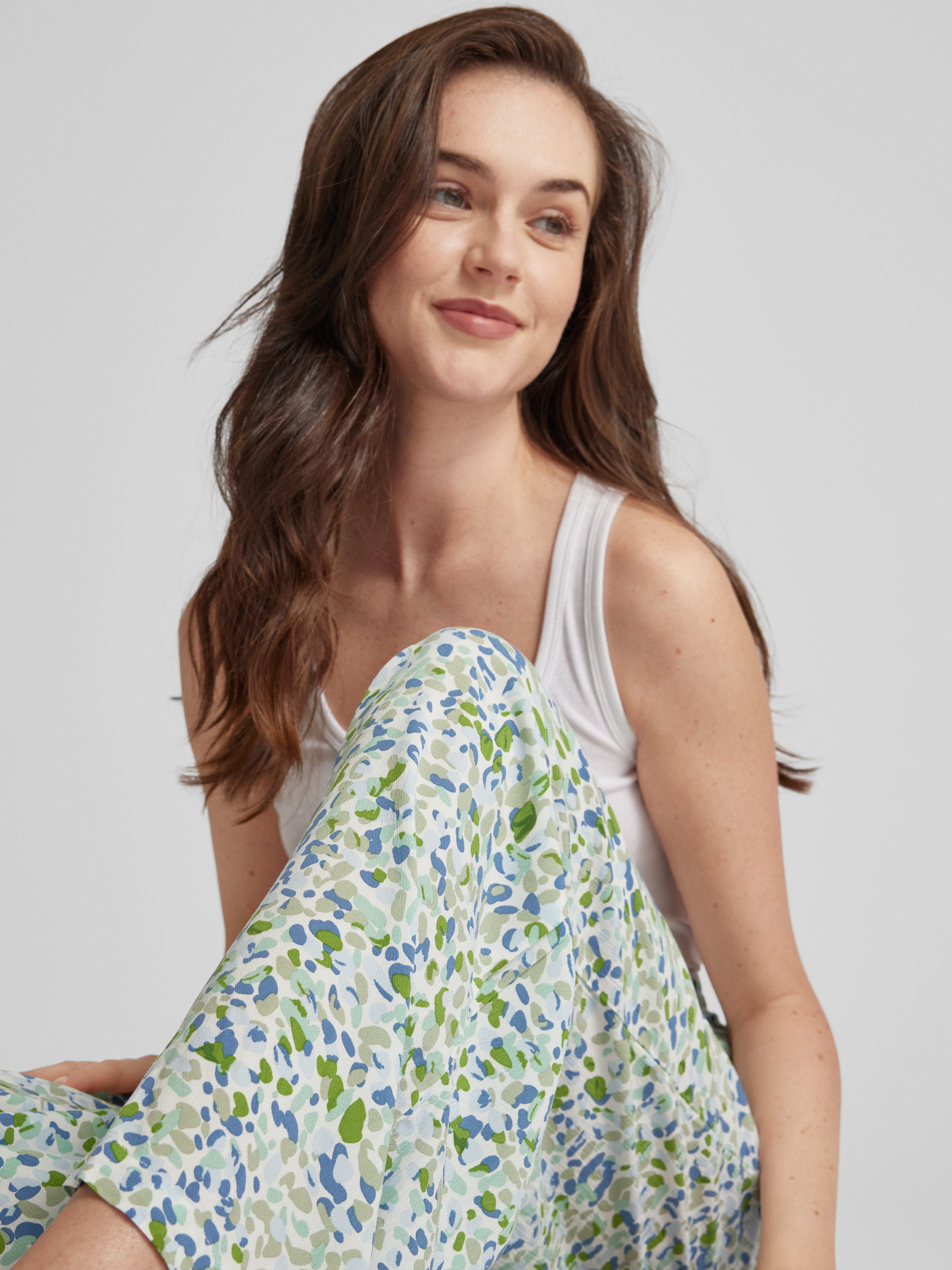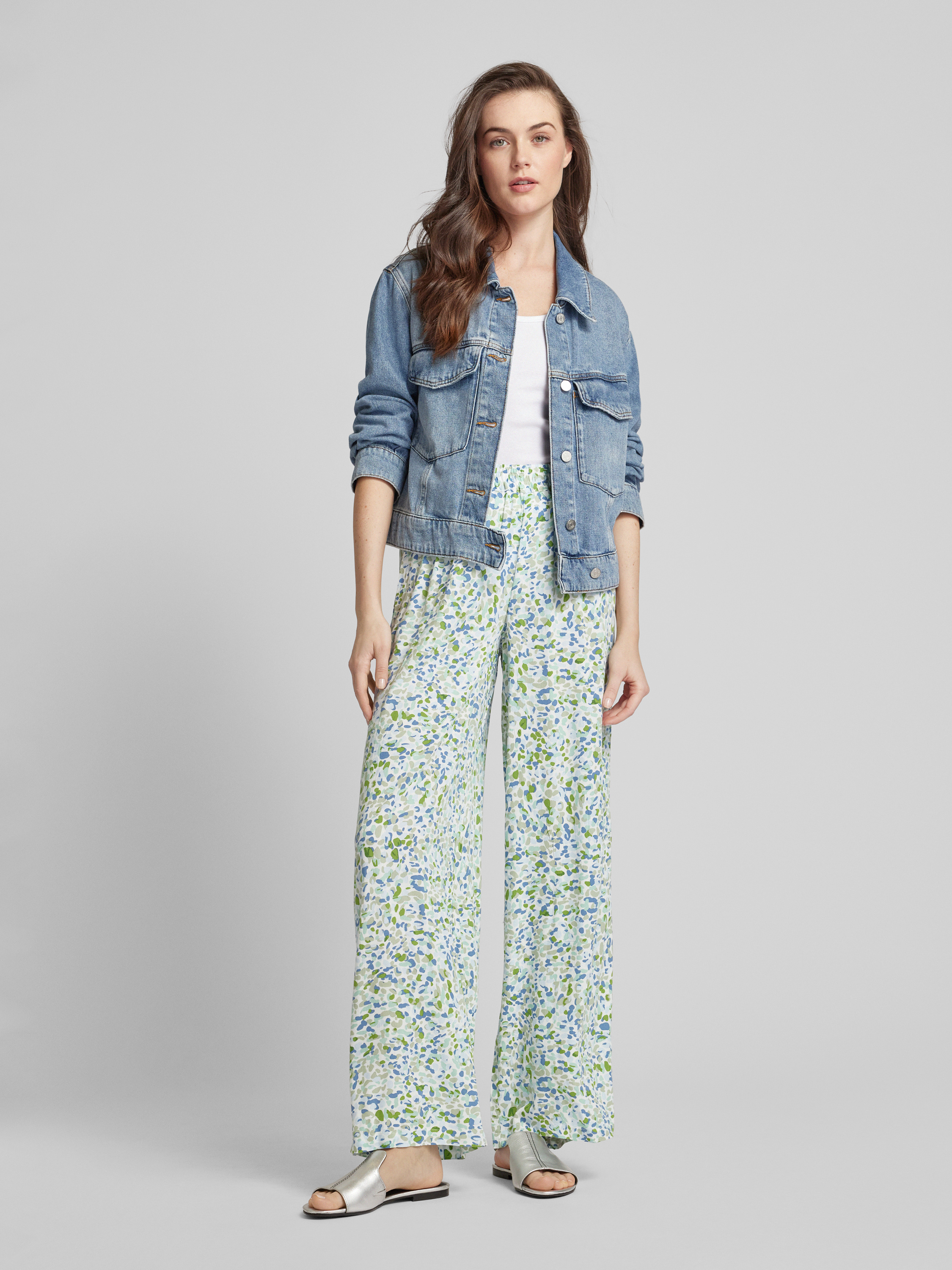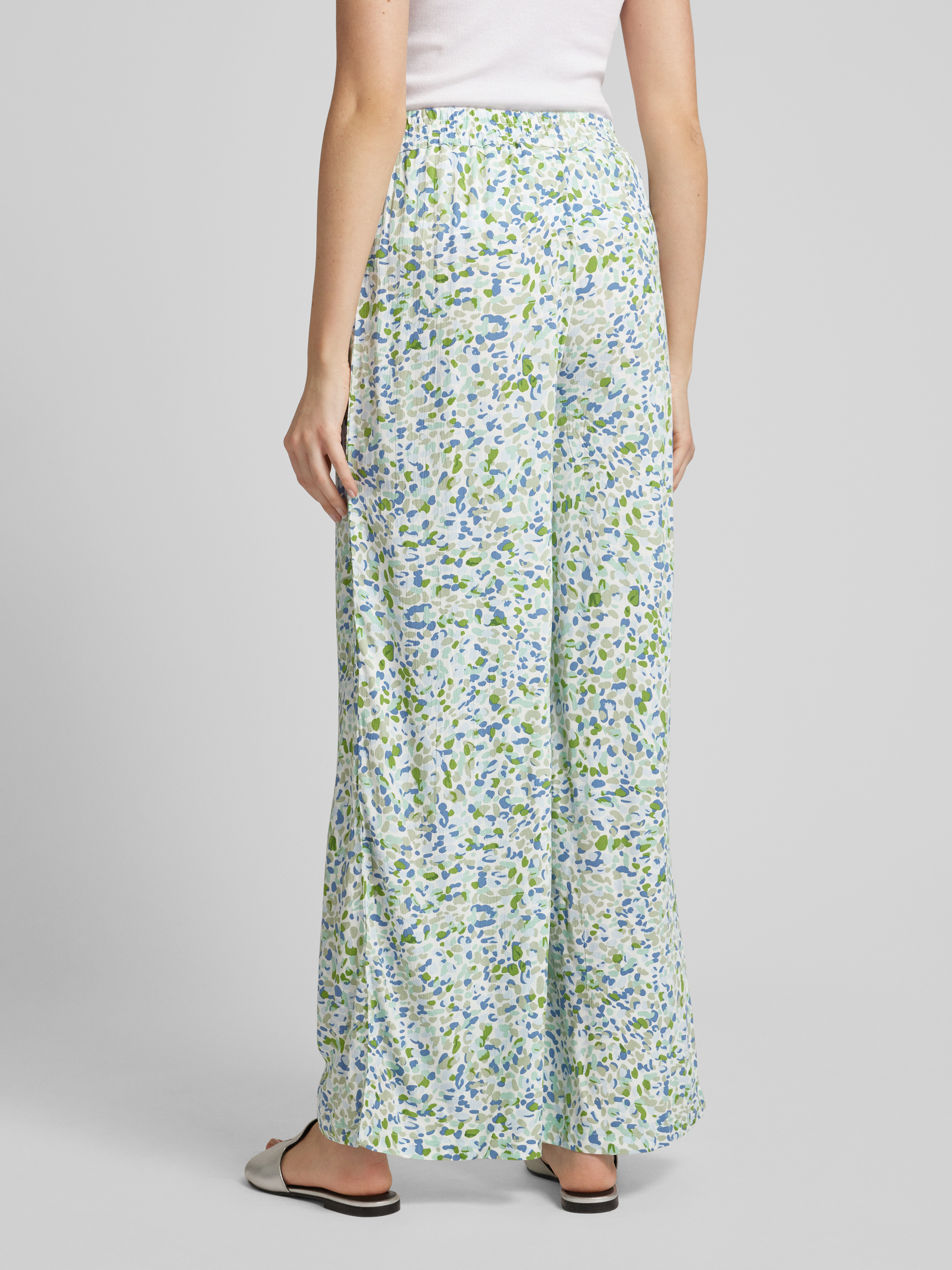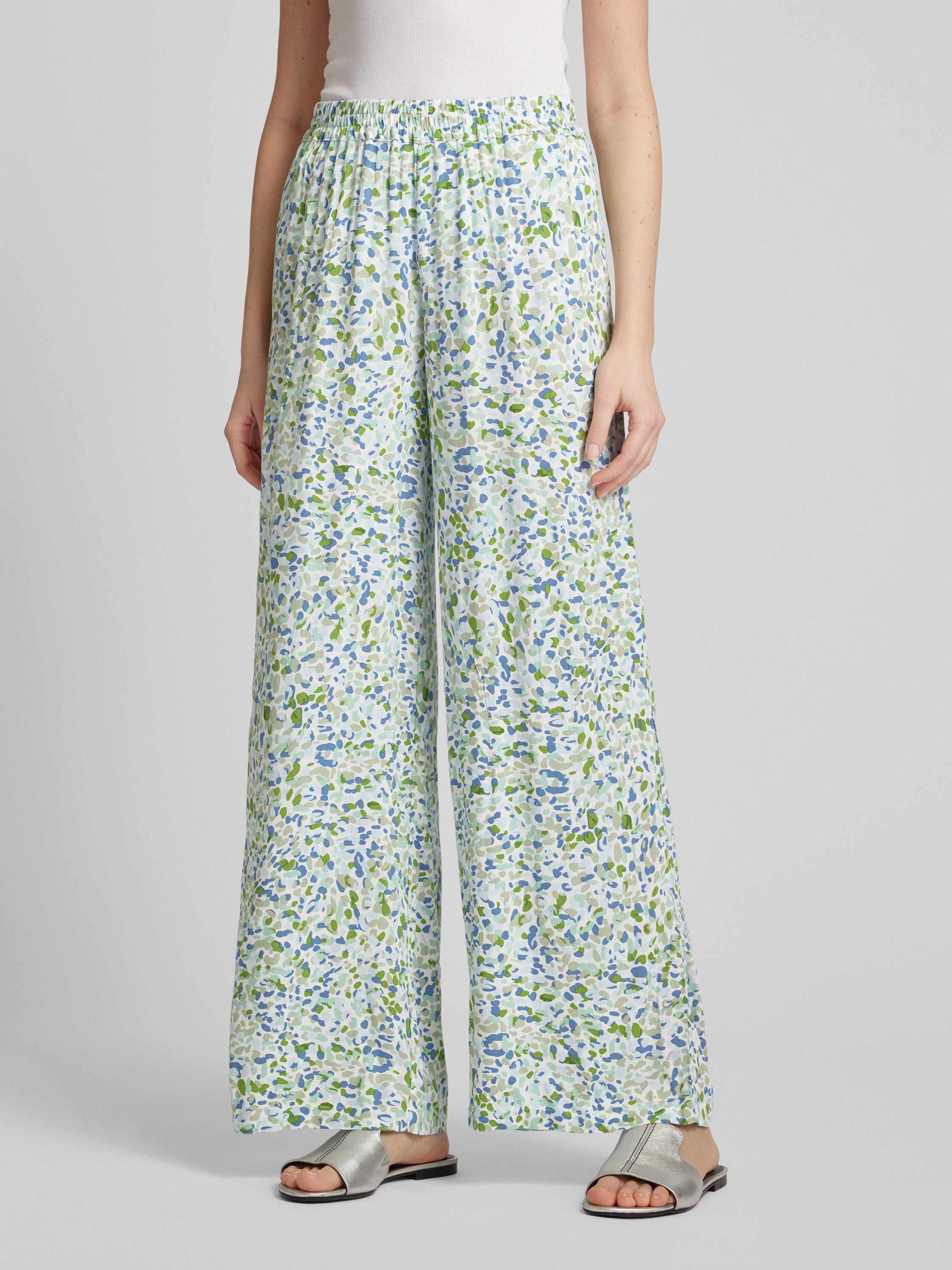 Wide leg stoffen broek met all-over print, model 'POVA' in rietgroen