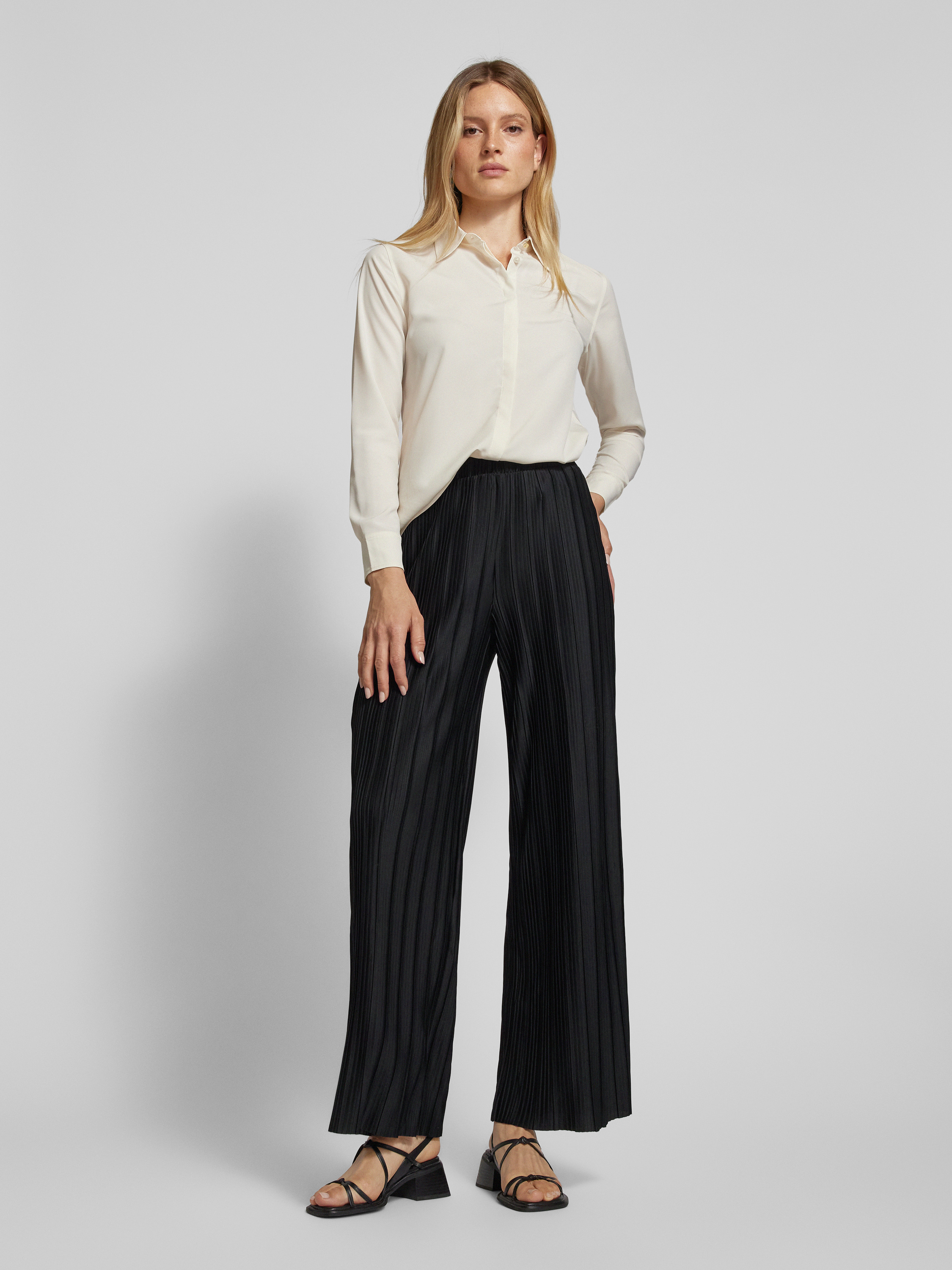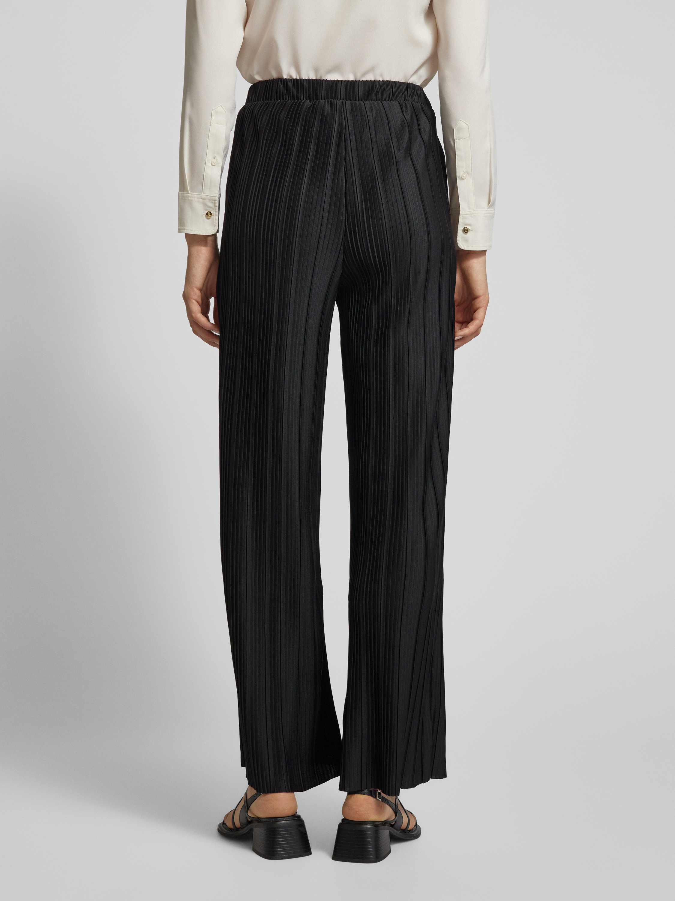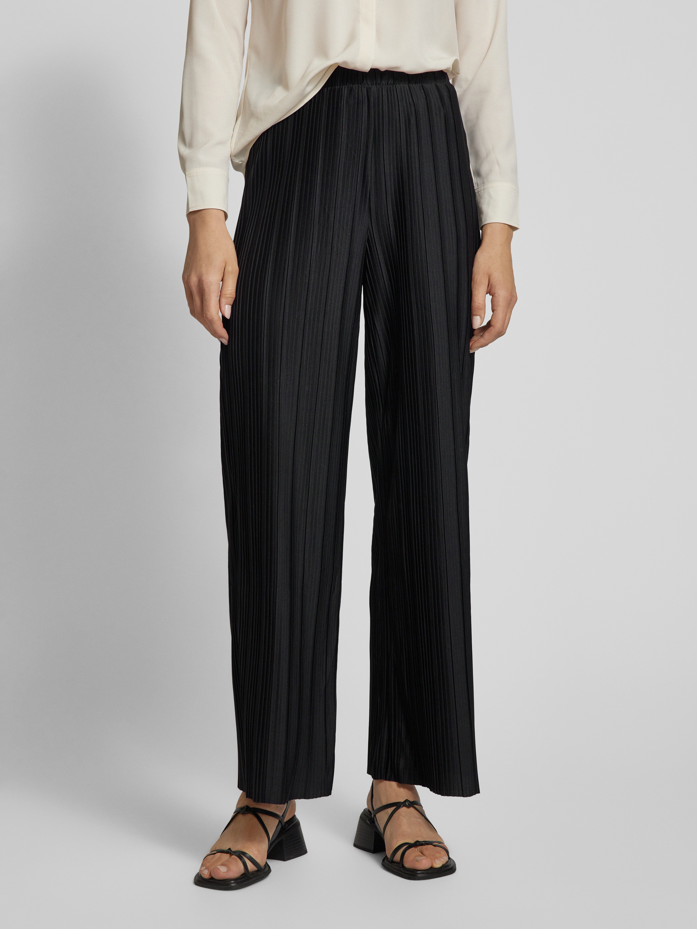 Wide leg stoffen broek met plissévouwen, model 'TAHLIA' in zwart