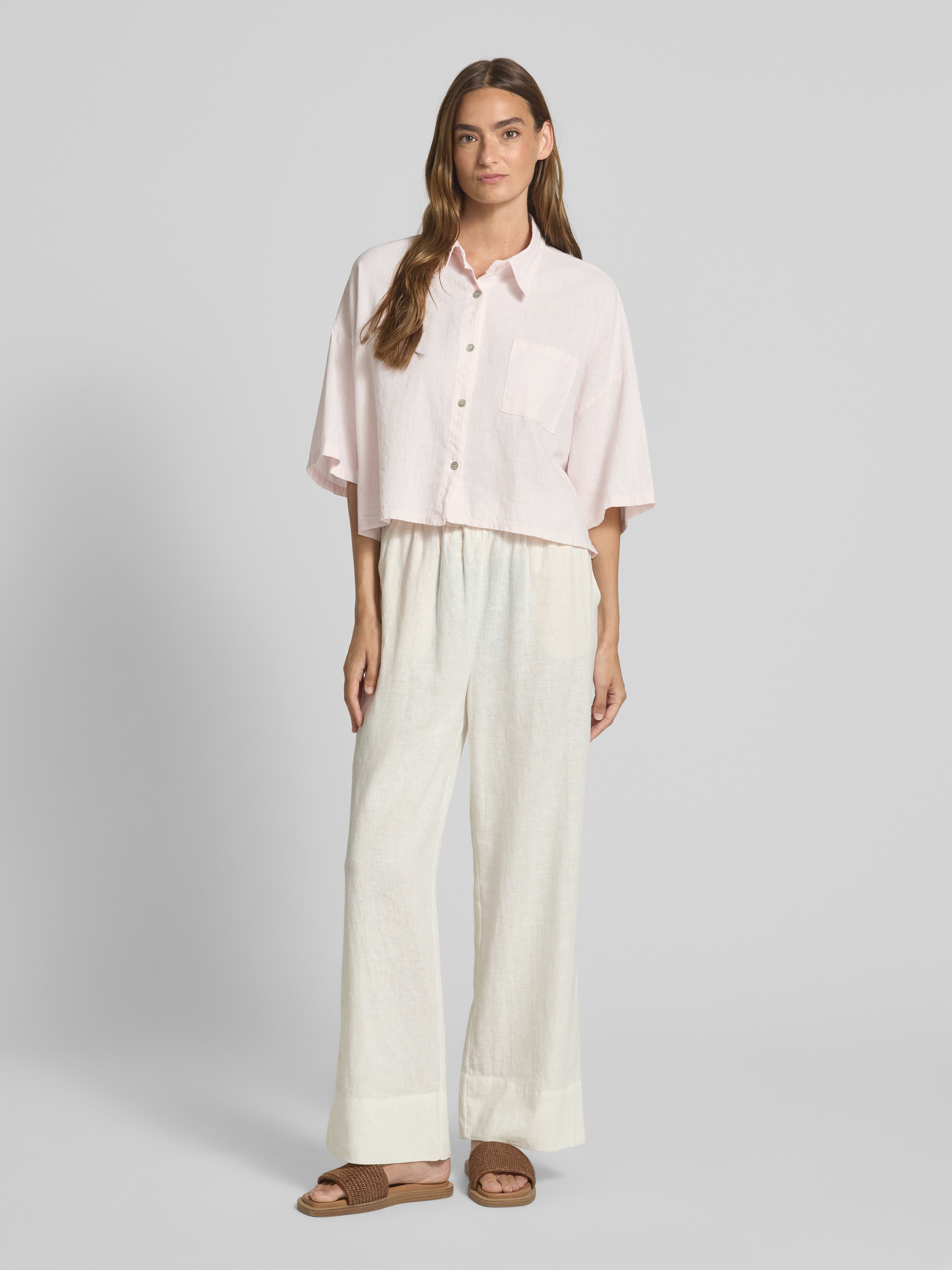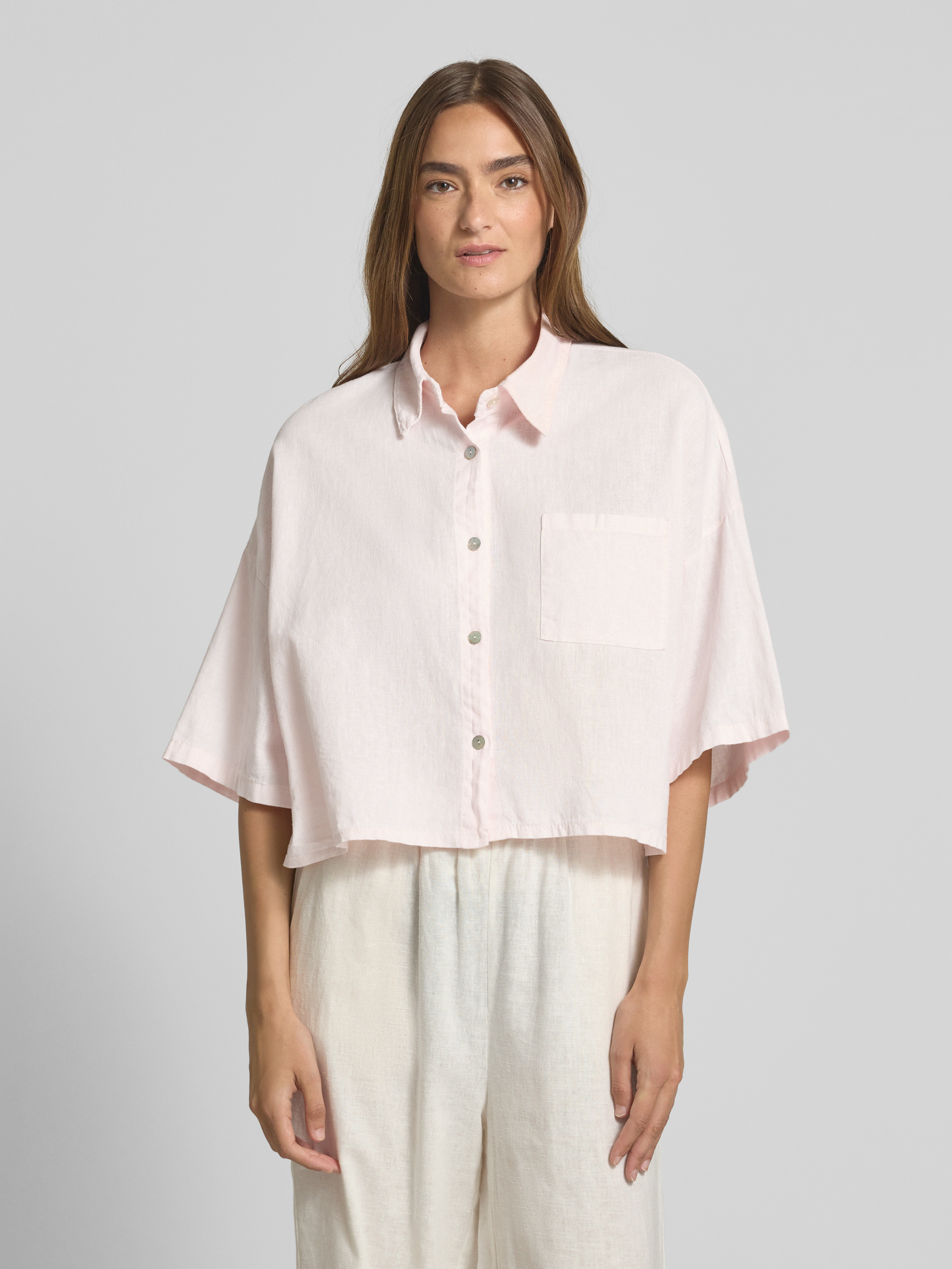 Korte blouse van een mix van linnen en katoen, model 'Quinn' in roze