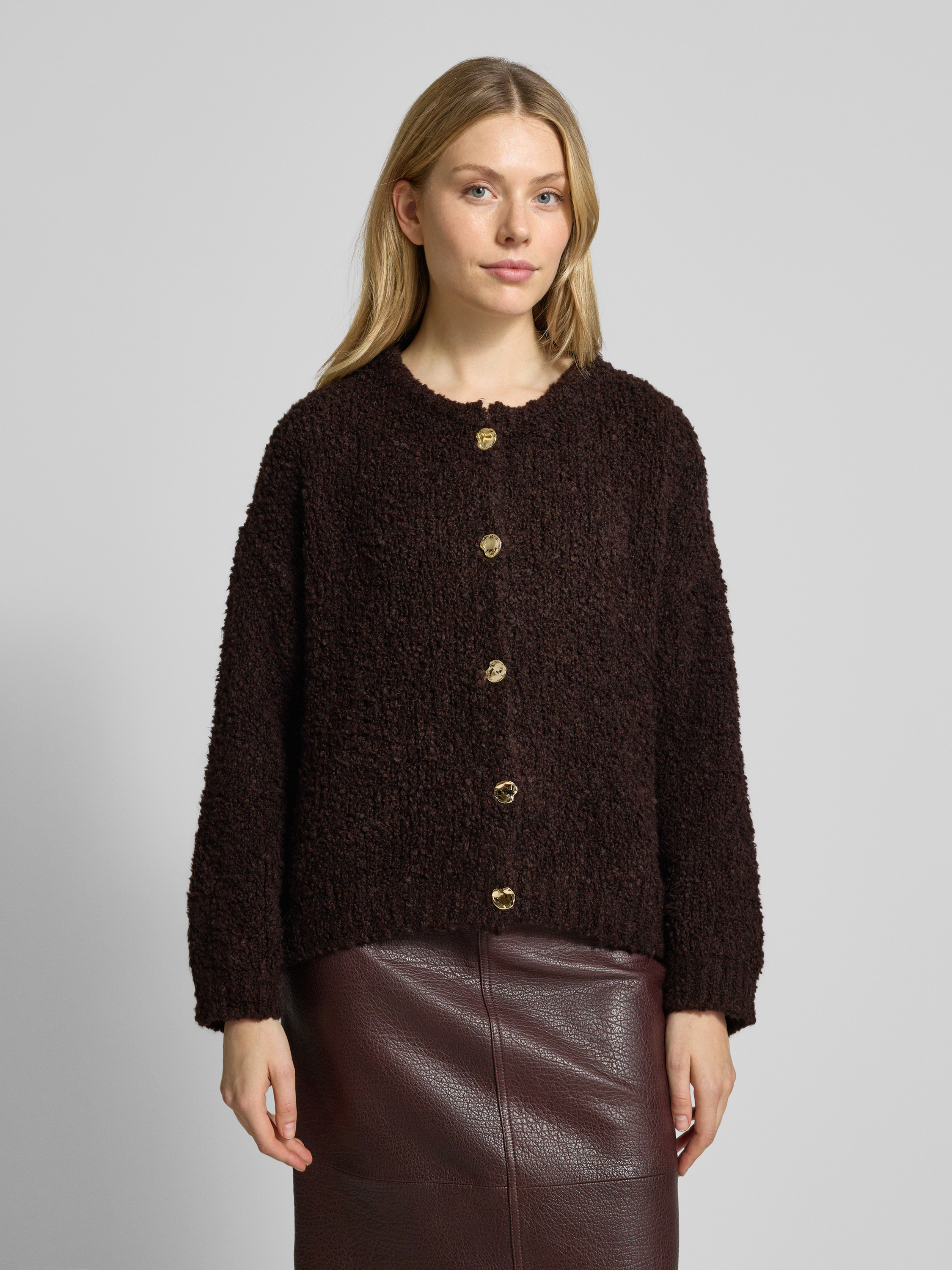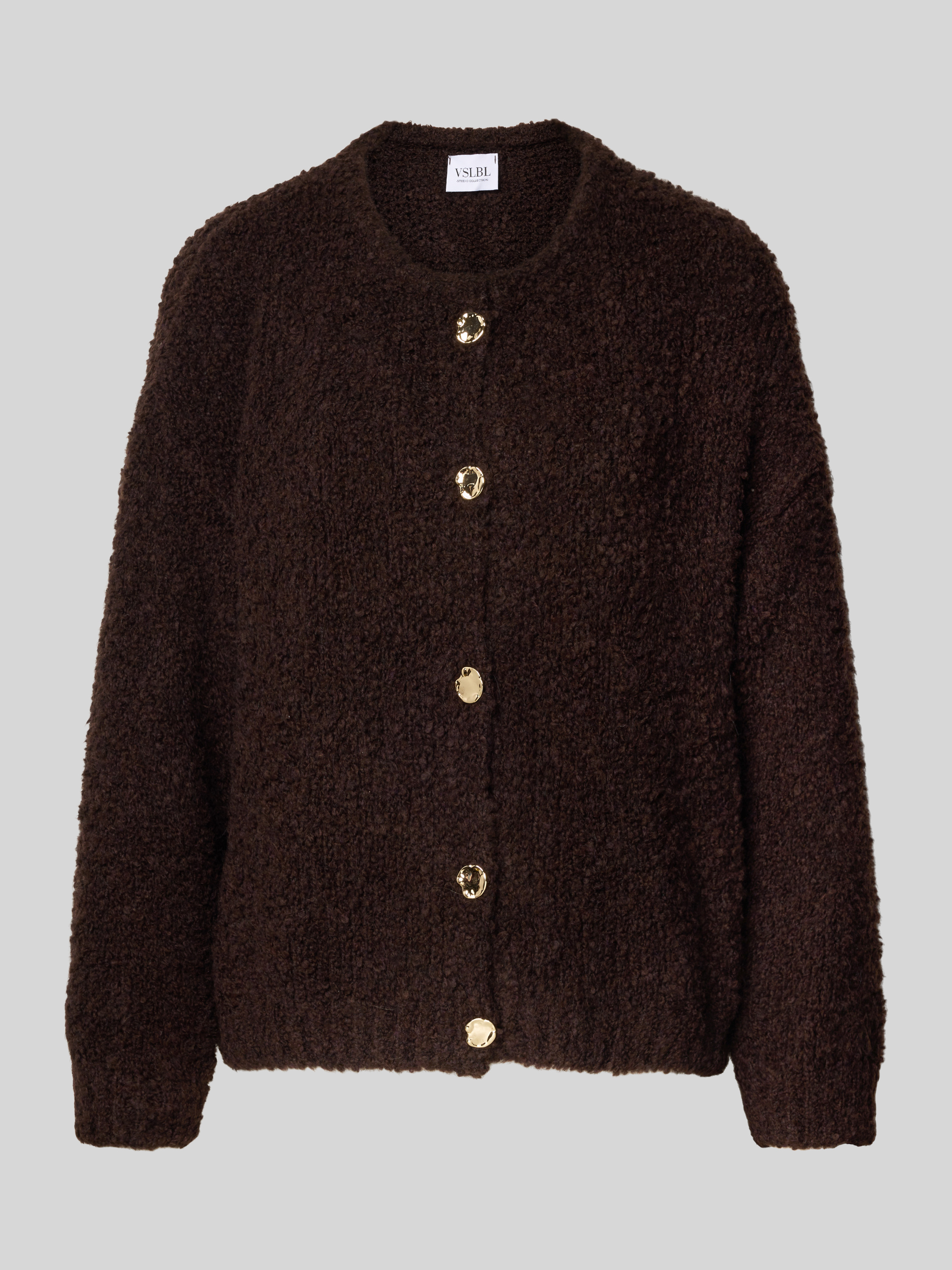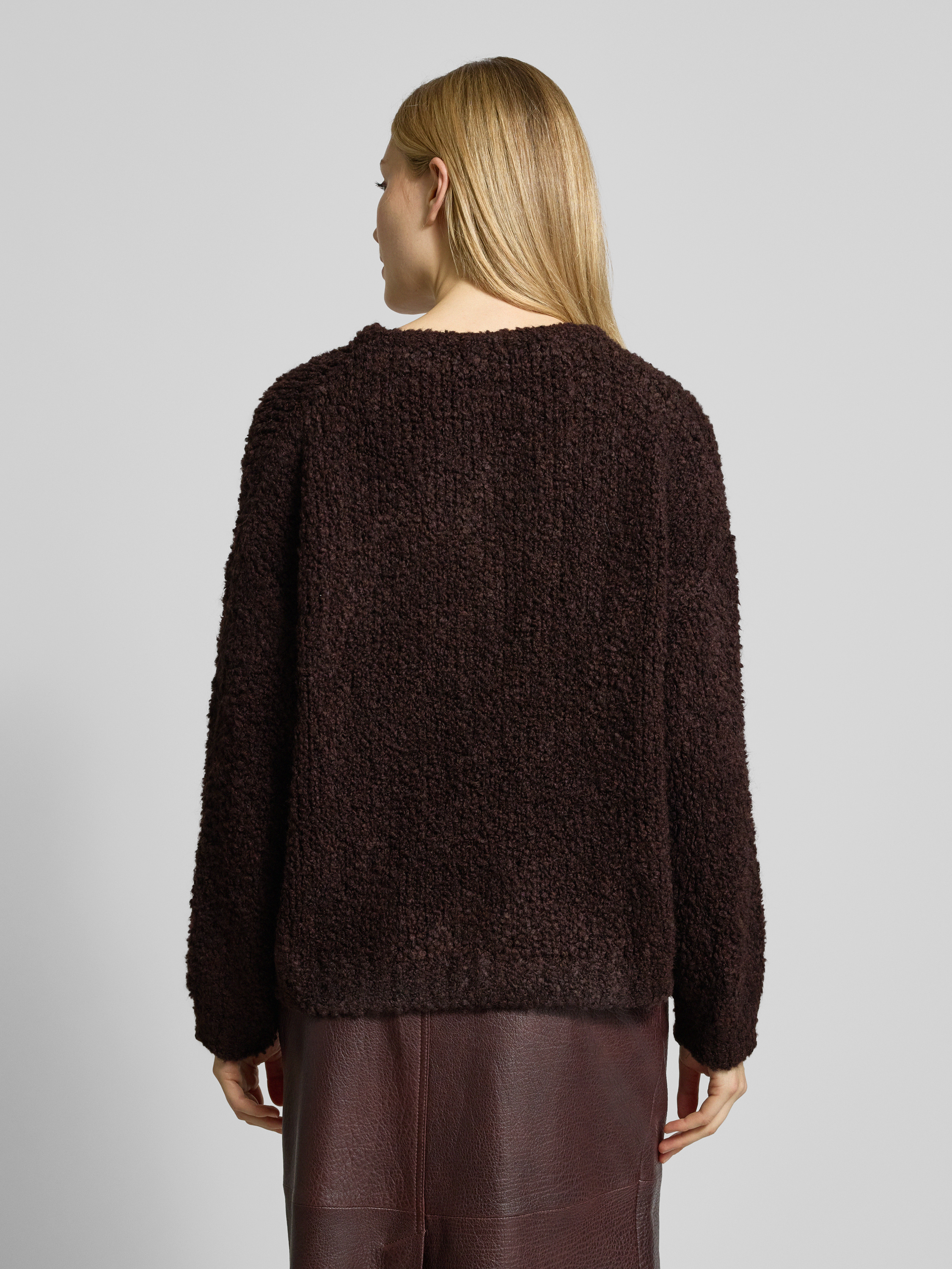 Loose fit gebreid jack met wol in donkerbruin