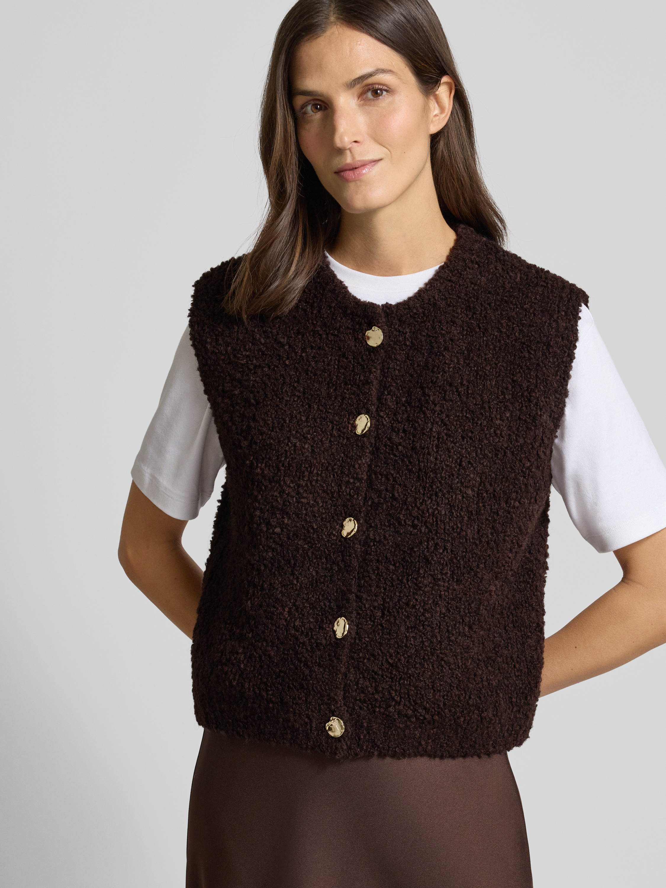 Loose fit mouwloos vest met mohair, model 'VIOLA' in donkerbruin