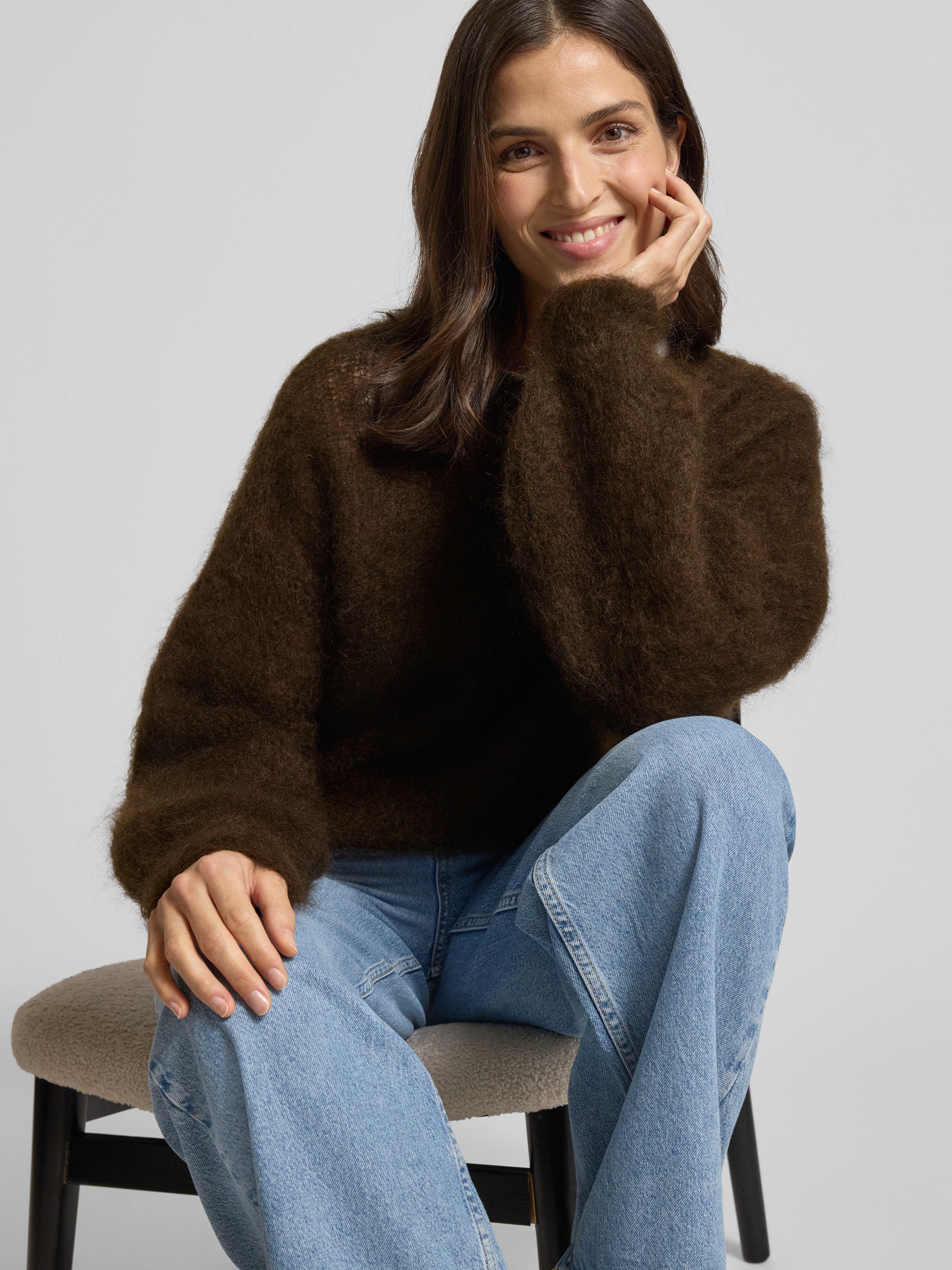 Relaxed fit gebreide pullover van mohairmix, model 'CAMILLE' in donkerbruin