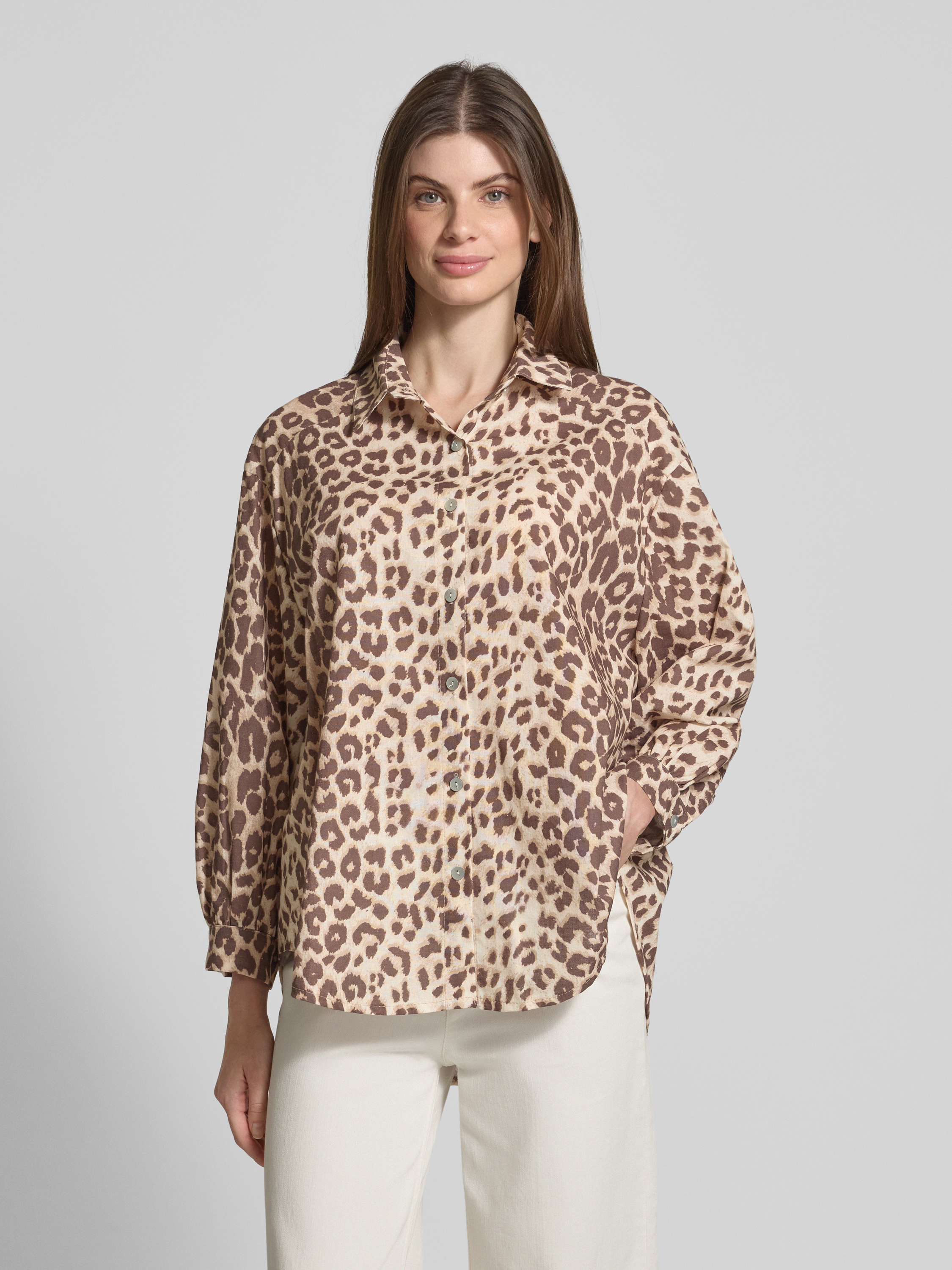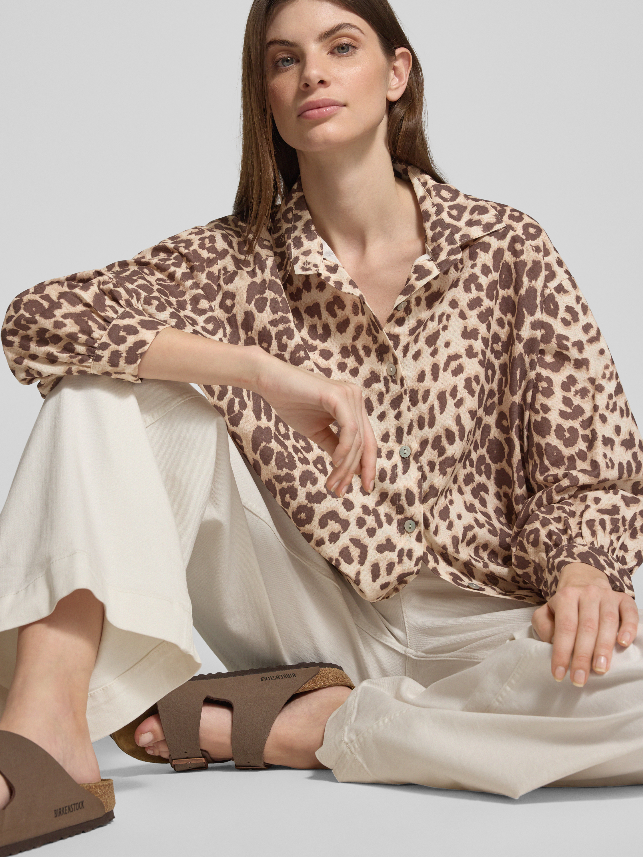 Relaxed fit overhemdblouse van een mix van katoen en linnen, model 'ROMI' in beige