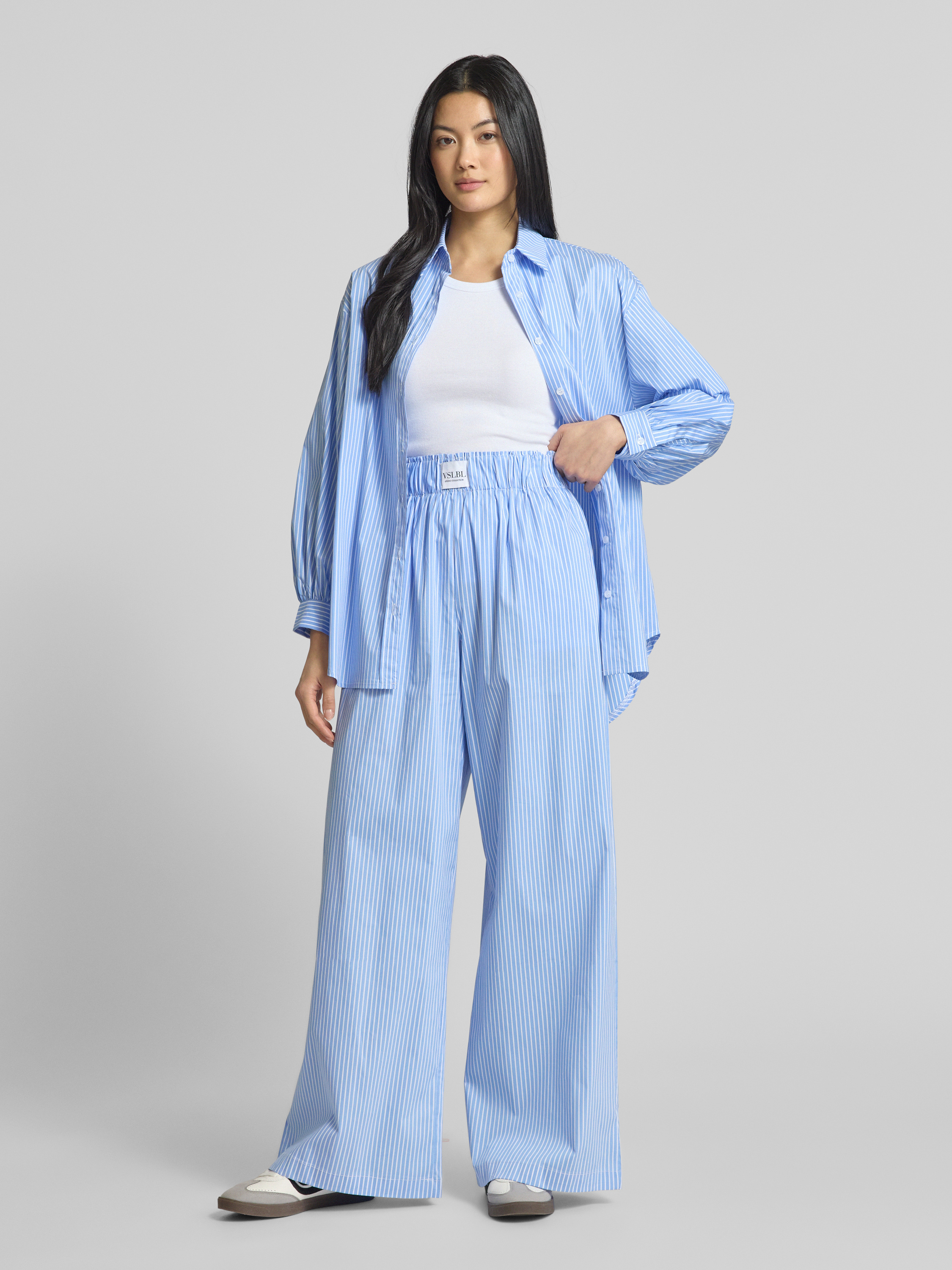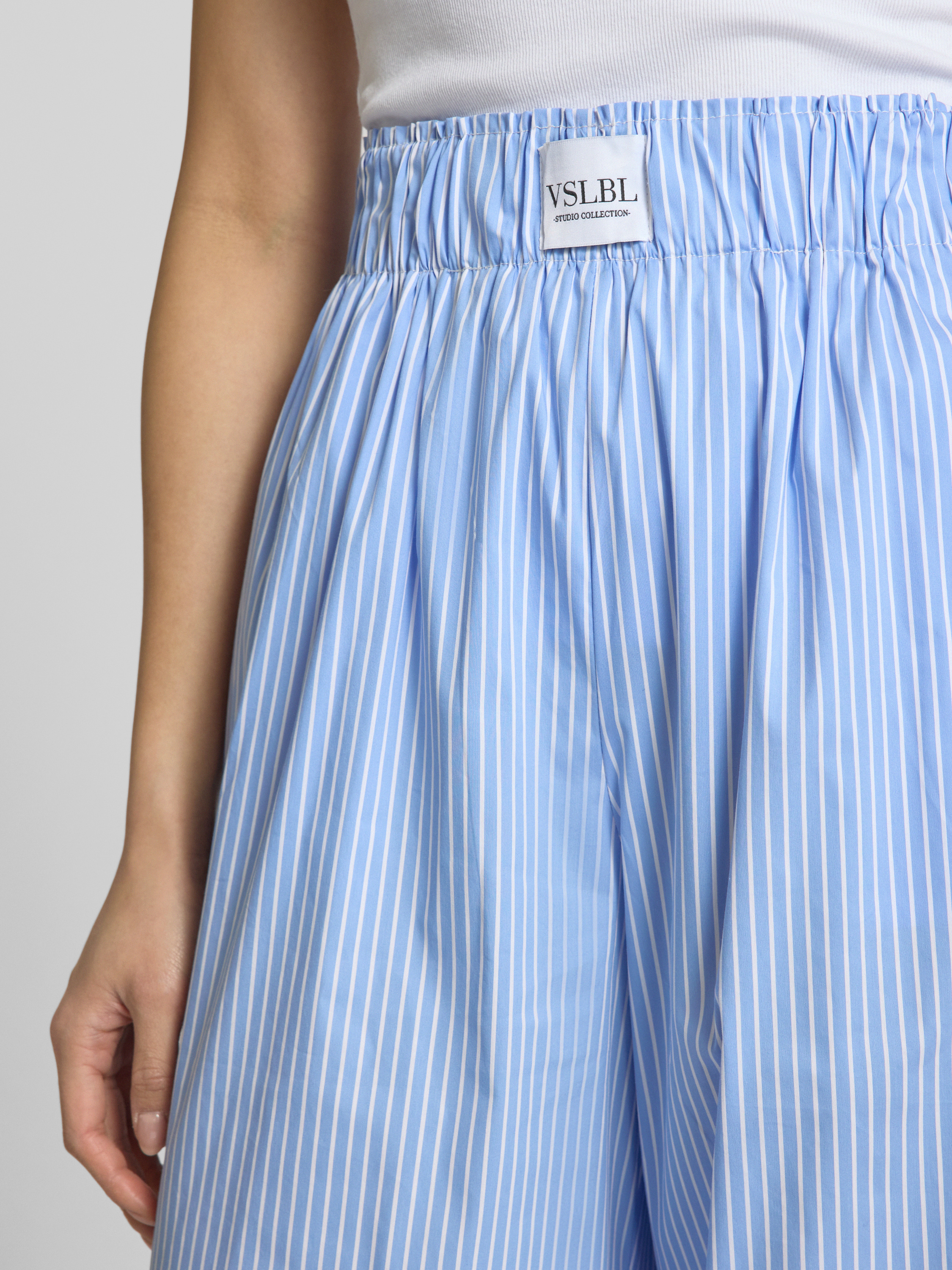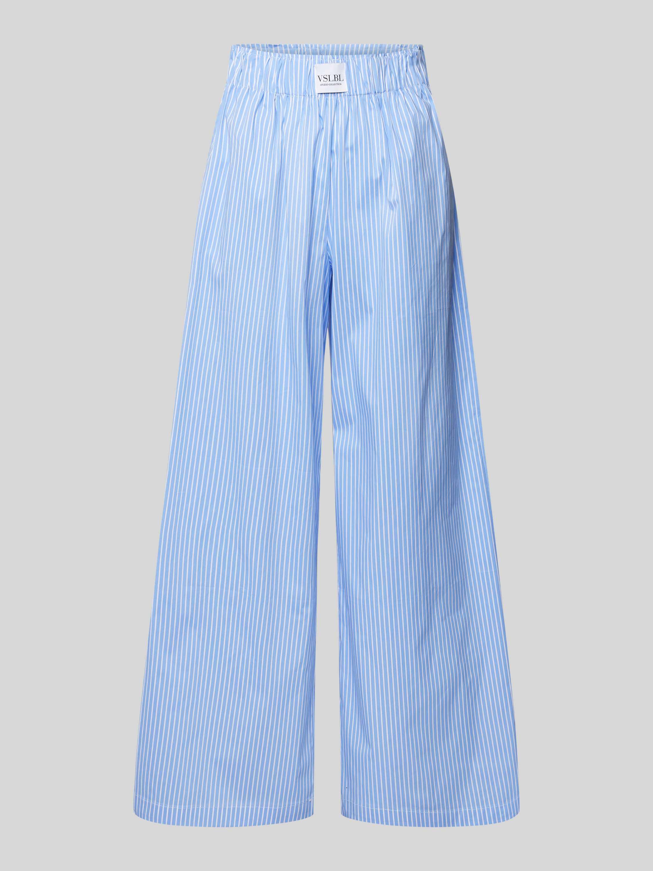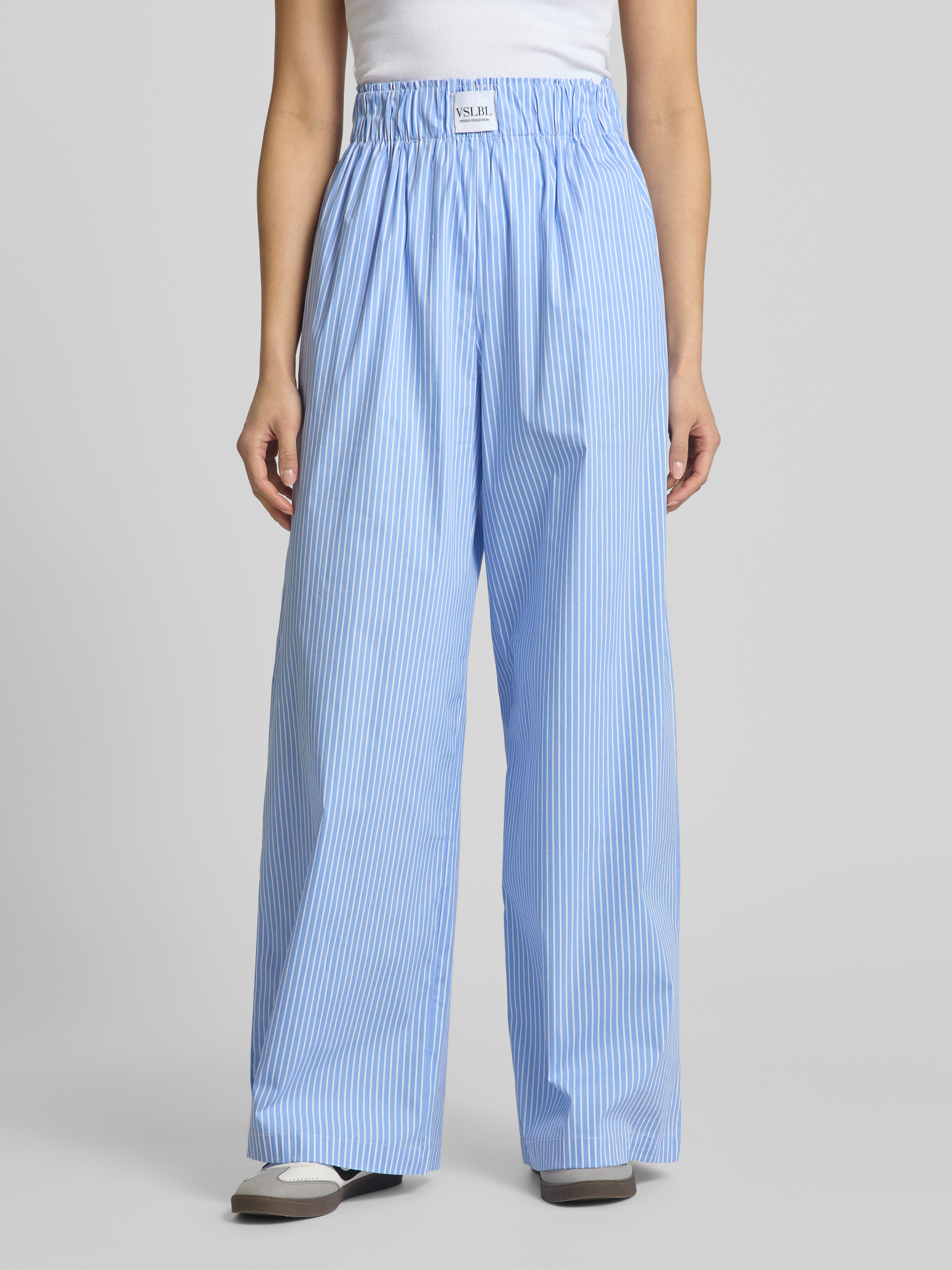 Wide leg stoffen broek met elastische band, model 'LUNA' in lichtblauw